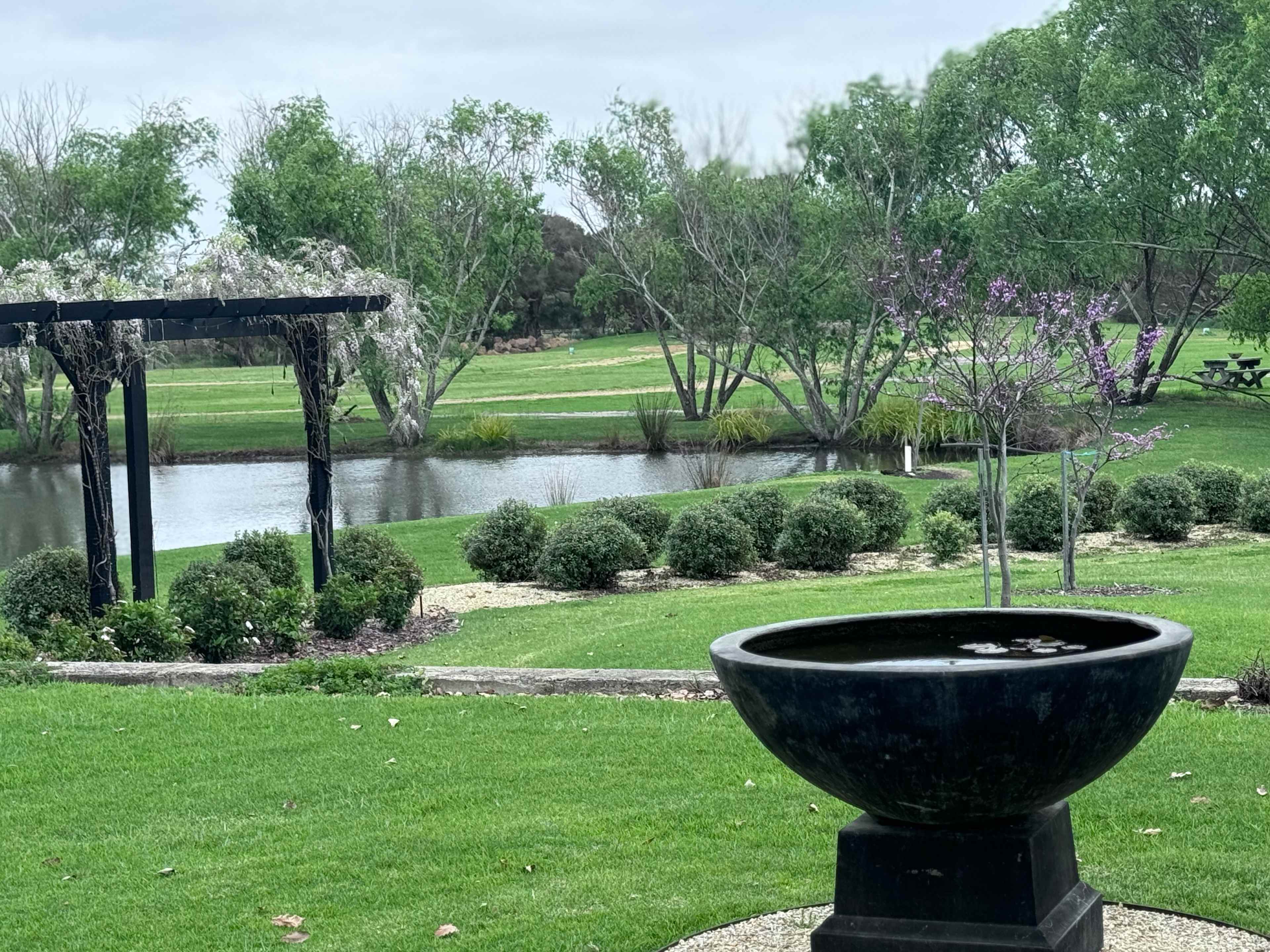 Site #1. This site is located next to our pond under the shade of a large blackbutt tree. The site has grass underfoot and a picnic table for your convenience.