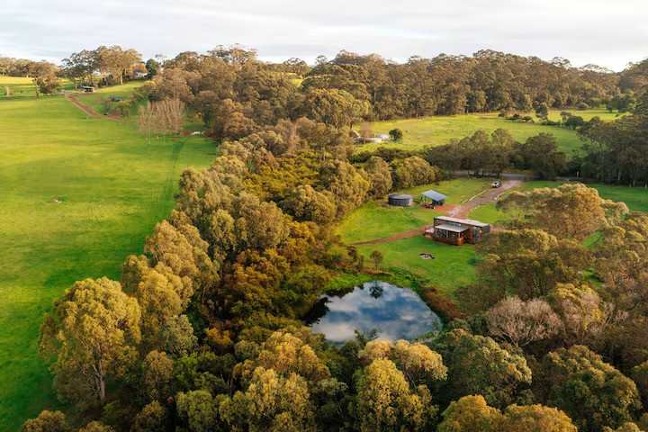 Where the ocean meets the forest. Relax and unwind at this unique and tranquil farm-based getaway. This nature-focused, powered caravan and camping option is set on an idyllic Karri-forested farm in Denmark, Western Australia—just minutes from some of the best beaches and restaurants the region has to offer.