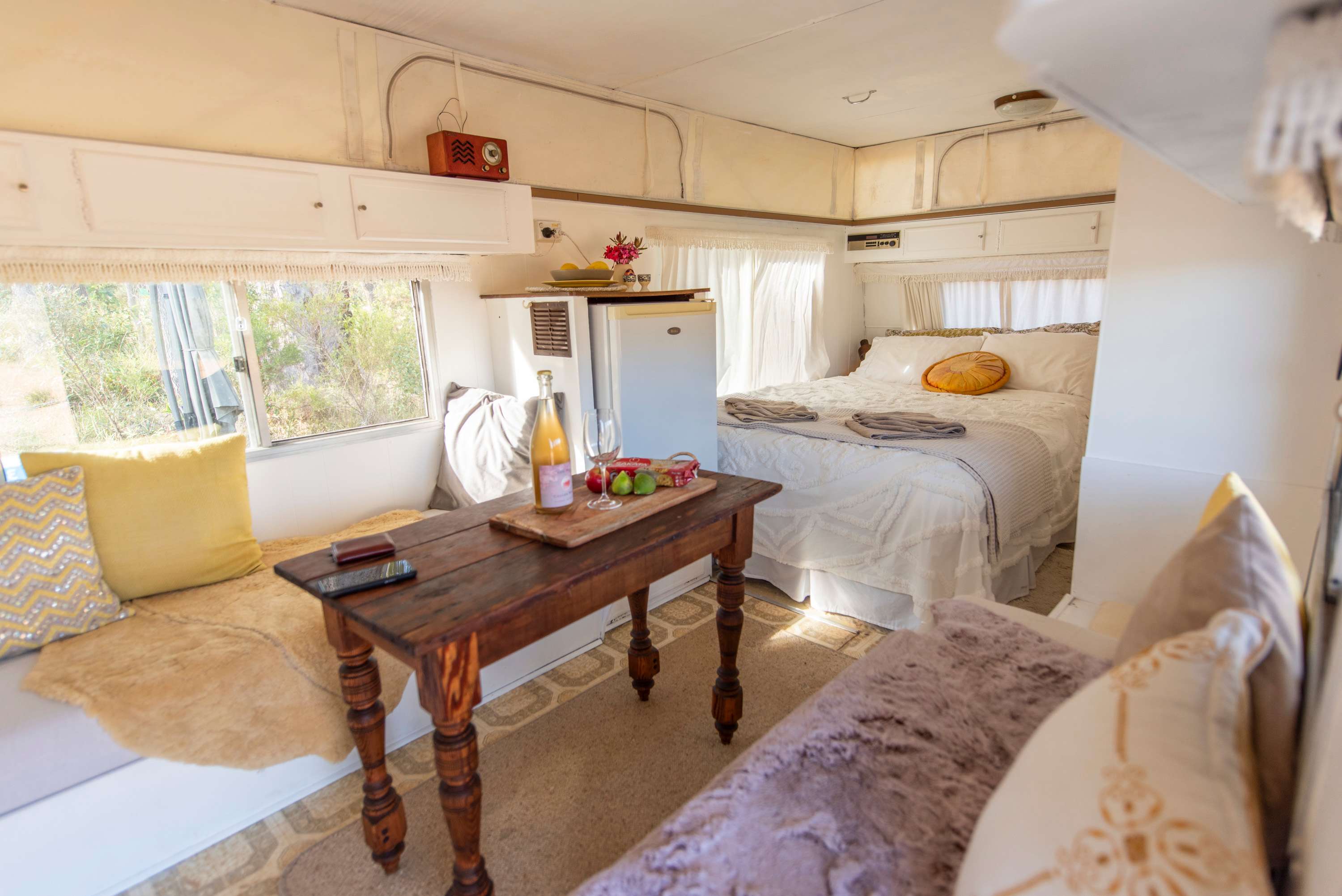 Our first camp site we visited from Perth was the Shantivan, we arrived at the location given and the instructions were easy to follow to get to the site. Upon arrival we were greeted and shown how to work everything, and there was a campfire already built for us to light and chill out by the pool/pond. The bed was really comfortable, and we were able to charge all our electronics. All the cooking utensils were available to us to use with the electric stove, toaster was working fine. We had a great wine tour booked where we got picked up on the corner outside the turning to Wilyabrup Road, and when we got dropped off with a case of wine we bought, the walk back to the Shantivan was not that far (might have been the drink that helped with that! Haha) Overall a pleasant stay, the toilet and shower hut was really well built considering the location. Hot water was running fine, we even had a few frog visitors that are surprisingly good company! Really would not hesitate to come back if we had the chance to return to Australia.