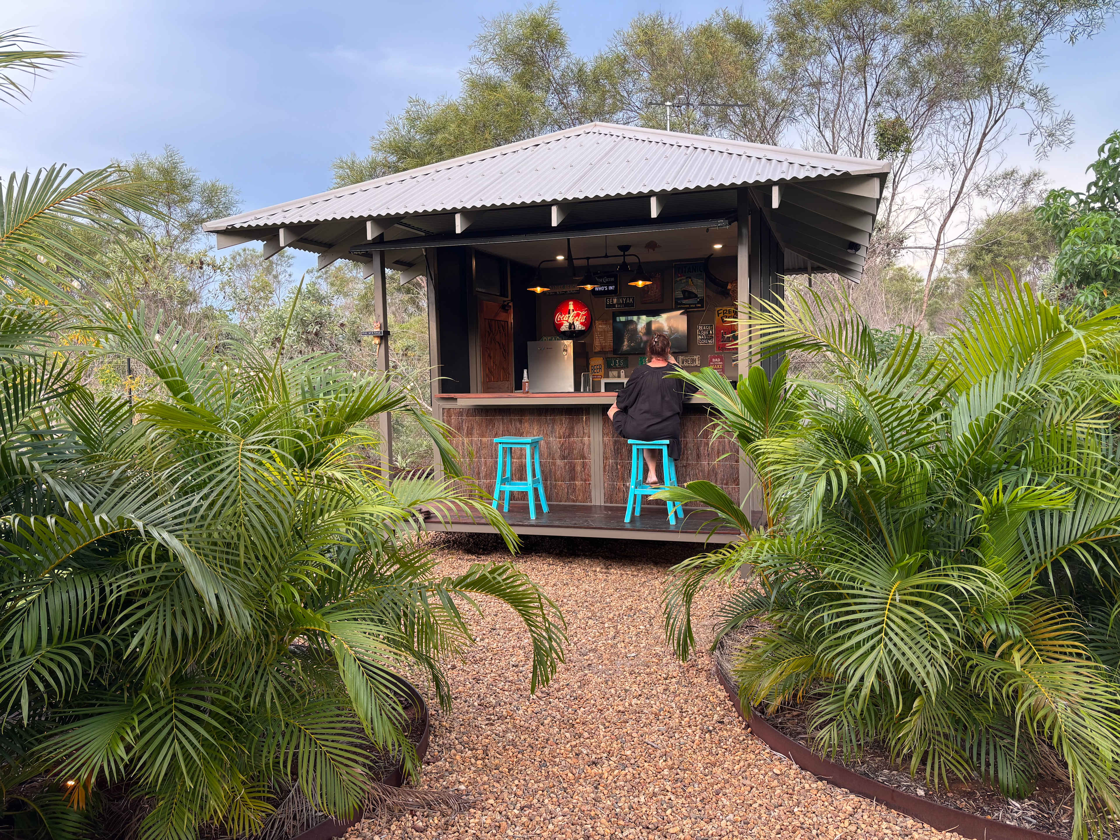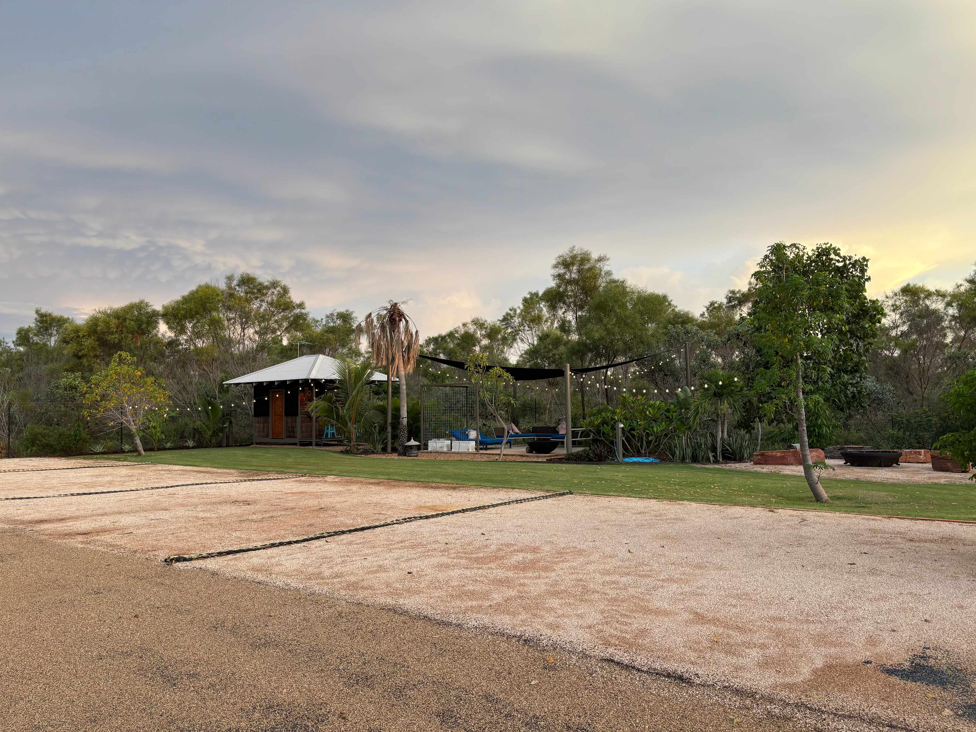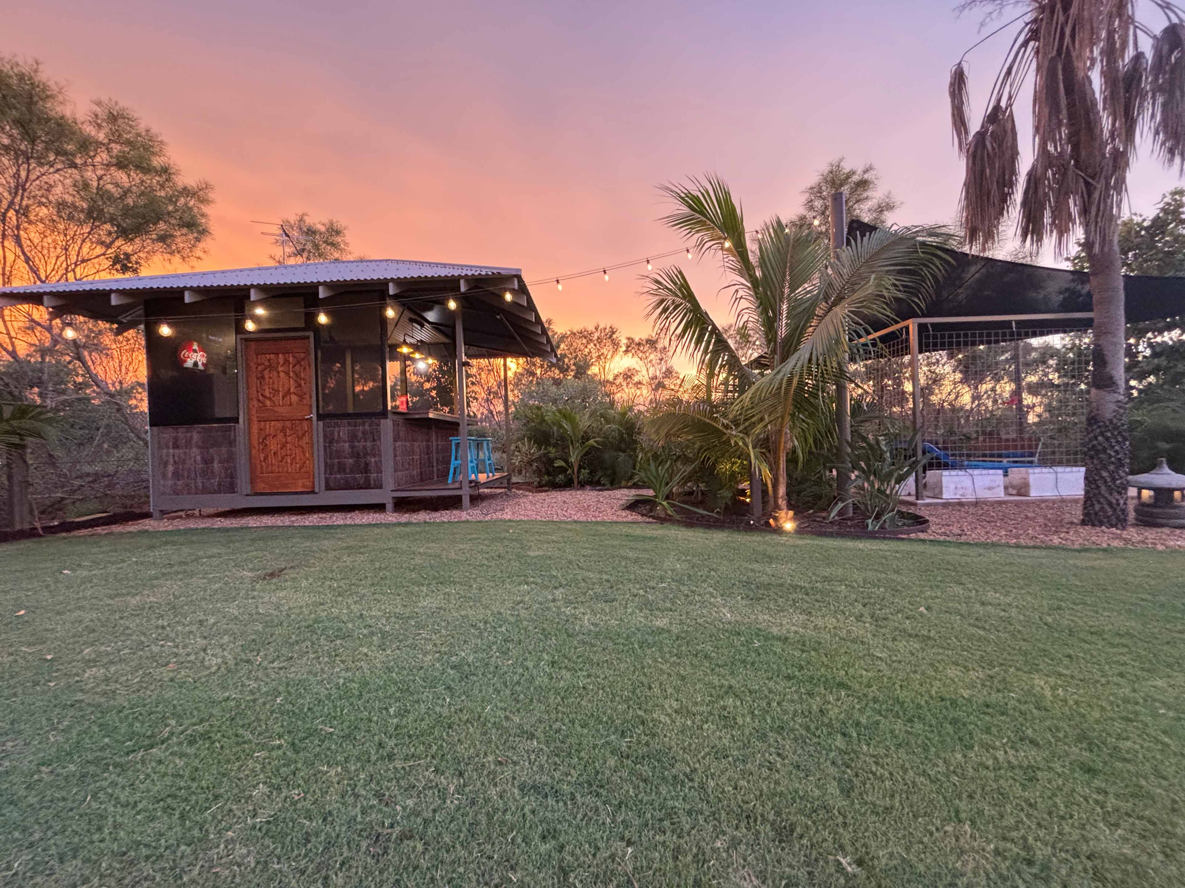 Four fully serviced caravan bays set within landscaped gardens. Full amenities include a camp kitchen, showers, washing machine, fire pit, and seating area. Very secure, fully fenced site close to Broome.