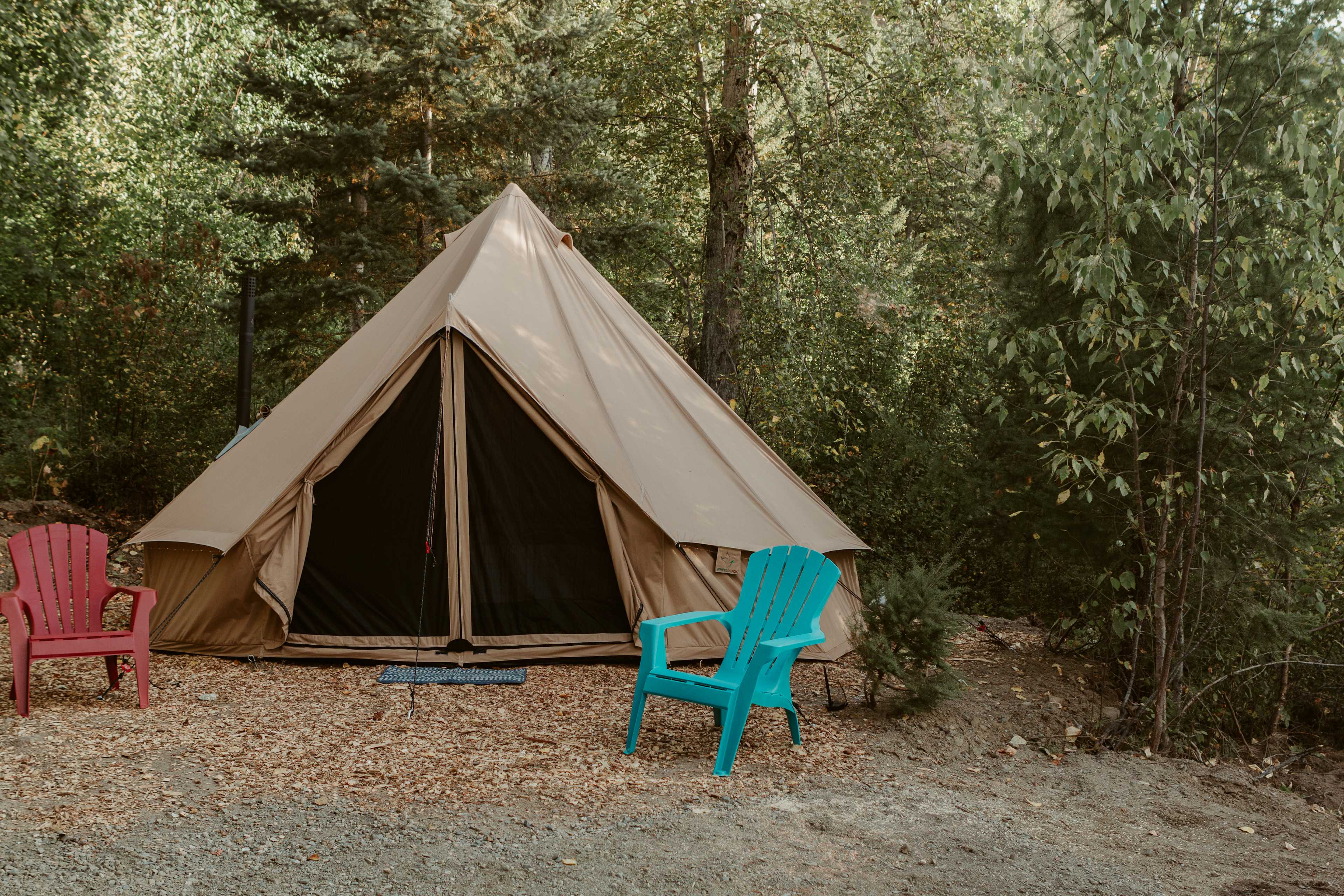 This is our most private campsite, surrounded on all sides, tucked into the forest. It is accessible by vehicle or small camper but can also be set up with a 16’ Glamping tent equipped with 2 single beds (which can make up a queen-sized bed). There is enough room on this site to pitch another tent or have a truck with roof-top tent. If choosing the Glamping Option, there is enough space to add 2 extra mats (on the floor) for extra guests. If choosing the Glamping option, there will be an upcharge for the 16' Bell Tent and Amenities.