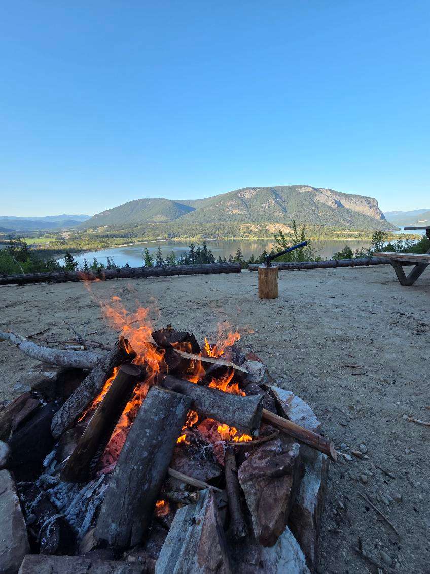 *Fire Ban currently on due to dry conditions* Propane fire pits still allowed 8 Point Acres has one of the most breathtaking views the Shuswap has to offer! Overlooking Tappen and the Salmon Arm of Shuswap Lake in Beautiful British Columbia. Where else can you camp with 180 degree sprawling views of lake, mountains and farmland? 8 Point Acres is just over 8 Acres of tiered and forested land with a flat area that can easily fit up to 4 trailers or RV’s. Making this a pretty incredible group site! Our guests can explore the forest, meadow, trails and even a small little goldfish pond! There are no services on site so campers need to be self contained with bathrooms, water and generators if they need power.The 8 Point Acres Group Site is a 3/4 acre flat space overlooking Shuswap Lake that can fit up to 5 trailers or RV’s. The view is truly unobstructed. The site is very private with the closest neighbor a few hundred meters away. From the site, guests can explore the full 8 acres of property and beyond as the land below connects directly to land owned by the Trans Canada HWY. There are bear and deer in the area so you’ll want to keep an eye on your kids and pets. That being said, the wildlife seems to stay away while there are people on the site. The property is not fenced in so if your dog likes to wander you may want to keep them on a lead or leash. This site is a perfect staging point for all the Shuswap has to offer. There are endless options for hiking, boating, fishing and other activities only minutes away. Salmon Arm is a 10 minute drive in one direction and Blind Bay is a 10 minute drive in the other direction. Both towns have really great options for restaurants and activities.