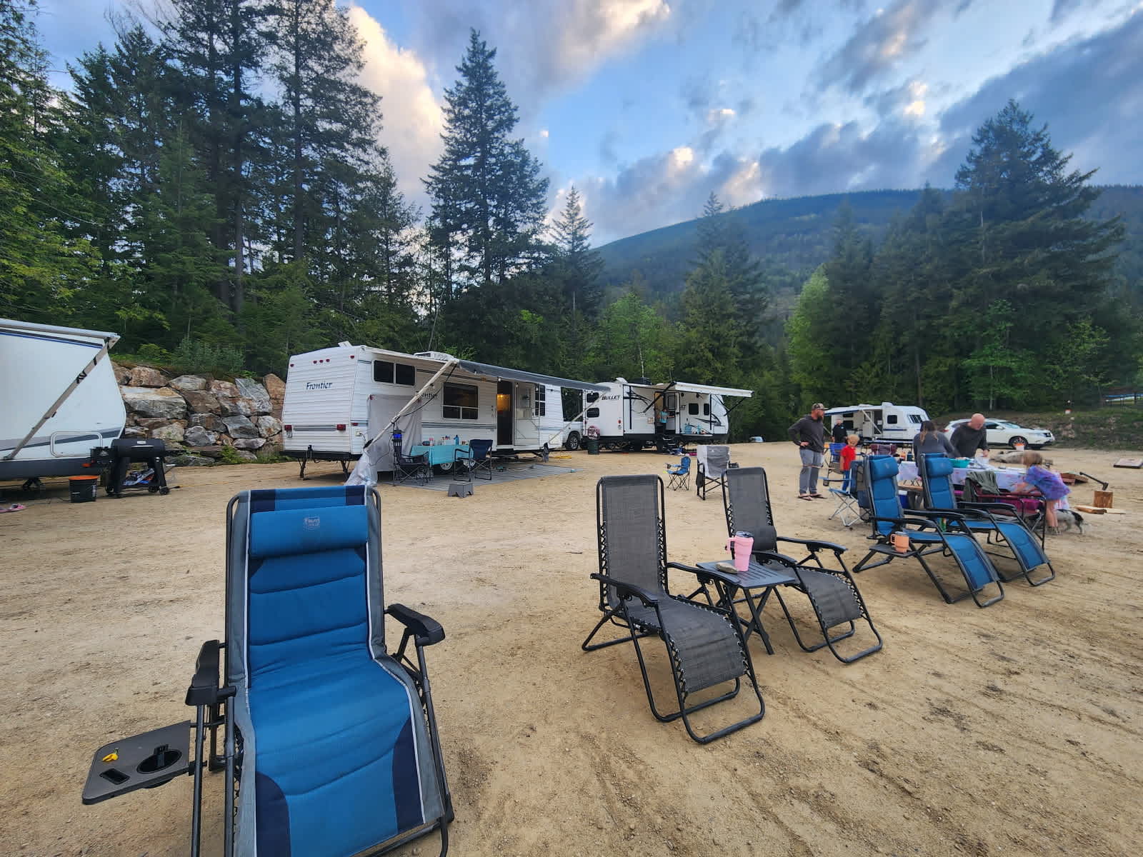 The 8 Point Acres Group Site is a 3/4 acre flat space overlooking Shuswap Lake that can fit up to 5 trailers or RV’s. The view is truly unobstructed. The site is very private with the closest neighbor a few hundred meters away. From the site, guests can explore the full 8 acres of property and beyond as the land below connects directly to land owned by the Trans Canada HWY. There are bear and deer in the area so you’ll want to keep an eye on your kids and pets. That being said, the wildlife seems to stay away while there are people on the site. The property is not fenced in so if your dog likes to wander you may want to keep them on a lead or leash. This site is a perfect staging point for all the Shuswap has to offer. There are endless options for hiking, boating, fishing and other activities only minutes away. Salmon Arm is a 10 minute drive in one direction and Blind Bay is a 10 minute drive in the other direction. Both towns have really great options for restaurants and activities.