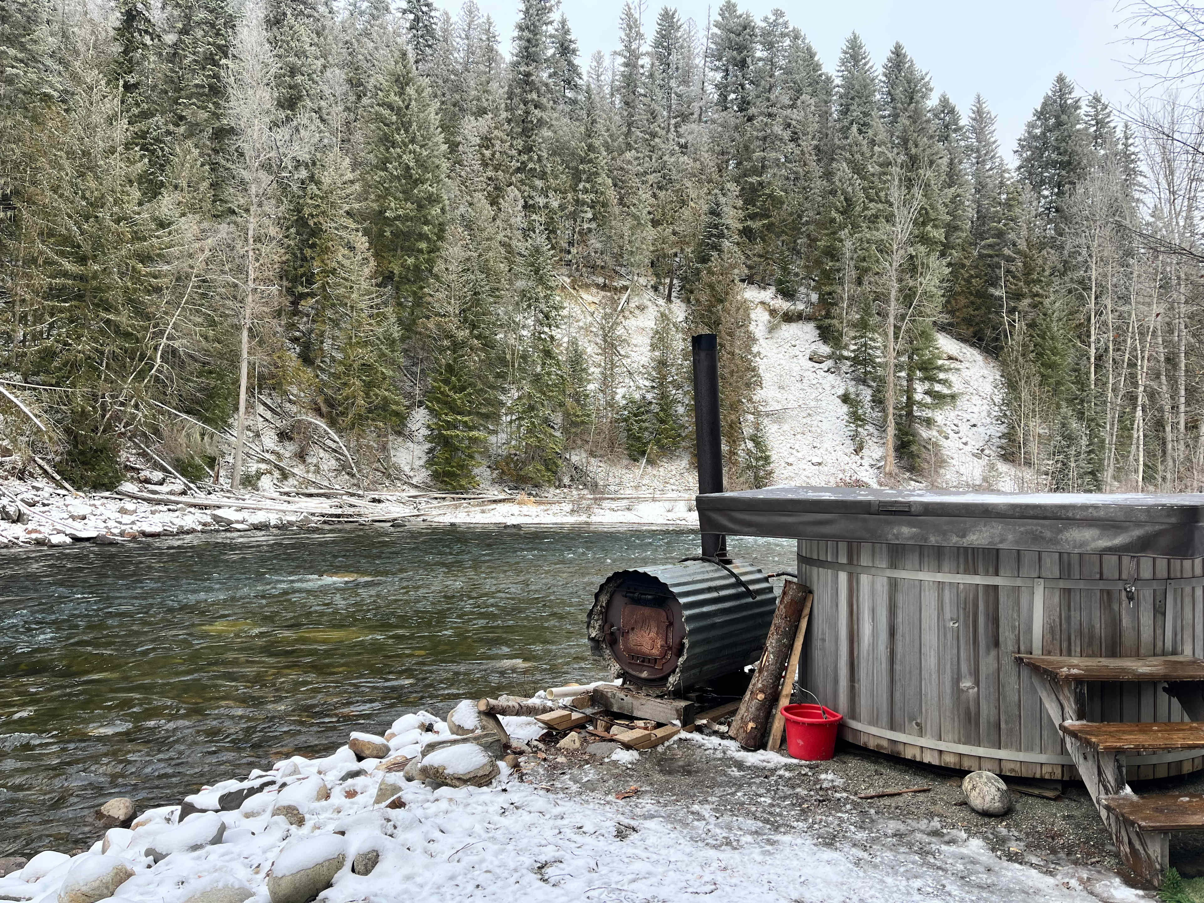 The property is stunning and the guesthouse was larger than expected, which was a lovely surprise. The wood fireplace created the coziest vibe, but the real highlight was the wood-fired hot tub — tucked into the forest beside the rushing river, surrounded by fairy lights and total quiet. Cold dipping in the river and then warming back up in the tub was pure magic!