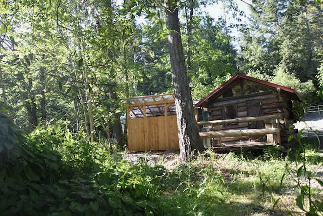 The Log Cabin is located on the same site as the Yurt and the Gypsy wagon serves as your kitchen. and the washroom is right next to the cabin. The cabin has a bunkbed. Top bunk is close to the ceiling and would suit a small adult or child. The bottom bunk pulls out to a double bed for 2. Both bunks have a sturdy foam mattress. Please let us know if you'd like linens and blankets or if you will be using your own sleeping bags. Pillows are provided and towels for the shower. The Yurt can be booked for a reduced rate to accommodate upto 6 people. Please note the Gypsy Wagon Kitchen and Washroom will be shared if the Yurt is occupied by other guests.
