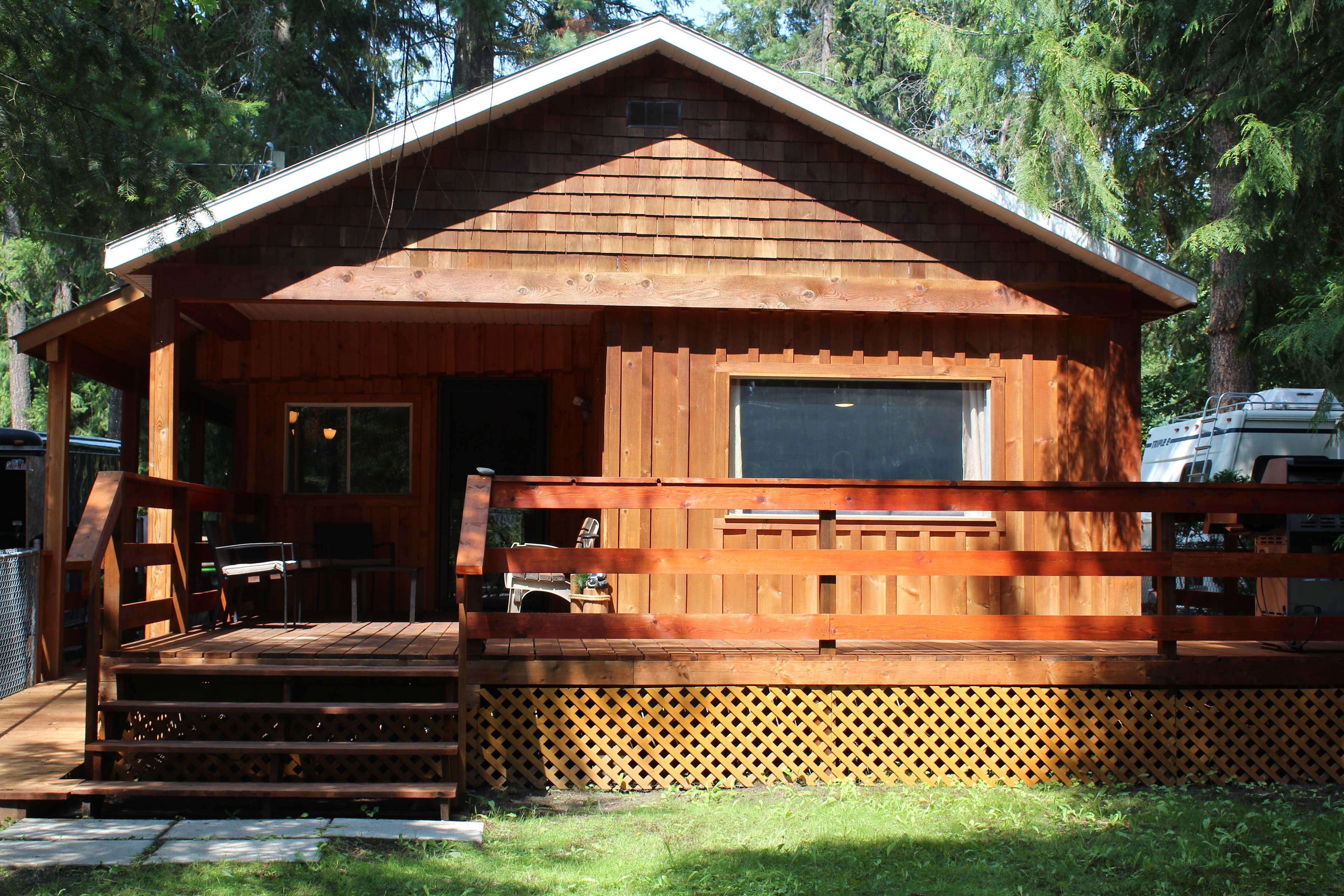 Cabin located right in the heart of Sicamous BC. One street separates you and Shuswap Lake. Walking distance to the beach and all amenities. The cabin has three bedrooms and sleeps 13. Private, fully fenced and a big yard with a pool. Cabin also has air conditioning!! Large sundeck out front and a BBQ grill await..Cabin located right in the heart of Sicamous BC. One street separates you and Shuswap Lake. Walking distance to the beach and all amenities. The cabin has three bedrooms and sleeps 13. Private, fully fenced with mature trees and a big yard with a pool. Backyard also has a firepit and outdoor seating. Cabin also has air conditioning!! Large sundeck on front and a BBQ await..