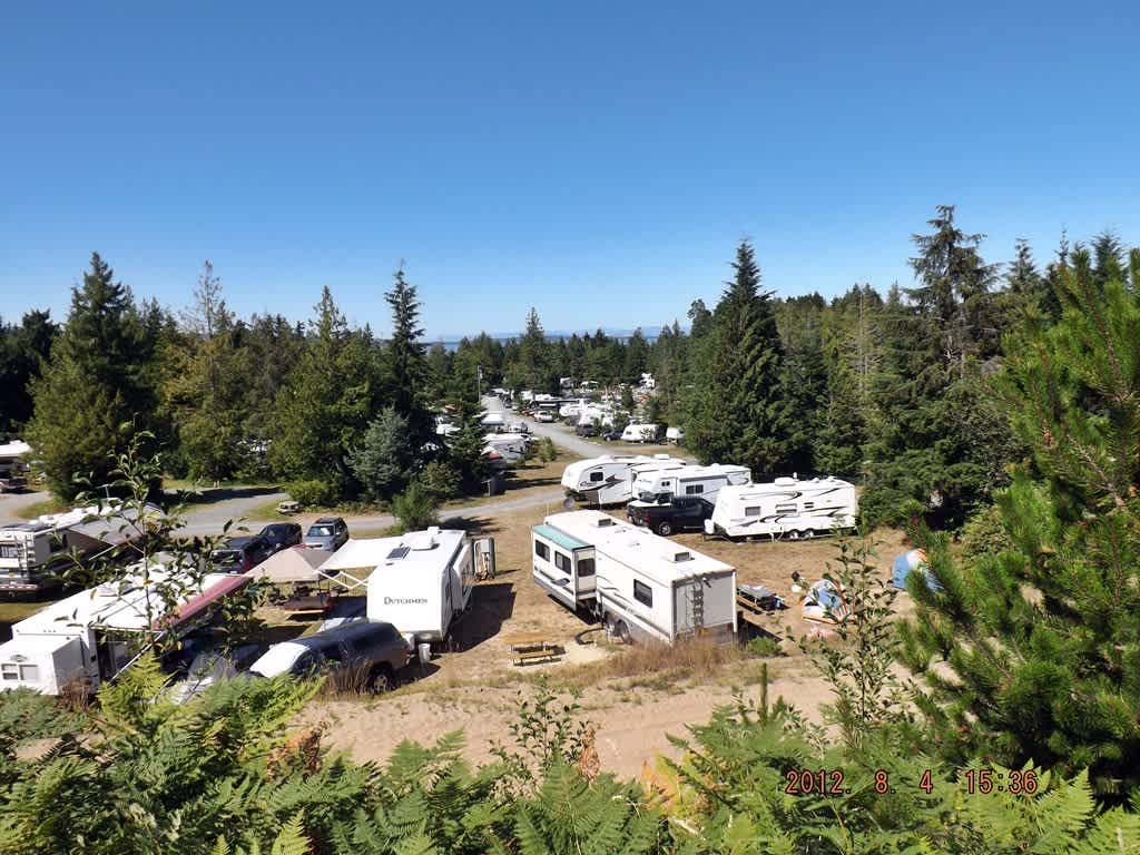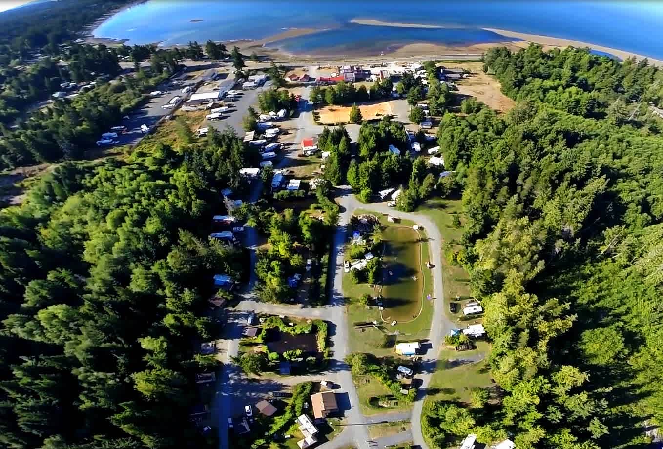 Enjoy camping at Qualicum Bay Resort! Qualicum Bay is part of the area known as Lighthouse Country, on the east coast of Central Vancouver Island (45 minutes north of Nanaimo). We are only minutes from Qualicum Beach where you'll find amazing sandy beaches, picture-postcard views, world-class biking and hiking trails, salt-tinged ocean air, and more. Our RV Park is landscaped with lush grass to accompany all RVs (water, electricity, and sewage hookups available). Choose to be nestled amongst the cedar and fir trees or along the glistening pond. Amenities available for our RVers include a seasonal man-made pond, 220' waterslide, well-equipped playground, zipline, swings, carousel and 18-hole disc golf course. There are washroom, shower and laundry facilities on site. There is also a clubhouse with an entertainment and games room, and an ice cream shop. Pets are welcome. Campfires are allowed within local regulations. We look forward to hosting you!