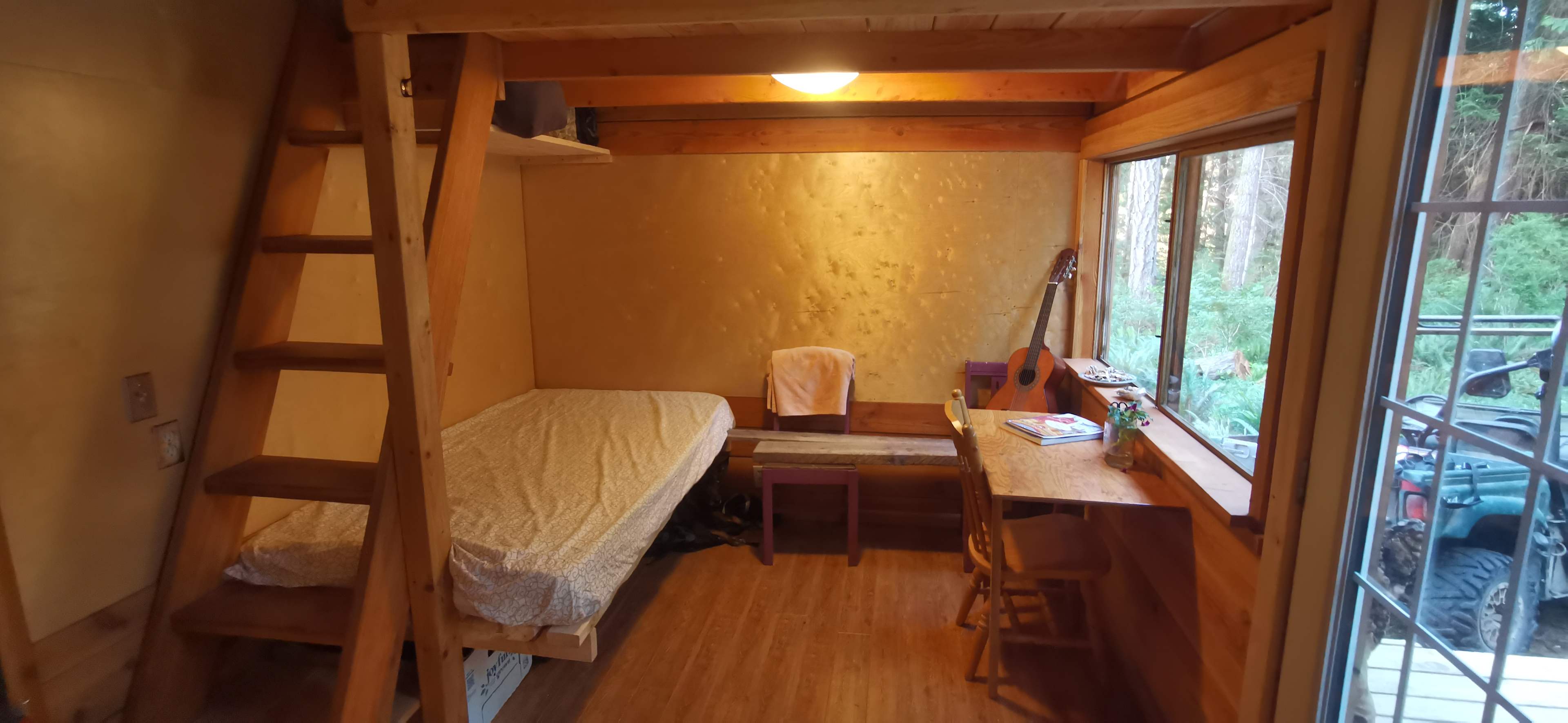 Get into nature and enjoy the peace that comes from being surrounded by a healthy forest! This cabin is located on a remote island and is only accessible by water taxi, private boat, float plane charter, kayak or canoe. The water taxi runs Monday, Wednesday, Friday in the summer months and costs $140 per adult one way. It is not unusual to see whales and other wildlife on the journey to Read Island on this boat trip! Here is the link to Way West Water taxi, which departs from Campbell River. https://waywest.ca/northern-scheduled-runs/ Located a 10 minute walk from the ocean, this private tiny home cabin offers visitors a unique authentic off-grid island experience. Explore the ponds and enjoy special nature trails. Relax in nature and savor wild life observations. Connect to nature during beach visits, hiking trails and swimming at the lake. The tiny home features a queen bed in the loft, twin bed downstairs, outdoor hot shower, full kitchen with bar fridge and propane range. A sauna (if fires permitted) composting toilets and outdoor showers are available. Use the tiny home deck to gather and eat under the sun and stars. Relax in the comfy patio furniture or chill out in a shady hammock. Campfires are allowed in the fire pit when permitted. Add - ons : Organic sourdough bread, firewood. The hosts are willing to help coordinate a unique stay including boat transport (Way West Water Taxi from Campbell River), food shopping, baking, etc at an agreed cost. Please contact us if you would like any add ons well ahead of time. Activities: Explore the Discovery Islands through boating, fishing, or wildlife tours. Paddle sports like kayaking and paddleboarding offer opportunities to deeper connections to nature and wildlife. Located 3 hours paddling from Quadra Island, and 2 hours by water taxi from Campbell River, this property is located on a totally off grid remote island. The land is located in a quiet residential neighborhood of private acreages which are mostly forested. Other things to note : this property is in a remote location with no stores or medical services.