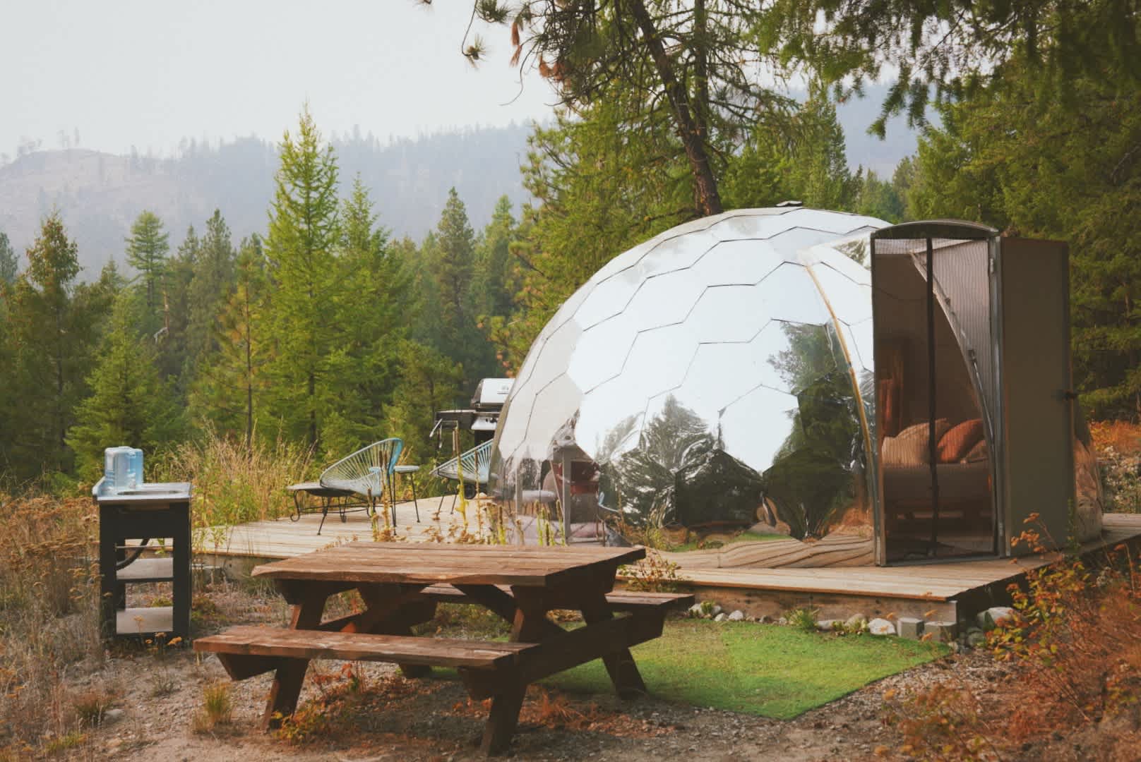 Perched above the resort town of Osoyoos, the Anarchist Mountain Experience is a peaceful stay close to many activites. The hillside property is very beautiful and I was lucky enough to fall asleep to owls calling at each other as the sun set. While marred by forest fire smoke during my stay, I can only imagine the views are incredible. Both the tent site and the dome are equipped with picnic tables, a wash station, a bbq, and a good amount of privacy. There's enough space on the property to wander about and stretch one's legs, and tonnes to do in nearby Osoyoos. Kevin is a great host and even upgraded me to the Dome site during my stay -- which turned out to be fantastic as an unexpected downpour struck in the morning. The off-grid dome itself is quite spacious, features a comfortable bed, a desk, a woodstove, and a number of comforts supplied. I would definitely recommend staying here if heading to Osoyoos.