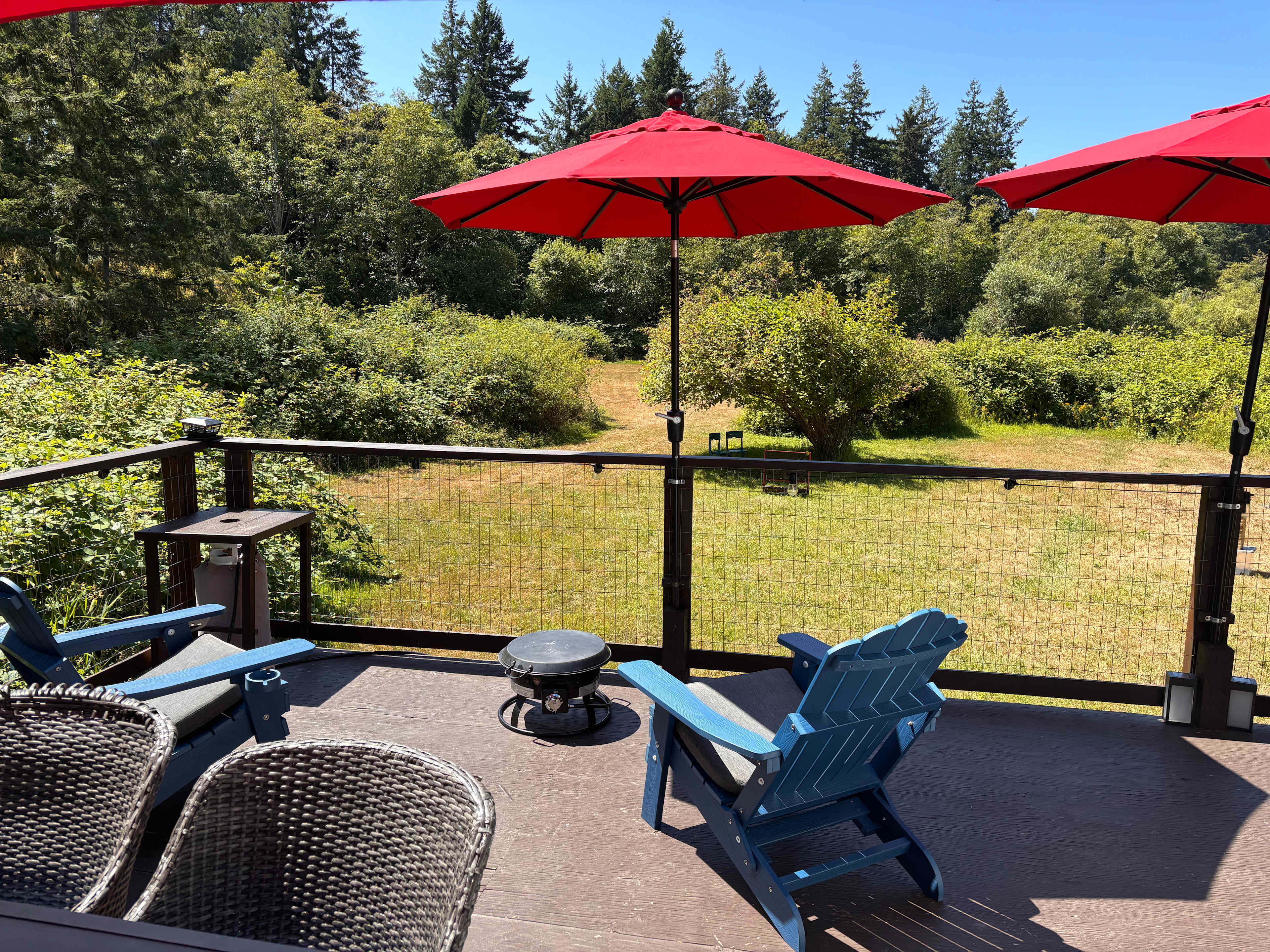This Glamping Safari Tent site is the one and only on our property. With a 900 sq’ of fenced wrap-around deck, you have plenty of room! Your space is private, and fully self-contained with 4 propane appliances, outdoor covered kitchen and full furnishings inside and out. The Glamping Beachcomber has a private path taking you onto the Oyster River Nature Trail along the