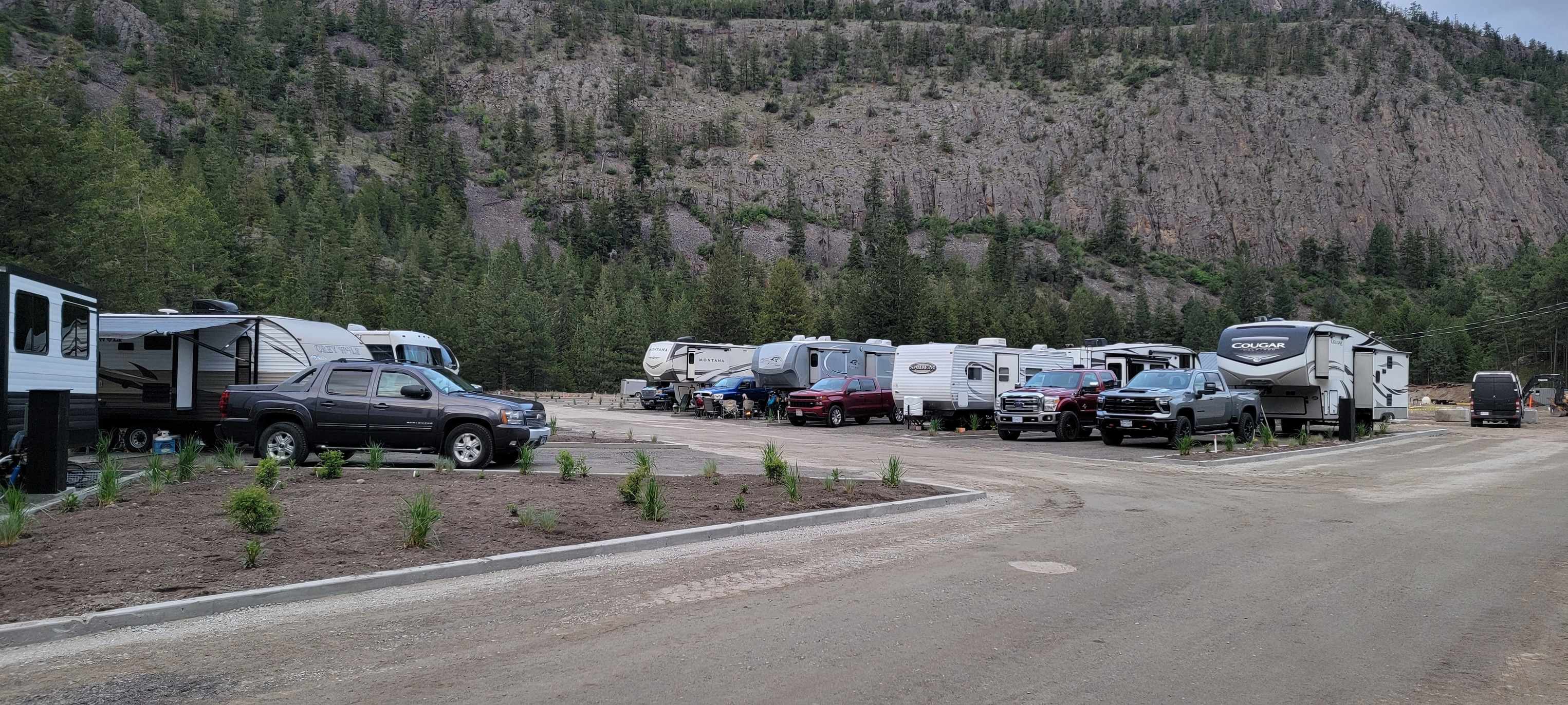 Ongoing Upgrade on all sites and Park Amenities. No Power BEWARE of ACTIVE Wildlife (Bears, Cougars, Coyotes, Deer, etc) NO TENTING ALLOWED Back In Only RV Pad dimensions 16' x 43' Over All dimensions 30' x 43' Sewer Water One Parking Pad 10' x 20' (one vehicle) Picnic Table Parking Golf Course Food & Beverage (Mugsy's Bistro - Licensed) Hiking Dog Walking (on leash)
