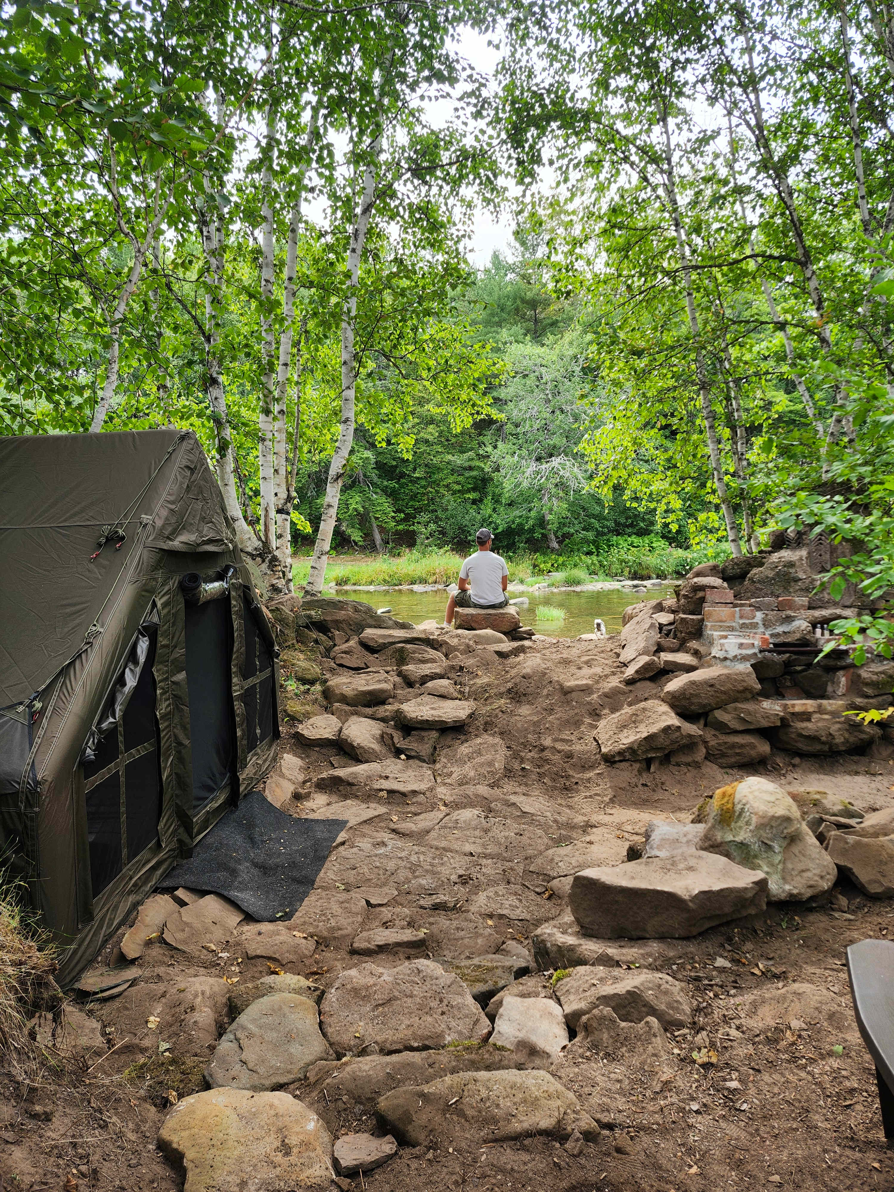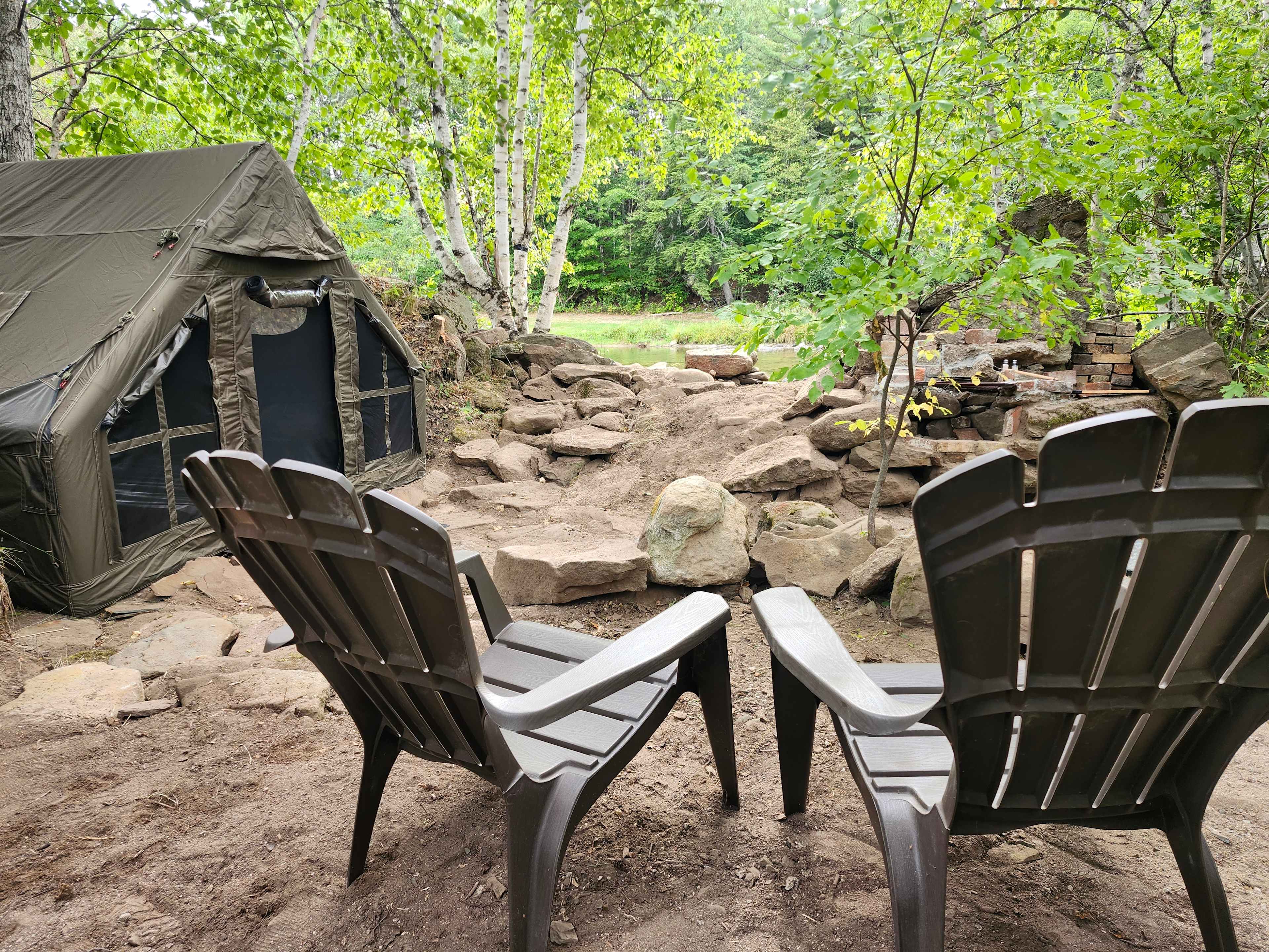 Nestled along the banks of the Pollett River lies a private camping escape. Set on the grounds of a historic 1800s sawmill site, this one-of-a-kind location blends heritage charm with peaceful wilderness. The property is a heritage sawmill site developed in the mid 1800's in response to the booming New Brunswick logging industry. The barn that housed the workhorses that worked the mill offers a beautiful backdrop at the entrance of the property. Our camp site offers total privacy from the outside world. The site is perched along the river bank, allowing instant access to incredible trout fishing, swimming, canoeing, tubing, and ATVing. Whether you're casting a line at sunrise or floating downstream in the afternoon sun, this site offers everything you need to reconnect with nature in total tranquility. The campsite is the original stone foundation from the sawdust burner that handled all the cuttings from the sawmill. Come stay with us and explore all that southern New Brunswick has to offer!