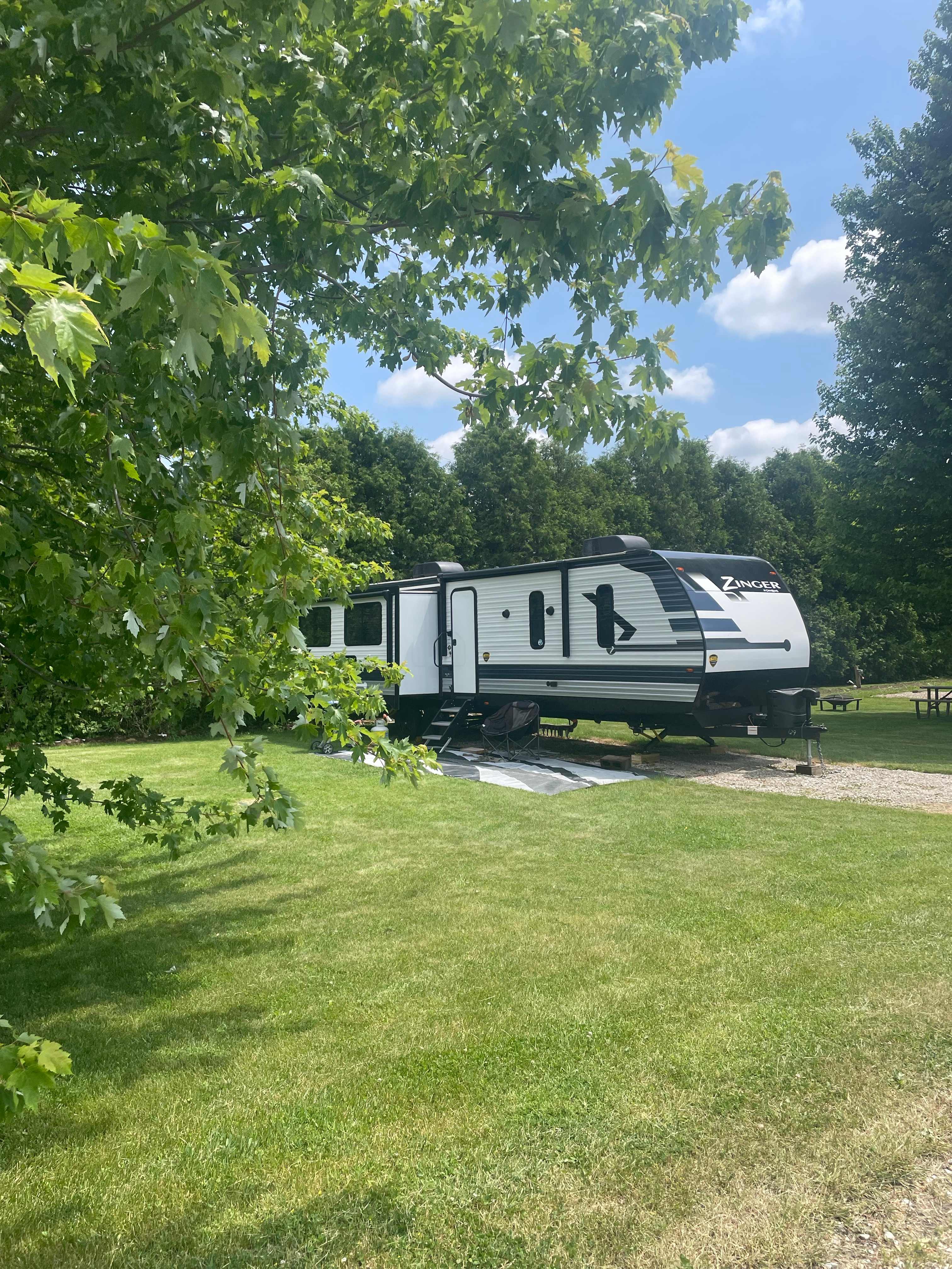 Each site is equipped with 50amp or 30amp service, along with water and septic connection. Free reliable wifi is also available at all sites. Enjoy the shade from mature silver maple,s and a line of Cedar trees to improve privacy, watch beautiful sunset while stoking your private fire for a nite of stargazing and relaxation.