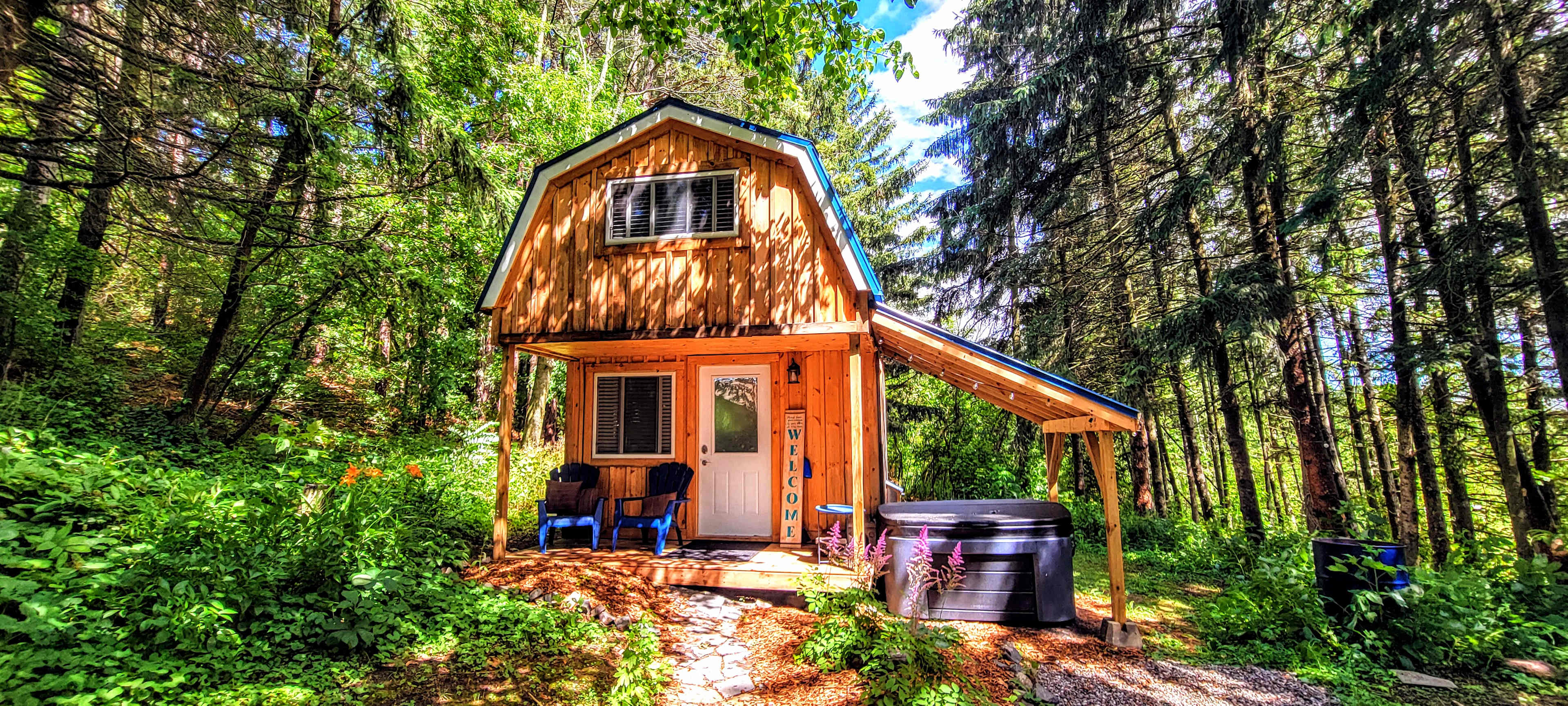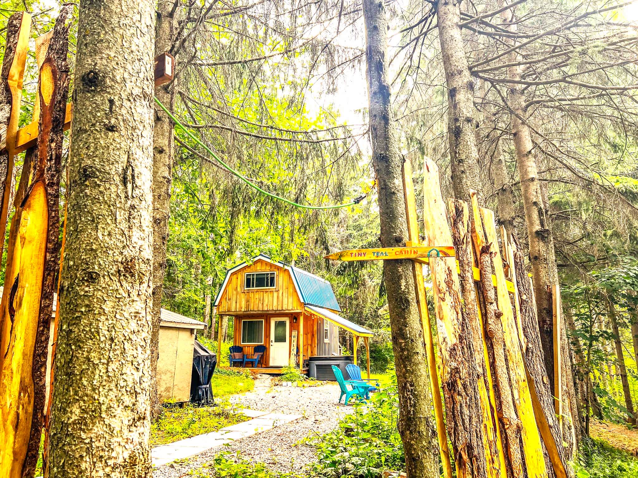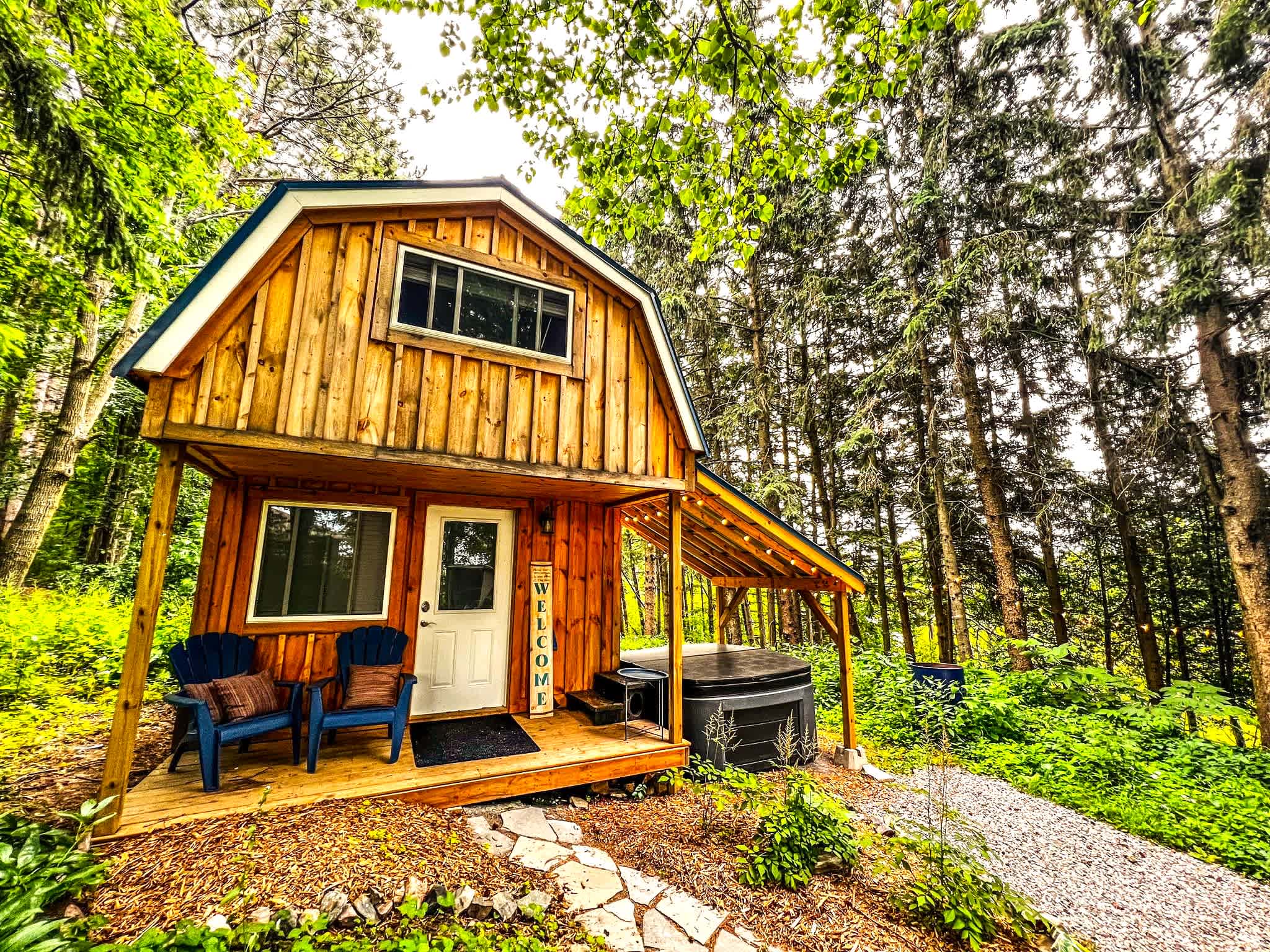 Enjoy the best of both country and city. The property boasts amazing views of the Rideau Canal and glorious sunsets. Enjoy the outdoor fire pit, private Hot Tub and explore 10 acres of wooded, Canadian Shield bliss. Tiny home/guest cabin nestled in the trees but still conveniently located near parking and the main Road to town. Quick 15 minute drive to tourist attractions & historical downtown Kingston. Also near multiple lakes, hiking trails and other outdoor pursuits. Inside our Tiny Cabin is a main floor with living area, fold away dining table, full bathroom with toilet, sink and shower. The kitchenette has a sink, bar fridge with small freezer, stove top convection over/toaster, drip coffee maker, single burner element and microwave. It is fully stocked with cookware, utensils, dishes, coffee grounds, some spices and cooking oil. There is also an outdoor BBQ. The upstairs loft has Queen size bed, smart TV and clothing storage. All linens (sheets, towels etc. are included). The cabin is heated and we provide fans in the Summer months. We love animals but unfortunately our tiny cabin is not suitable for pets. Our cabin is strictly non smoking. We are passionate about tiny home living and leaving the smallest environmental footprint possible. The Tiny Teal Cabin was thoughtfully built to utilize minimal space and be energy efficient, all the while providing a serene sanctuary and escape amongst the trees. We encourage our guests to discover what it would be like to live with 'less' while discovering more in their surroundings.