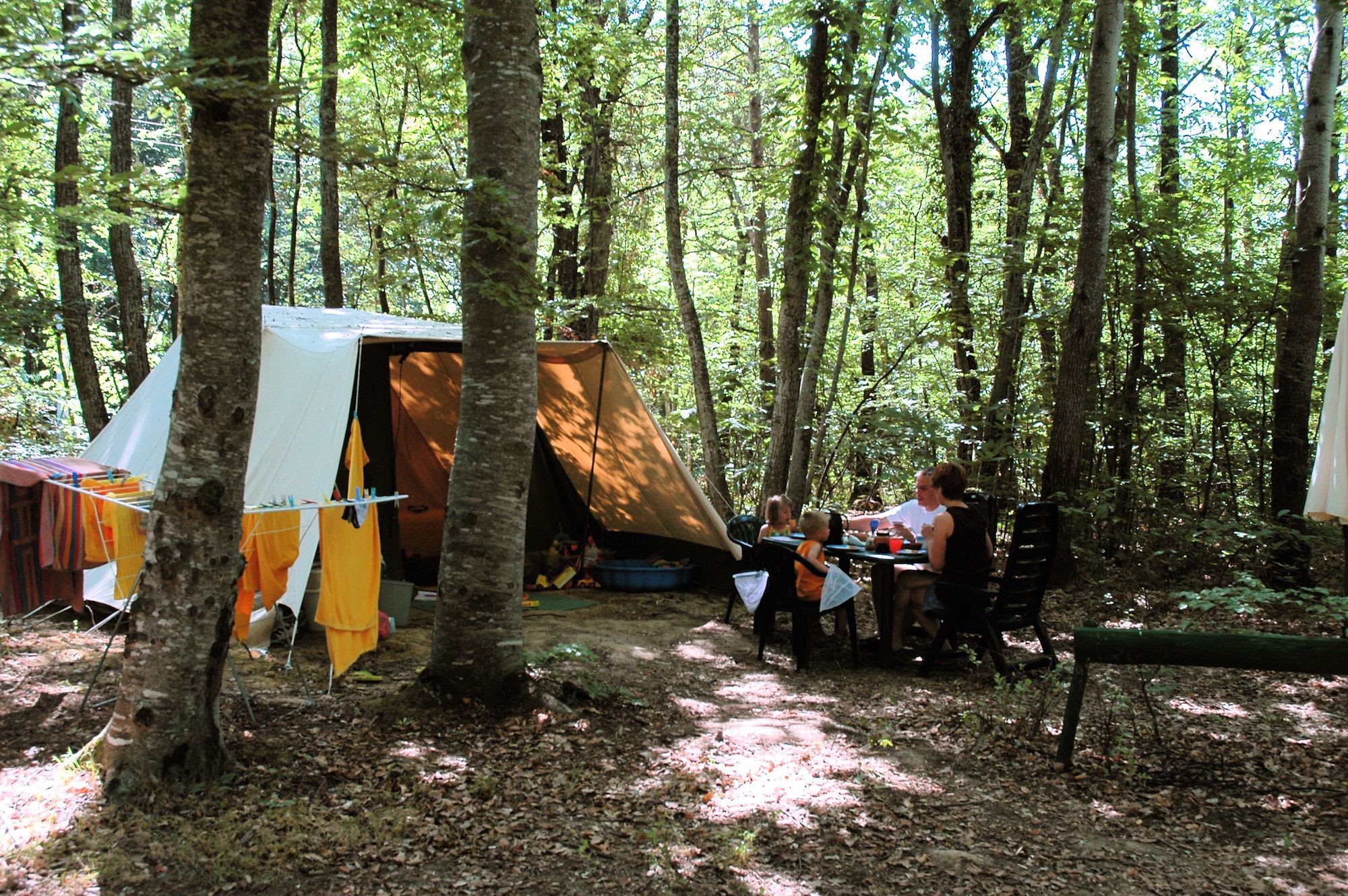 Once acclimatised, you can explore the park by bike or on foot; or simply take off to make the most of the campsite’s wonderfully home-spun facilities. The open-fronted bar-café is built from wood and has a deliberately rustic feel, encircled by the same style of stick fence that fronts the safari tents. It offers ample refreshments and has a fresh bread and pastry delivery service if you order the night before. Then there’s the swimming and paddling pool for lazing in the sun, a volleyball court and a small playground. If you find time to leave the site, the local villages, hidden in the hills, are certainly a joy to explore. But really you could stay in the woods here for days!