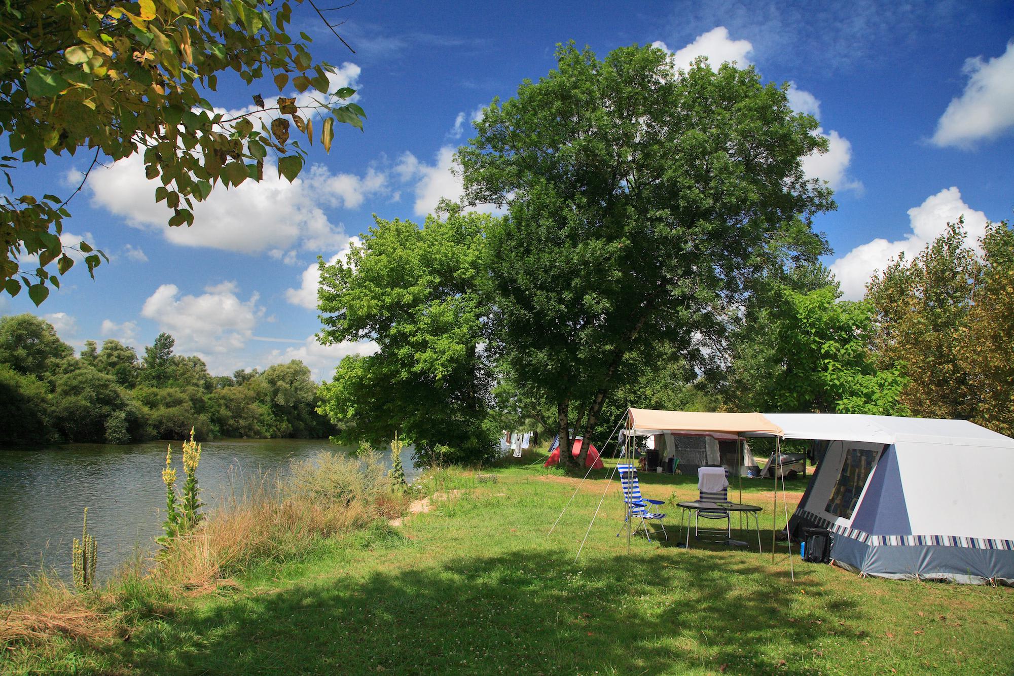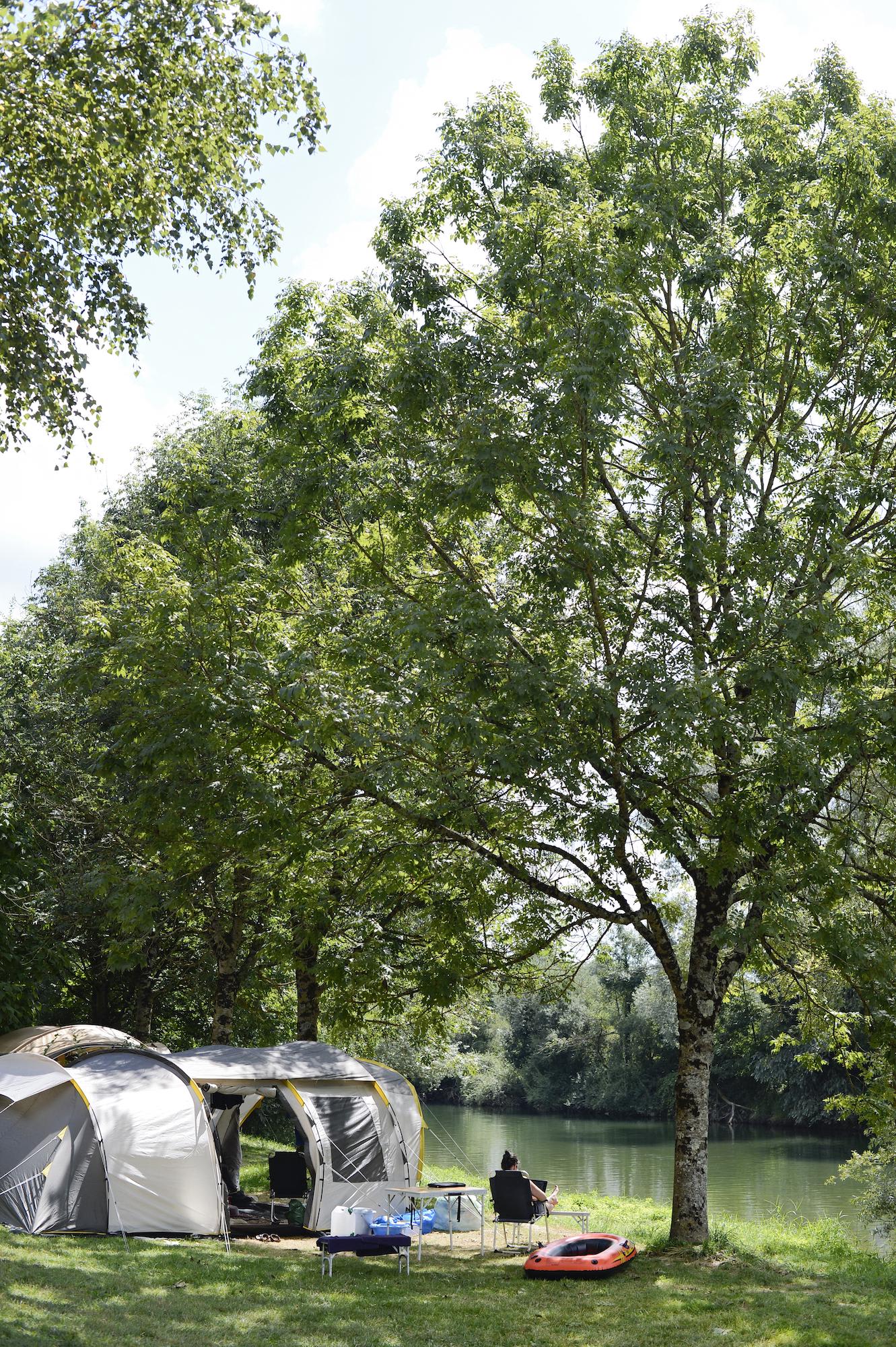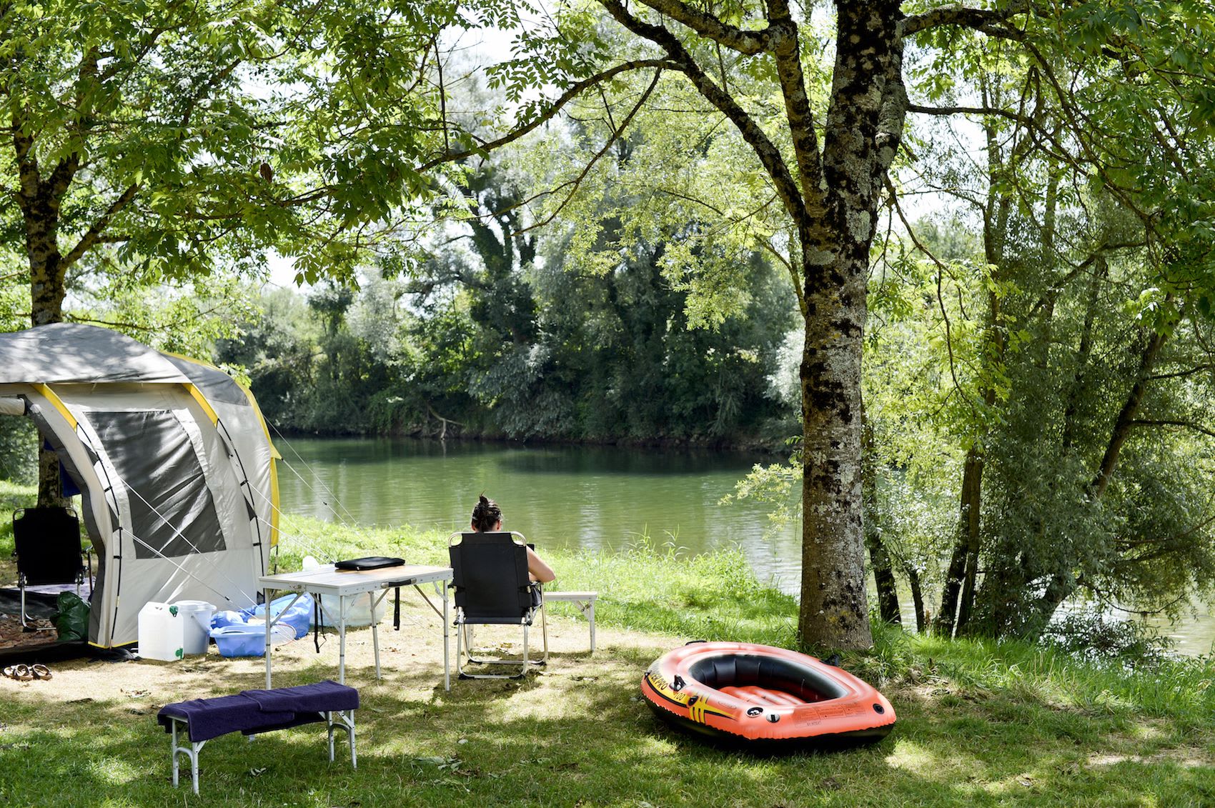 the river’s edge, the grassy tent pitches here have easy access right down to