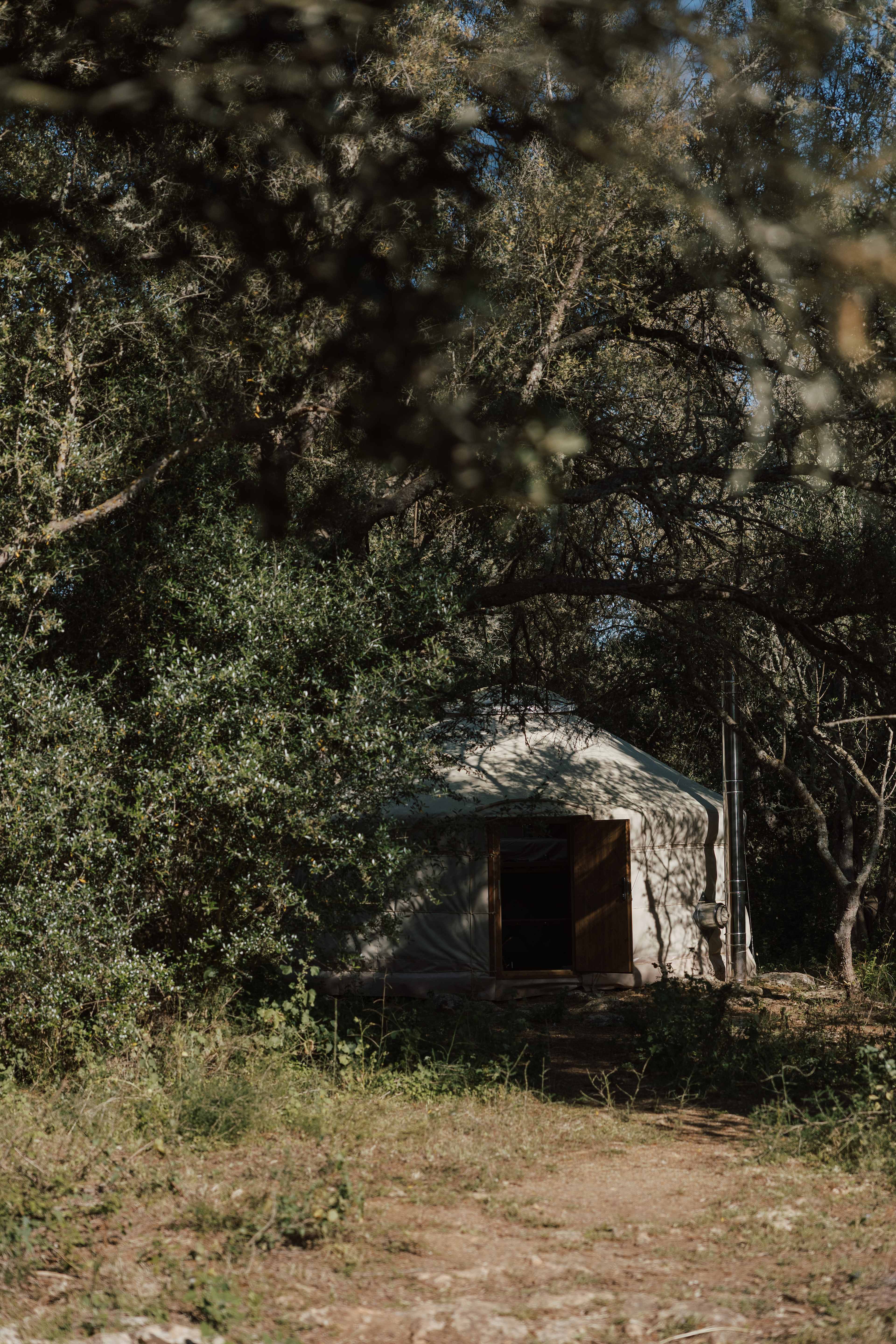 If you feel adventurous, you like slow life, star gazing, waking up and falling asleep with birds singing then this a the place for you. This hidden paradise is situated only 15km from beautiful beaches and Tramuntana mountains. Explore the life of surrounding animals, pigs, horses, go for endless walks, pick medicinal and eatable plants, fruits and mushrooms or try wood chopping or morning barefoot walk on the mother rocks and tree roots. Our place is fully self-sufficient. The drinking water comes from a 100m deep well that is on our land, the electricity comes from a solar roof. Your cabin style private space consists of: -A Yurt (build from natural materials), it sleeps up to 5badults (queen size beds) - Shared indoor kitchen (stone house) with cooking basics, gas burner, bbq grill and running water (potable) - Hot bath - Outdoor shower (cold water) -Dry composting toilet (shared/separate outhouse) -Picnic table -Hammocks -Private parking place -14. 000 square meters of wild forest life Your yurt is equipped with: -Reading Lights -Fan -Wood burning stove -Small refrigerator -Bed linens -Douvets and blankets -Electric sockets -Electric mosquito repellent -Extra pillows and blankets -Mosquito net -Body towels, Beach towels -Headlamps Additional services: - Horse riding (20 eur/hour) - Airport pick-up or drop off (60 eur) We recommend you to bring for your stay: - Head lamp or a flashlight - Mosquito repellent - Sandals or flip flops (croqs type)