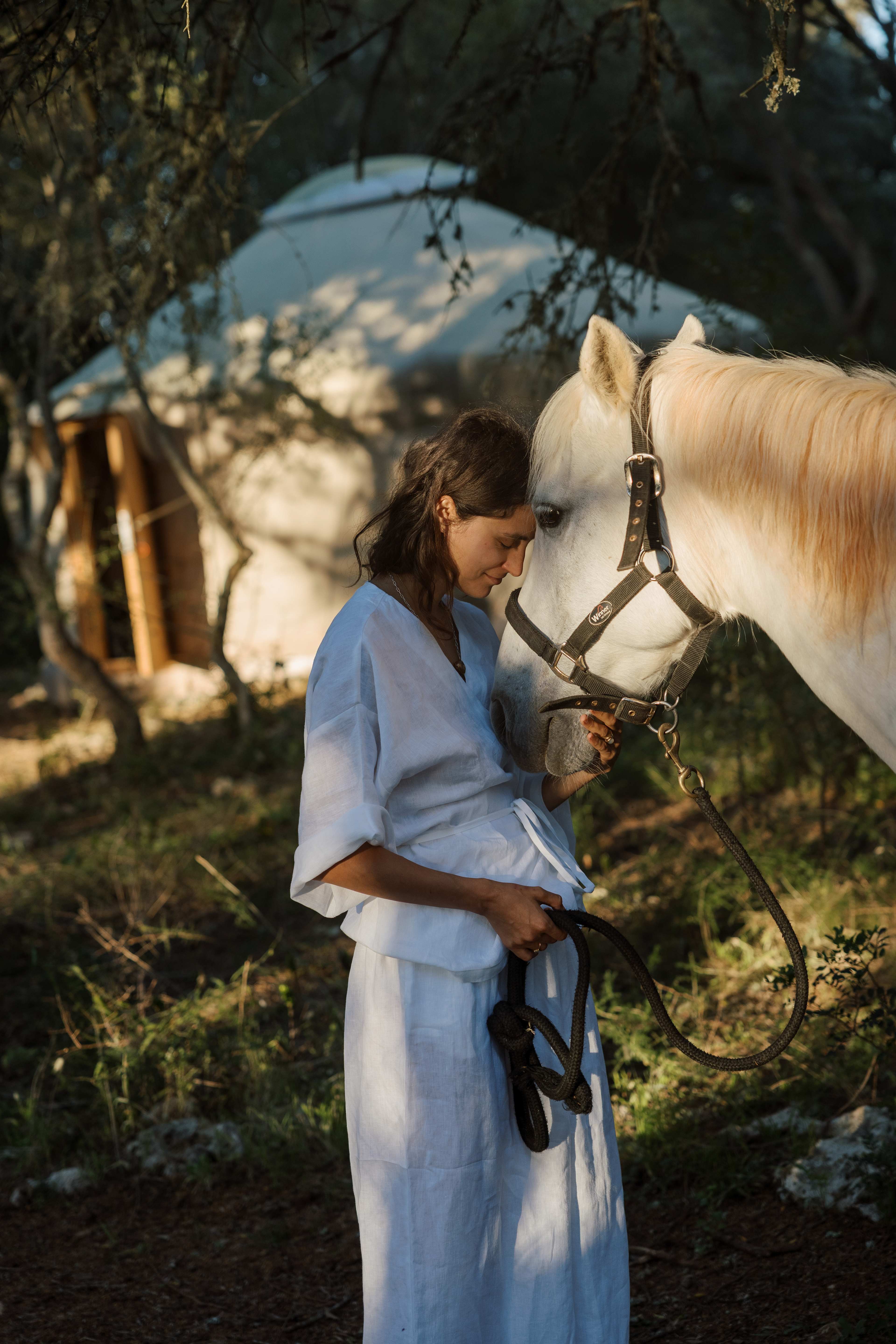 If you feel adventurous, you like slow life, star gazing, waking up and falling asleep with birds singing then this a the place for you. This hidden paradise with free range animals is situated only 15km from beautiful beaches and Tramuntana mountains. Explore the life of surrounding animals, pigs,horses,go for endless walks, pick medicinal and eatable plants, fruits and mushrooms or try wood chopping or morning barefoot walk on the mother rocks and tree roots. The space Our place is fully self-sufficient. The drinking water comes from a 100m deep well that is on our land, the electricity comes from a solar roof. Your private cabin consists of: -A Yurt (build all from natural materials) that sleeps up to 5 adults (queen size beds) - Shared kitchen (stone house) with cooking basics, gas burner, weber bbq grill and running water (potable) - Hot bath - Outdoor shower (cold water) - Dry composting toilet (shared/separate outhouse) - Picnic table - Hammocks - Private parking place - 14.000 square meters of wild forest life Inside the yurt: -Queen size mattress -Small refrigerator -Wooden stove heating -Electricity sockets -Reading lamps -Douvet and blankets -Bed linen -Body towels -Mosquito net -A fan Other things to note Additional services: - Horse riding (20 eur/hour) - Airport pick-up or drop off (60 eur) We recommend you to bring for your stay: - Head lamp or a flashlight - Mosquito repellent - Sandals or flip flops (croqs type)