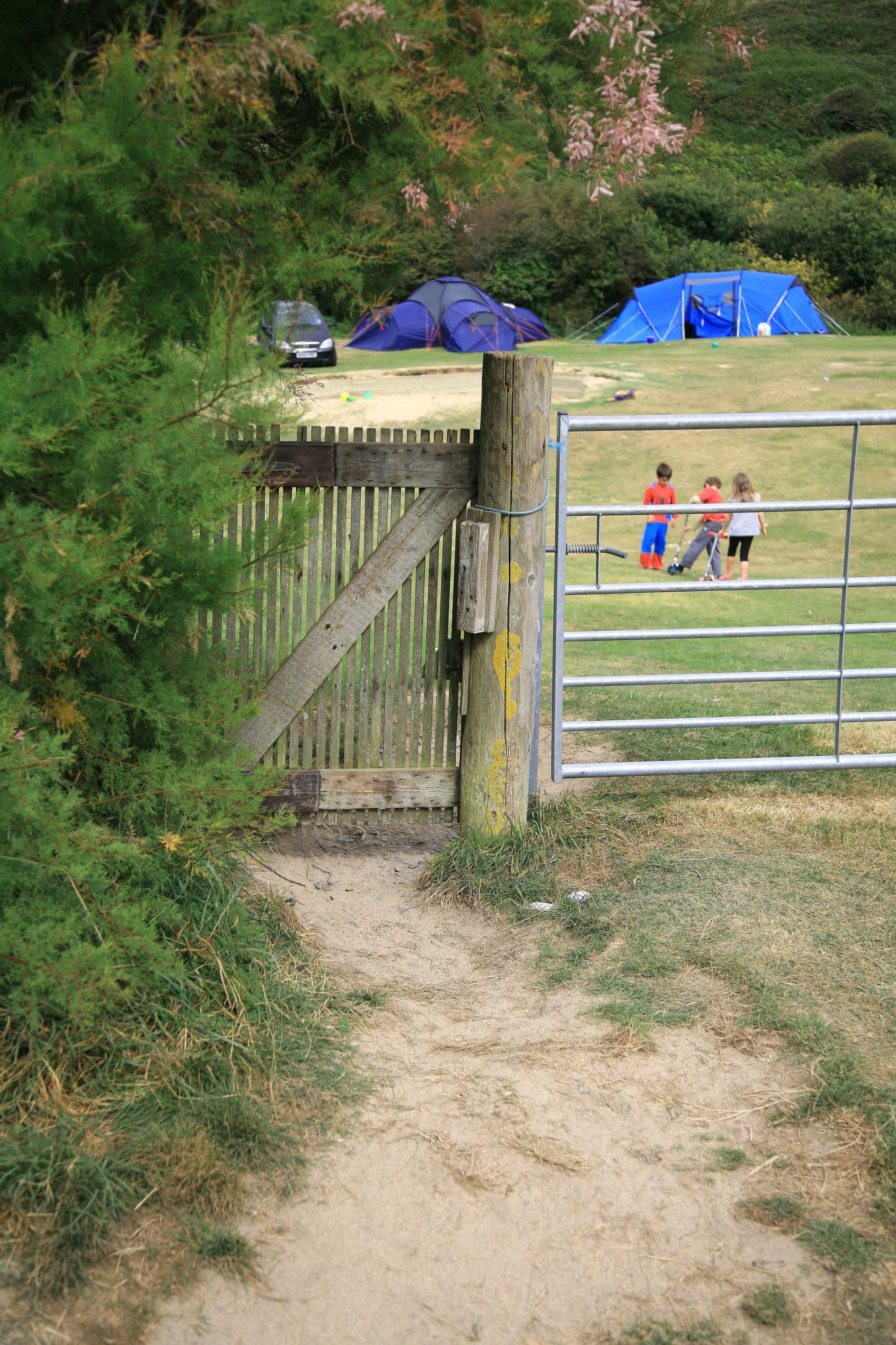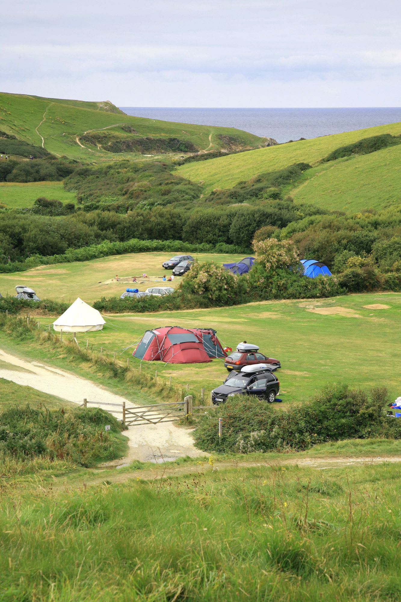 The location, just four miles from Newquay (Cornwall’s capital of tack and tourism) is surprising. The site is along a narrow, bumpy, sandy track through the dunes and almost a mile from the nearest public road. There are no signs directing the blessed few to Porth Joke, and no indication, until you stumble on to it, that anything exists down this scenic road to nowhere. But there it is, a tiny campsite, sheltered by the dunes from the wrath of the Atlantic, which is just a few hundred metres away.