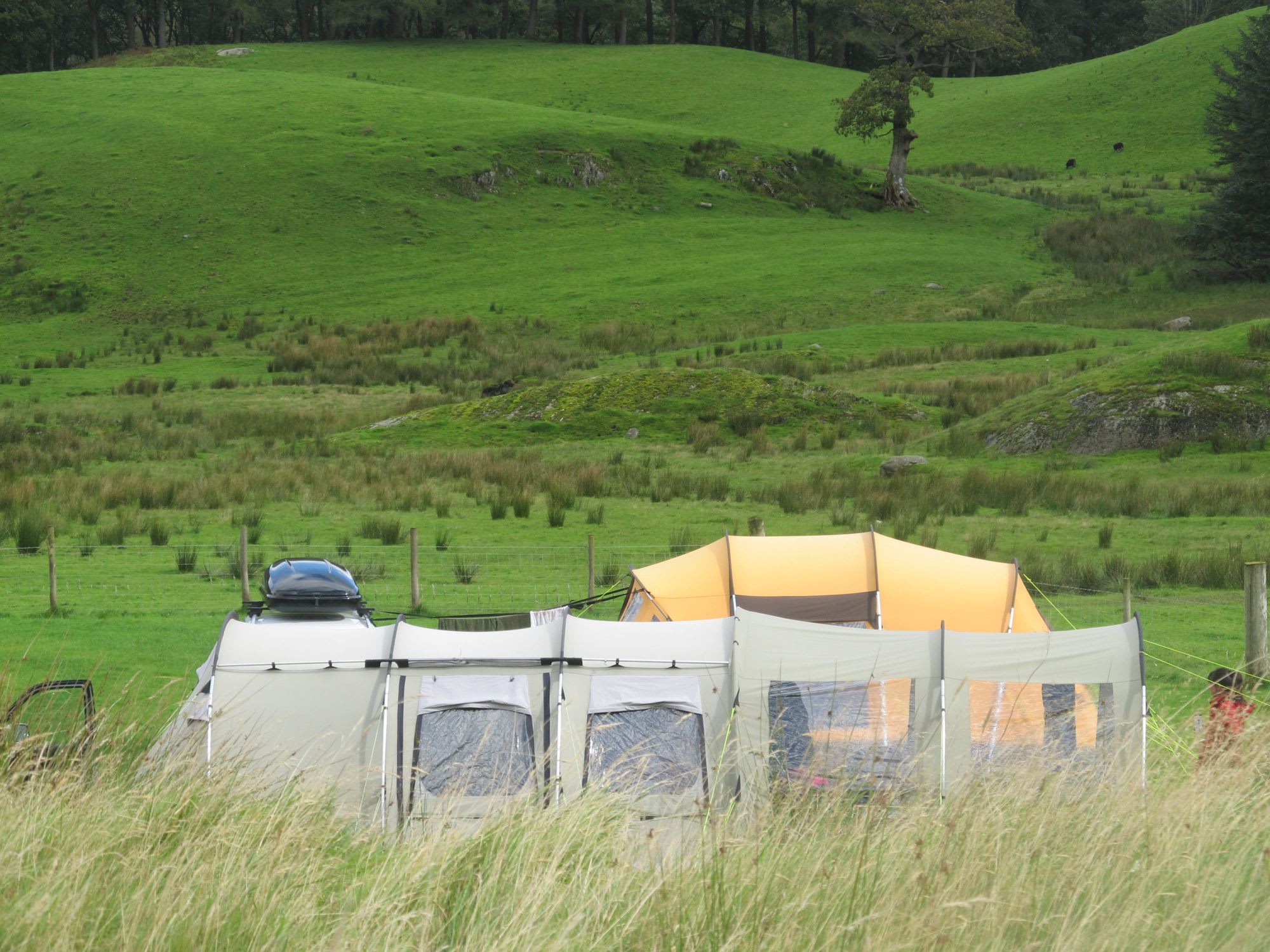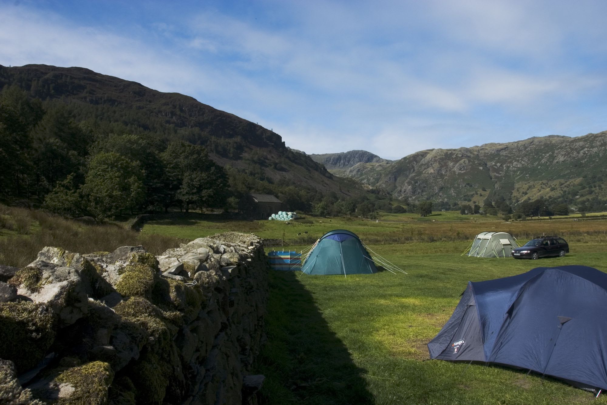 The entire site lies beneath the humbling rocks of Crinkle Crags, Bowfell and the Langdale Pikes, which seem to swallow up your tent, the farmhouse, and distant Chapel Stile village, and give a sense of scale rarely found in the Lakes. Peering out each morning at the mist-shrouded peaks is worth the entrance money alone. You and your tent will be at the centre of an 800-acre farm. Baahs float over the lichen-drenched walls from the resident flock of sheep and chickens run amok around your guy ropes, much to the kids’ delight.