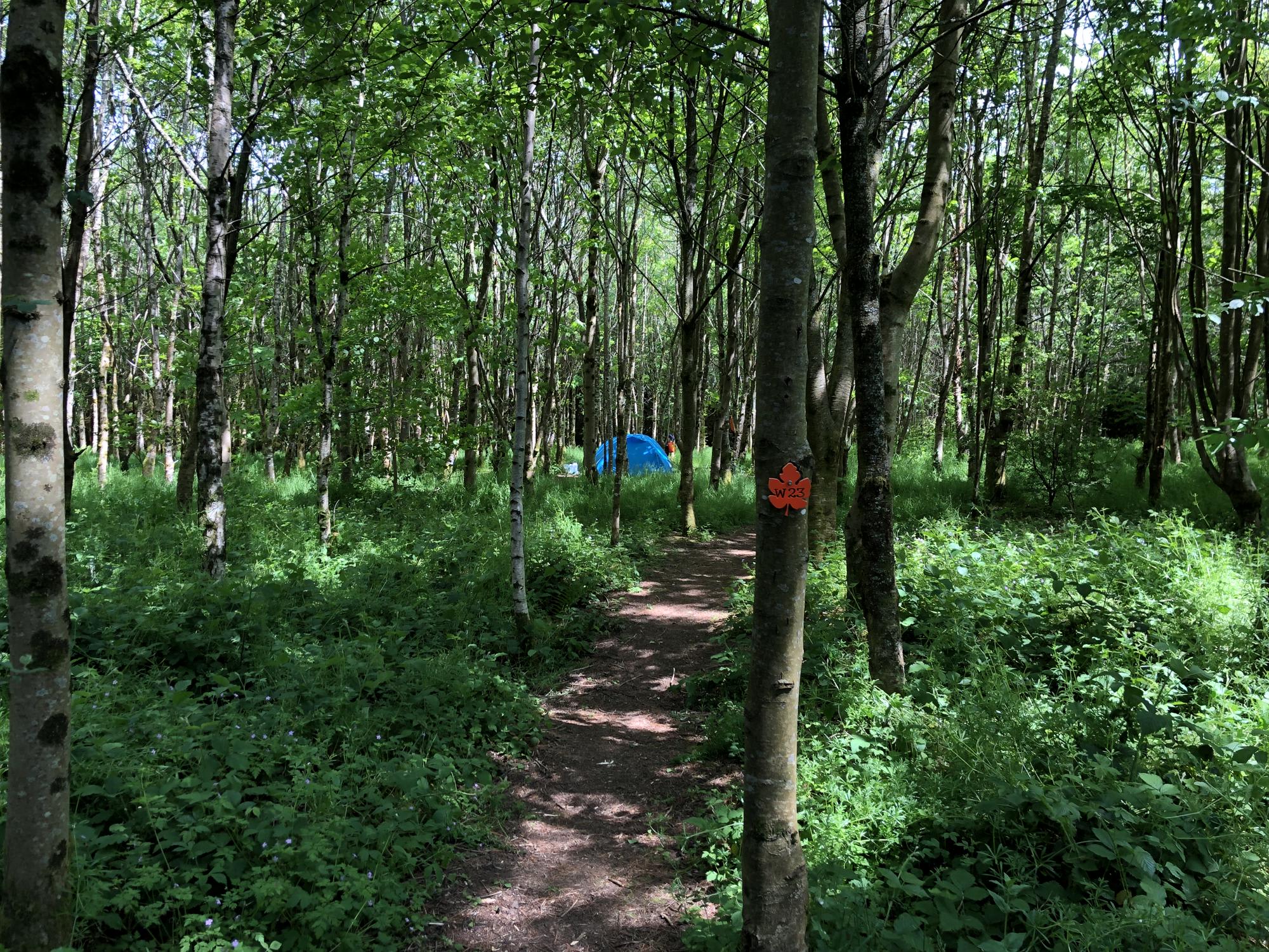 The quaint little village of Rattery on the edge of Dartmoor is a rather sleepy sort of place. Old thatched-roofed houses and newer bungalows are cobbled together around the ancient church, while outside the churchyard a pub attracts locals and walkers alike. Above its entrance, flanked by old wrought-iron wagon wheels, the date 1028 is scribed, alluding to the village’s oldest records in the Domesday book. The village name, apparently, comes from the ‘Red Trees’ of the area. And today, just west of Rattery, you can camp in among them, pitching your tent beneath the leafy canopy of Ashbourne Wood.