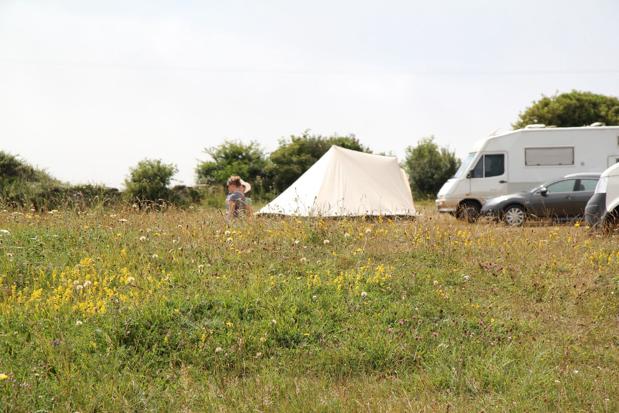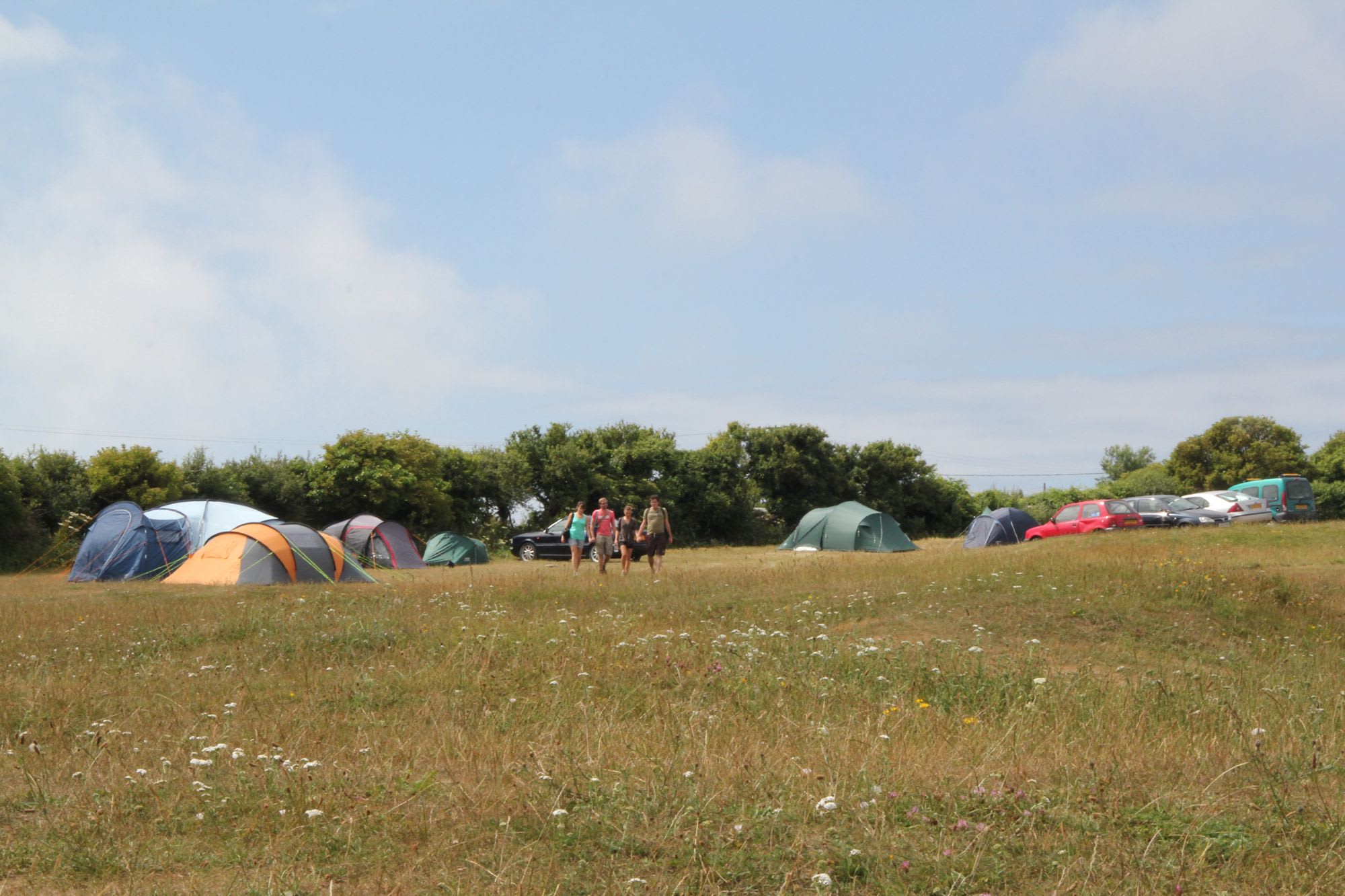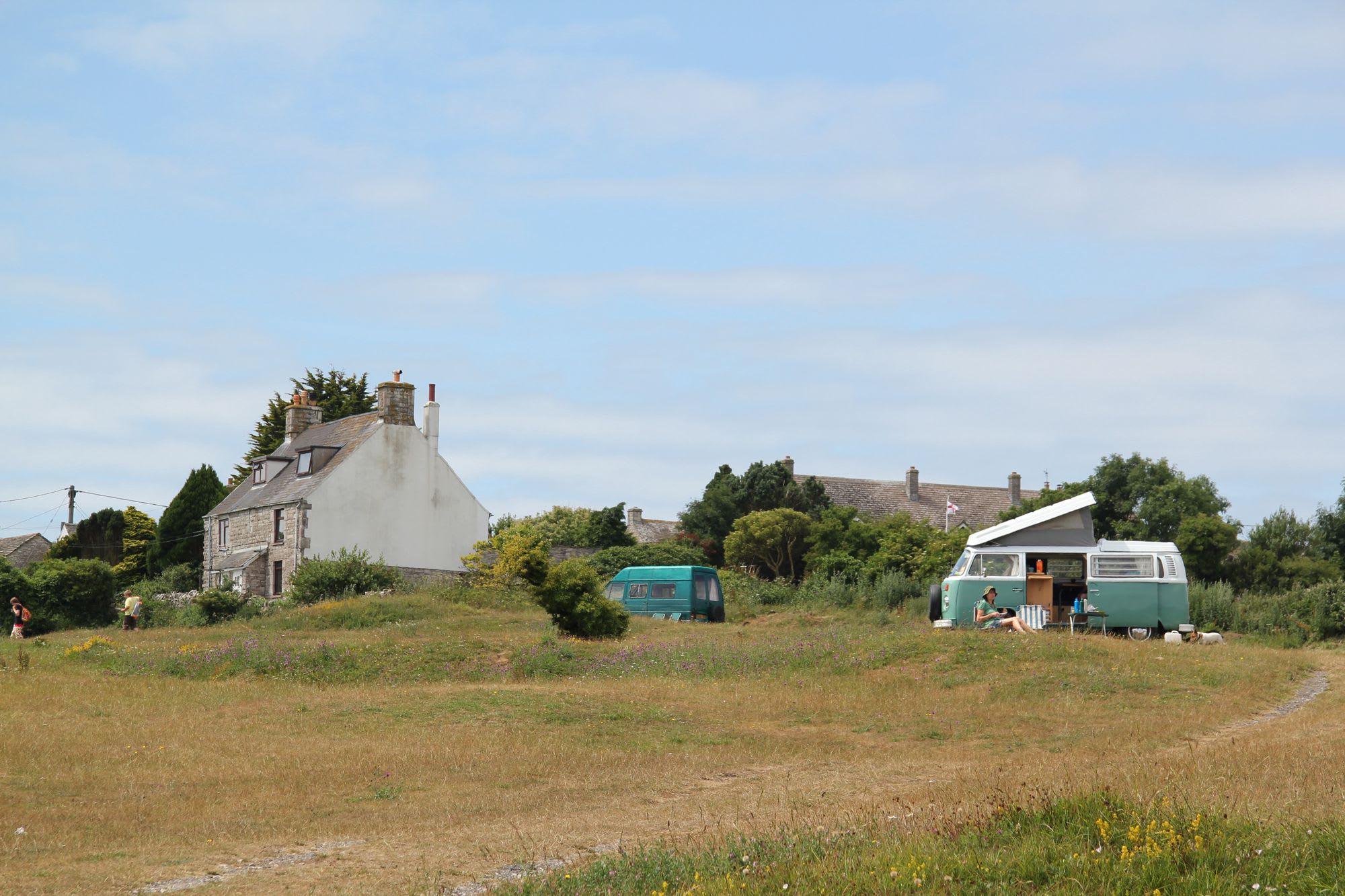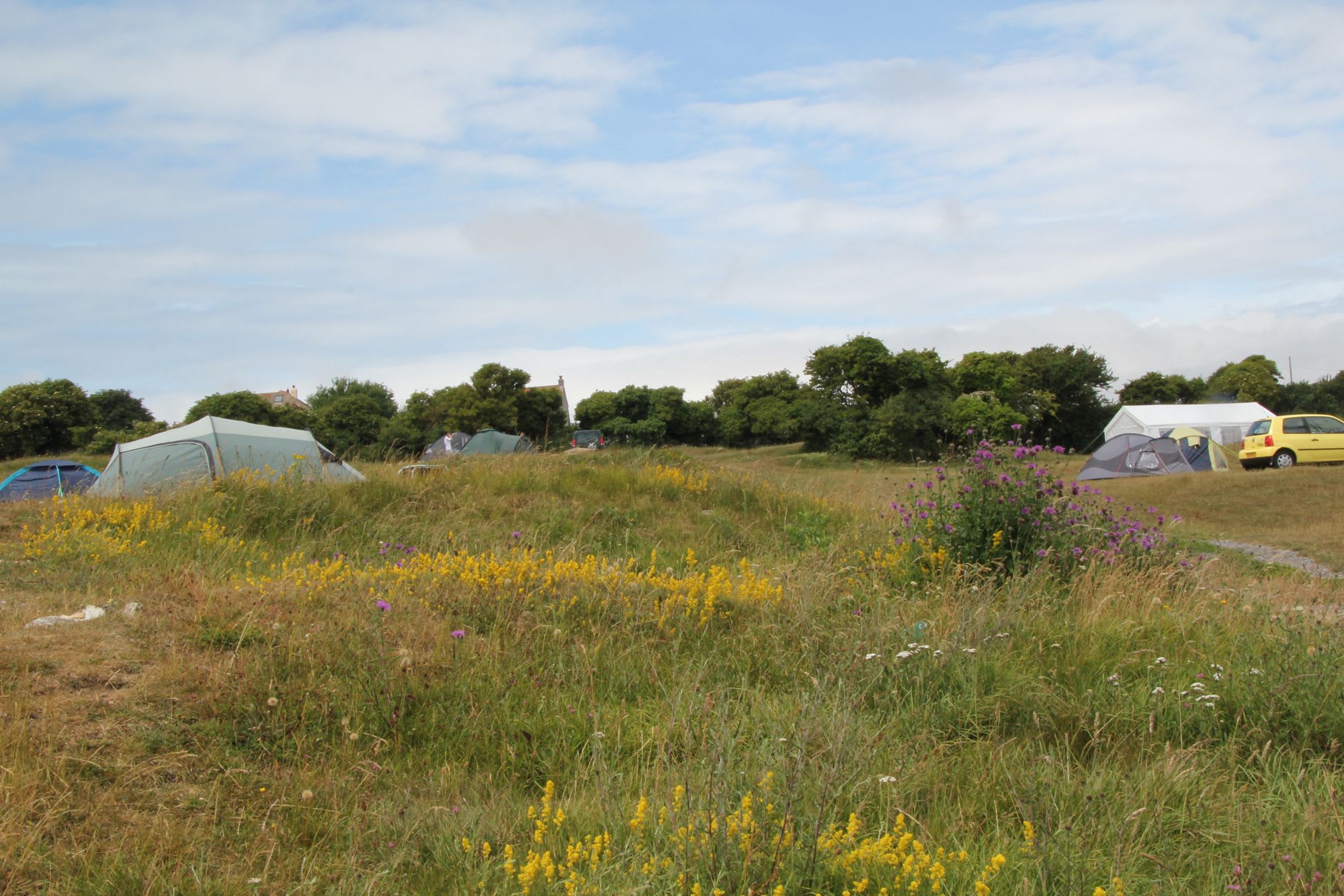 Hidden behind a discreet residential slip road in Langton Matravers, random tufts of wild flowers adorn the natural bumps and curves of Acton Field on the Purbeck Hills. The unspoilt – verging on wild – terrain comprises a wide, sloping, and grassy campsite, where you can see Swanage Bay glistening in yonder distance.