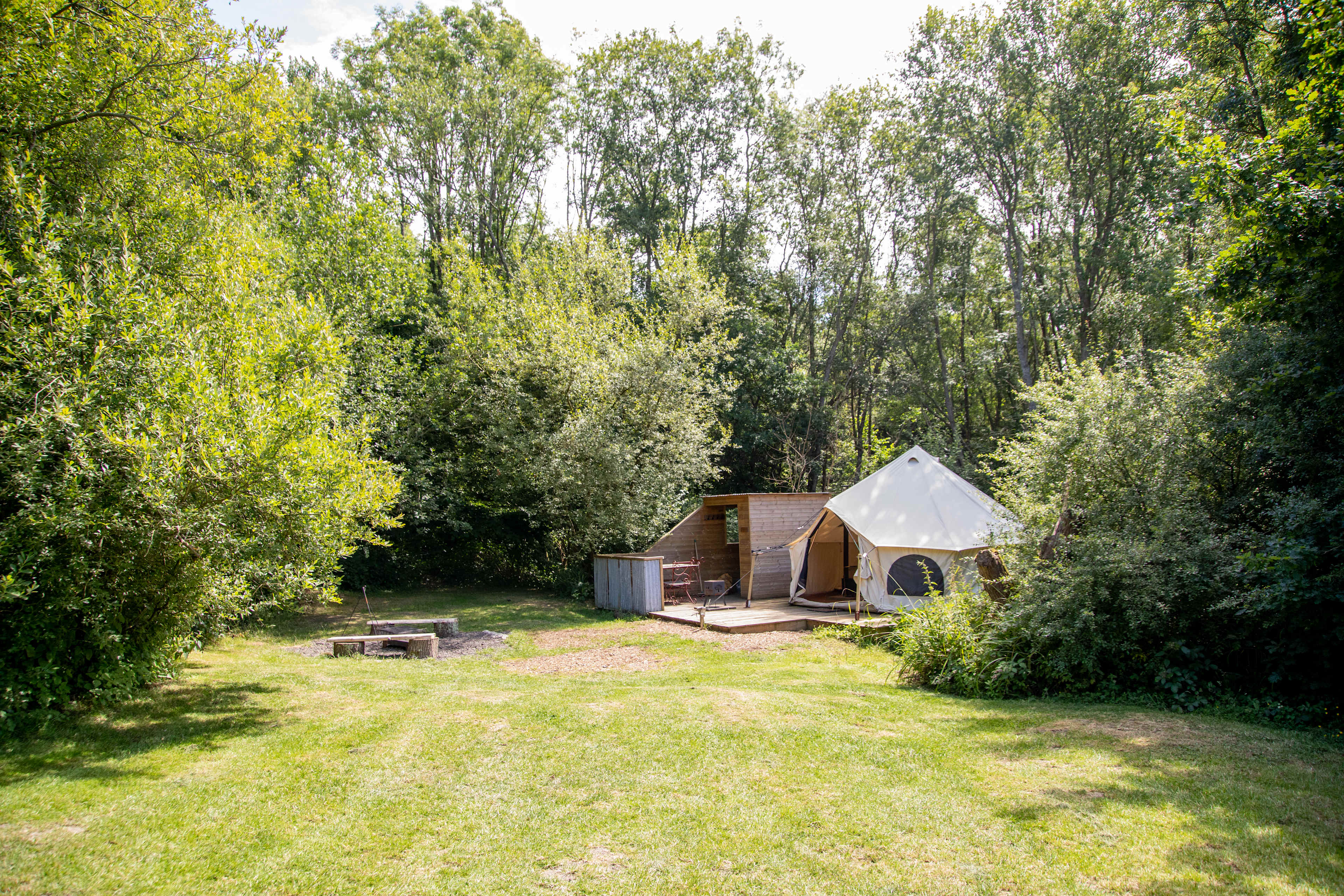 Dernwood Farm offers wild camping and rustic off-grid glamping among the ancient trees of a Sussex woodland. You arrive here down leafy lanes then check in with your lovely hosts at the farm shop and cafe which doubles as campsite reception. The car and all the stress of the journey are abandoned as you make your way to your home for a night or two. Whether it’s a bell tent, a cabin, or simply a patch of grass in the field, the walk through woodland with wheelbarrows sets the tone for your stay. You slow down, take in your surroundings, enjoy a bit of nature’s magic… and breathe.