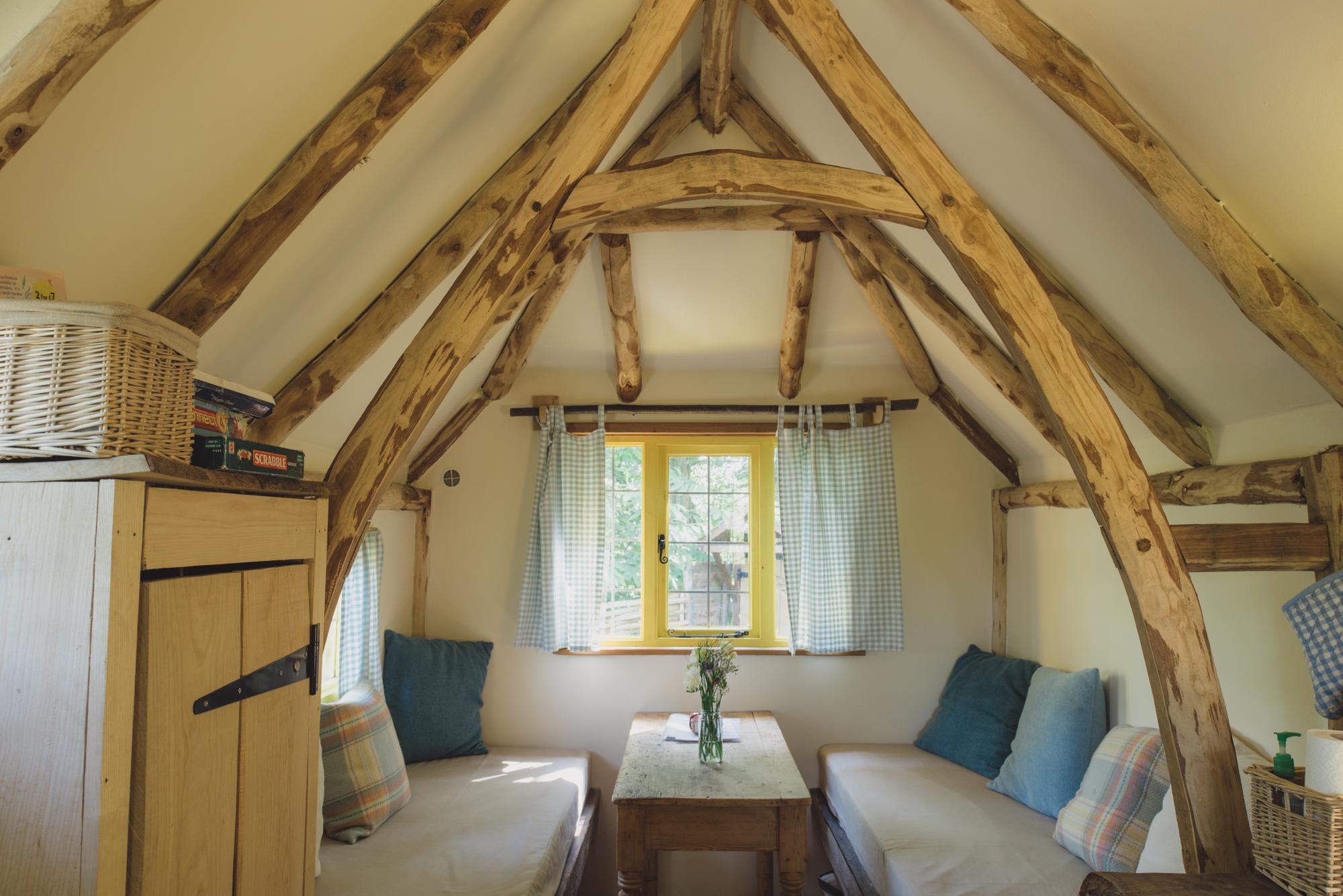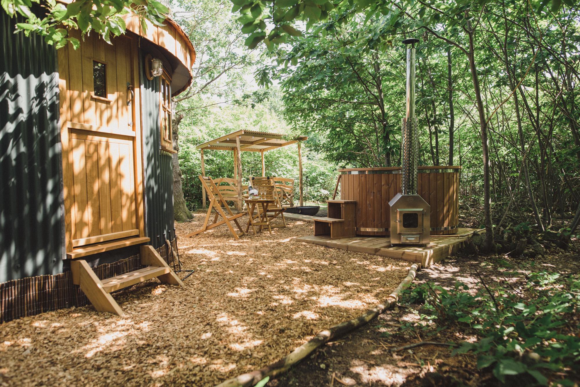 There are two cosy timber cabins, too, complete with wood-burning stove, kitchenette and firepit for some bonfire grilling under the stars, along with a luxurious romantic roundhouse in the woods for two, complete with its own hot tub, and another woodland retreat (the aptly named Woodcutter’s Cottage) tucked away in a dell at the end of The Dean Wood. This eight-acre chestnut and oak coppiced woodland is surrounded by hornbeam, holly, hazel, oak and chestnut hedges and makes up the magical centre-piece of the farm.