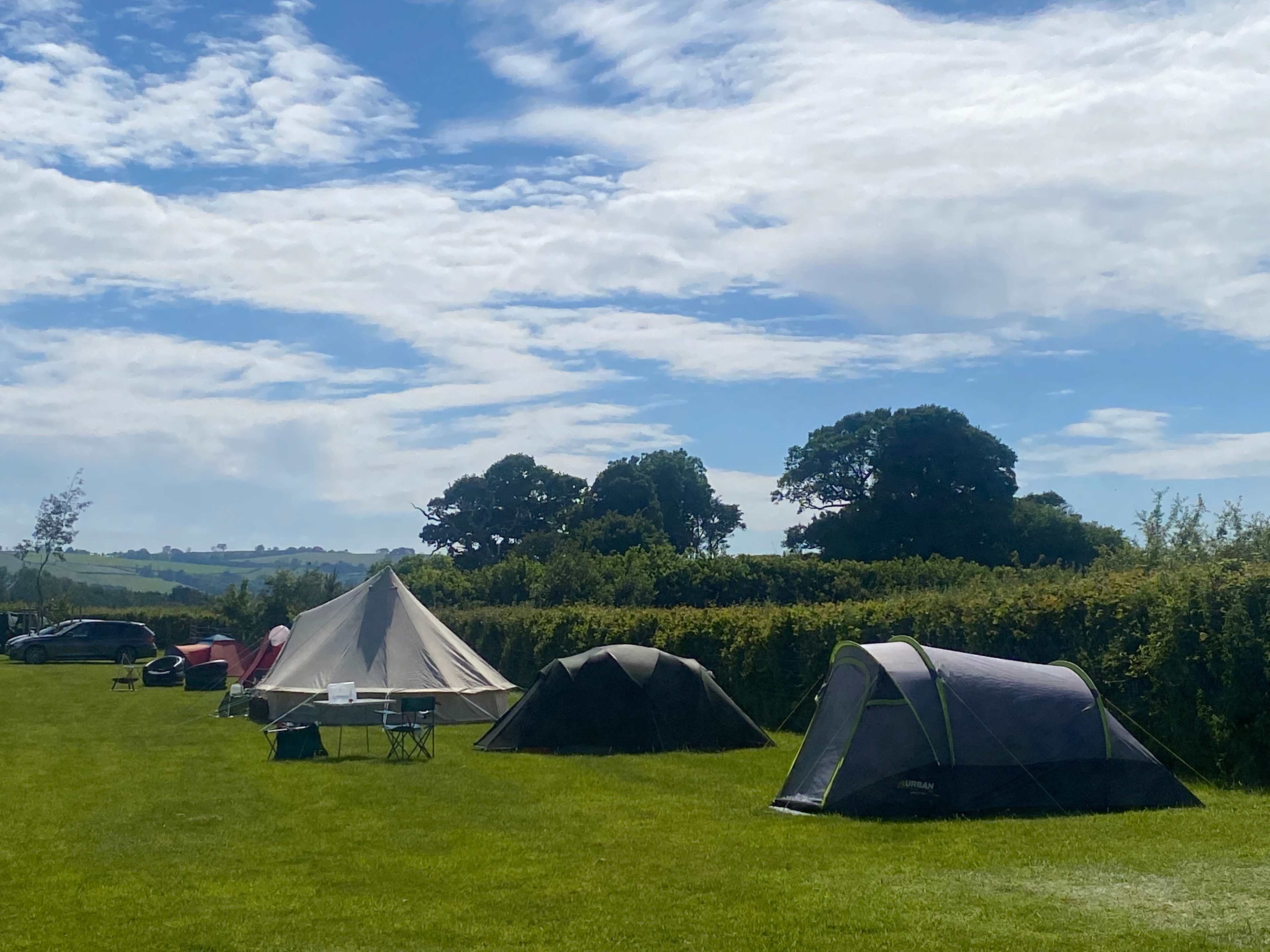 Spacious grass pitches are available next to the alpaca's paddock.
