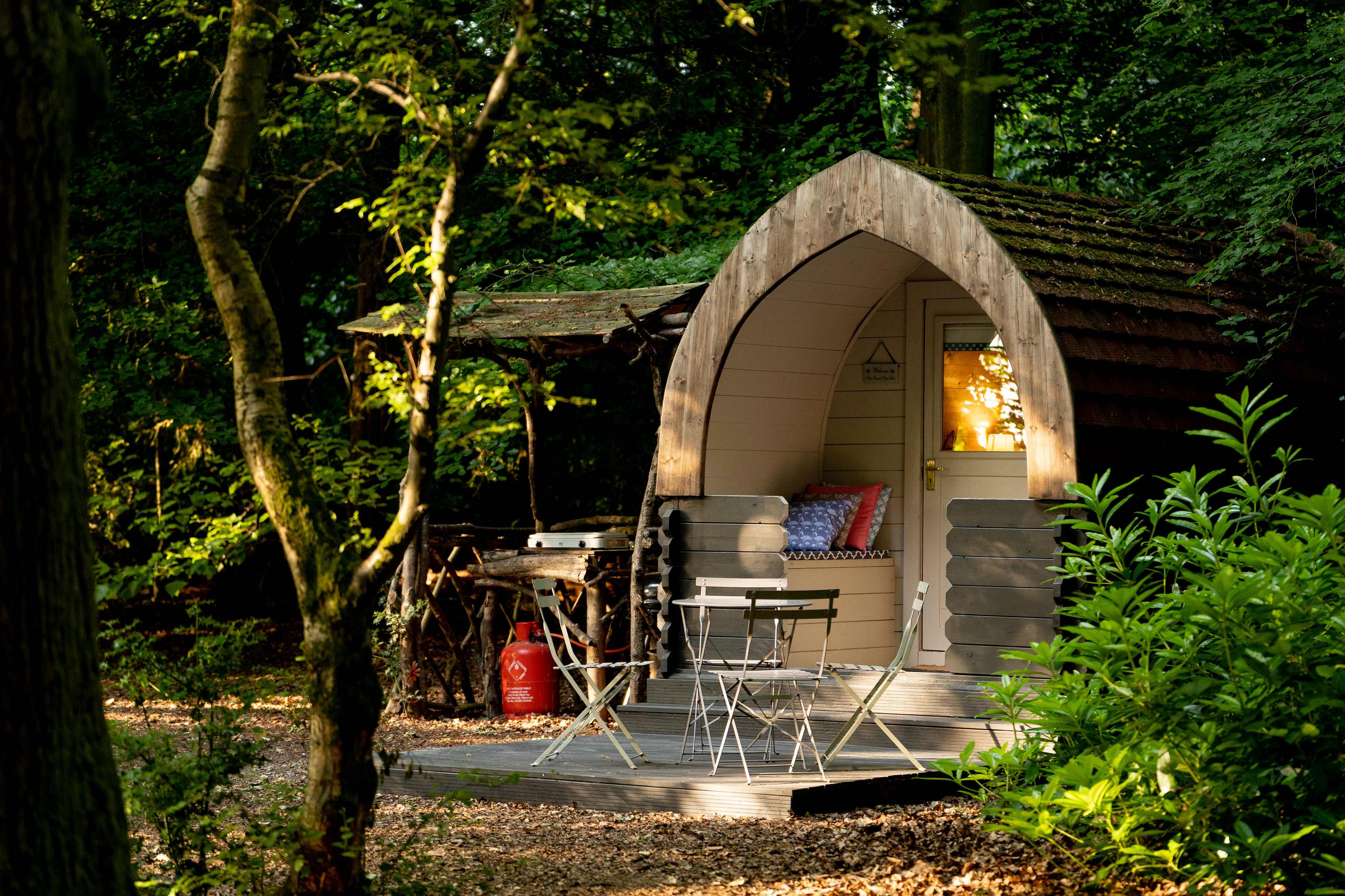 Lovely little campsite. We stayed in a pod. Everything provided, gas hobs, cutlery, plates, fridge, tea/coffee, kettle, toaster etc. Owners very friendly and welcoming, and we fell in love with their gentle giant, Tony the great Dane. Own shower and flushing toilet, all very clean. Don't forget to bring your torch. Very relaxing, comfortable stay.