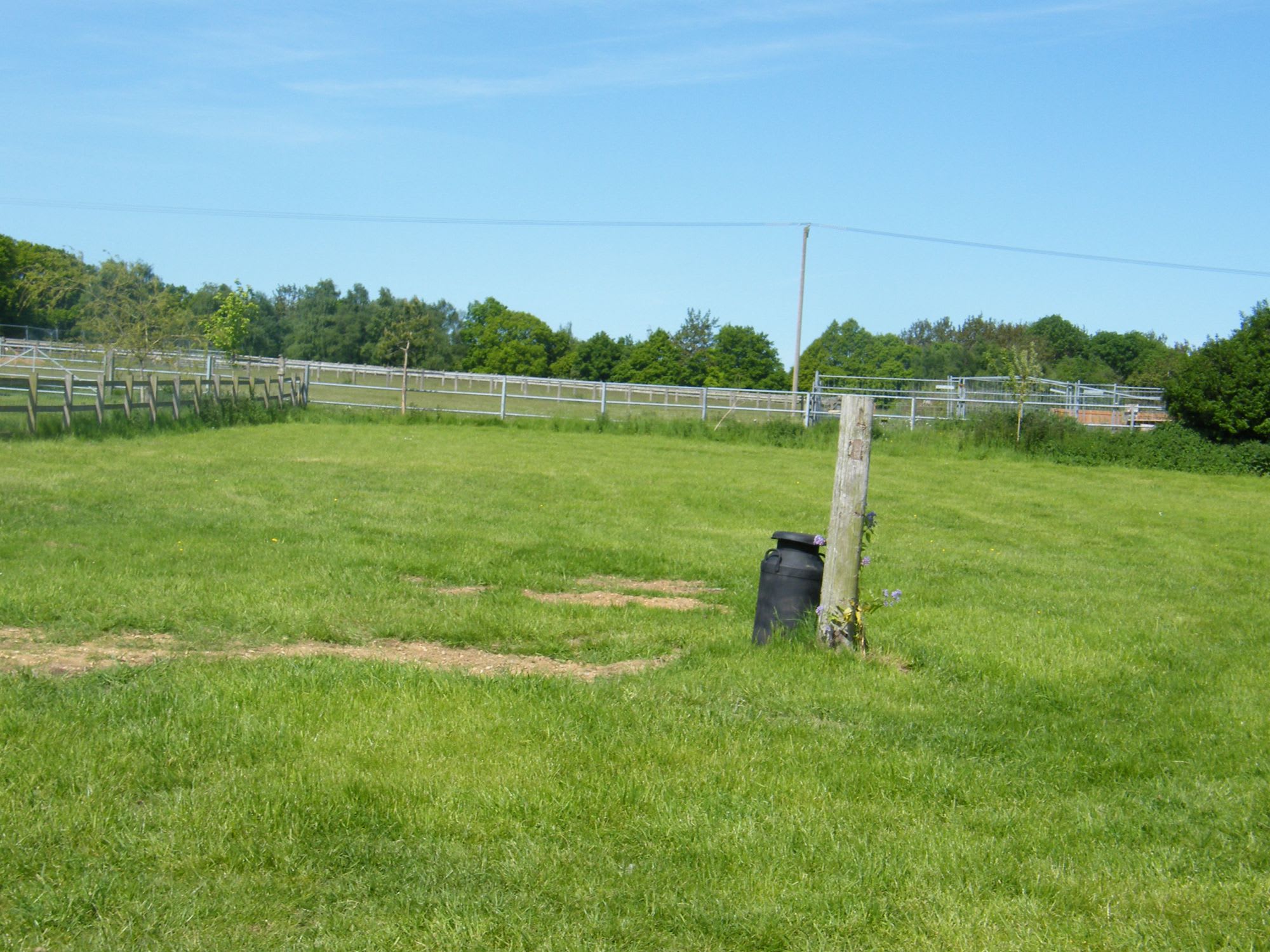 wooden gate opens into Strawberry Fields Campsite, a grassy meadow with views