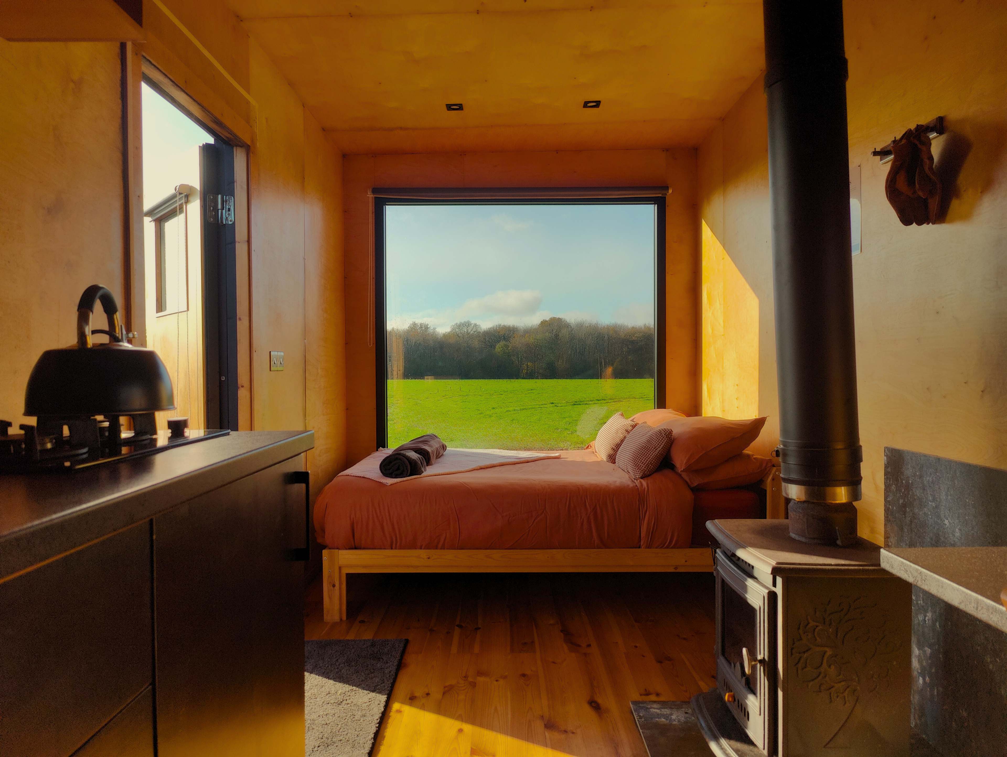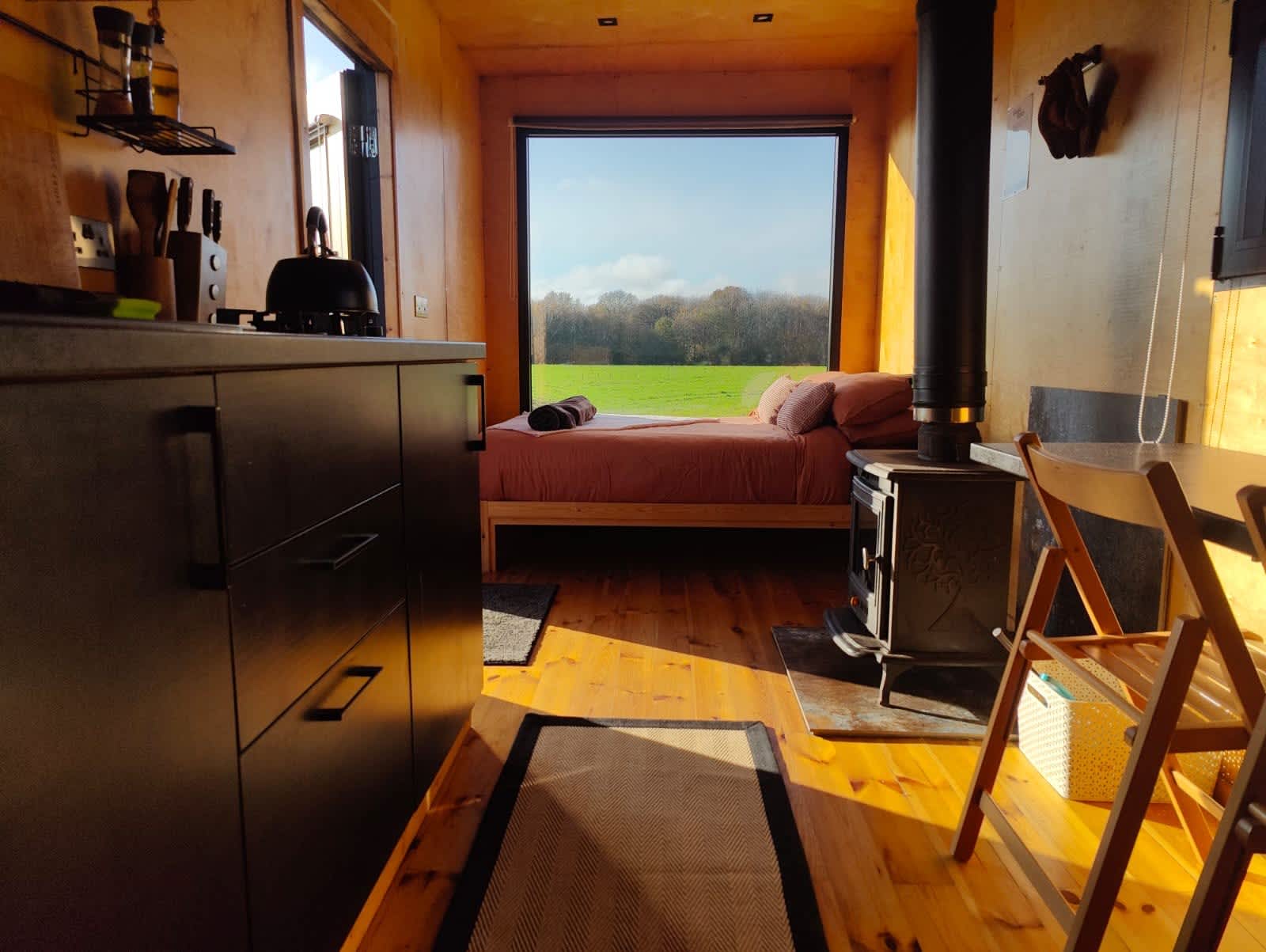 Tucked away in its own 15-acre field in the Kent Downs AONB, this off-grid cabin is a peaceful, completely private escape just 6 miles from Canterbury. - Cabin all to yourself with no neighbours – just 15 acres of birdsong and breeze - Wide views of fields and trees in every direction - Total peace and no light pollution – incredible stargazing on clear nights - Dog-friendly with walks straight from the door - Fully off-grid with hot water, simple kitchen and a wood burner to keep you cosy Featured in The Guardian as one of the UK’s Top 10 Off-Grid Stays. What makes this cabin special? - You will have no neighbours - Big open countryside views - Total peace and no light pollution – incredible stars on clear nights - Dog-friendly - Amazing walks into the Kent countryside from the door - A great local pub nearby - Fully off-grid cosy cabin with hot water, kitchen and a wood burner Inside the cabin - Open-plan space with double bed and wood-burning stove - Ensuite hot shower with fluffy towels - Gas hob, fridge, stove-top coffee maker & cafetière - Large window at the end of the bed with long views - Cosy wooden interiors – warm and snug in all seasons Outside space - Picnic table, firepit and open field all around - Perfect spot for sunrise, stargazing or just doing nothing - Plenty of space for dogs to mooch about Come for the silence. Stay for the sky. We’d love to welcome you.Tucked away in its own 15-acre field in the Kent Downs AONB, this off-grid cabin is a peaceful, completely private escape just 6 miles from Canterbury. - Cabin all to yourself with no neighbours – just 15 acres of birdsong and breeze - Wide views of fields and trees in every direction - Total peace and no light pollution – incredible stargazing on clear nights - Dog-friendly with walks straight from the door Fully off-grid with hot water, simple kitchen and a wood burner to keep you cosy Featured in The Guardian as one of the UK’s Top 10 Off-Grid Stays. What makes this cabin special? - You will have no neighbours - Big open countryside views - Total peace and no light pollution – incredible stars on clear nights - Dog-friendly - Amazing walks into the Kent countryside from the door - A great local pub nearby - Fully off-grid cosy cabin with hot water, kitchen and a wood burner Inside the cabin - Open-plan space with double bed and wood-burning stove - Ensuite hot shower with fluffy towels - Gas hob, fridge, stove-top coffee maker & cafetière - Large window at the end of the bed with long views - Cosy wooden interiors – warm and snug in all seasons Outside space - Picnic table, firepit and open field all around - Perfect spot for sunrise, stargazing or just doing nothing - Plenty of space for dogs to mooch about Come for the silence. Stay for the sky. We’d love to welcome you.