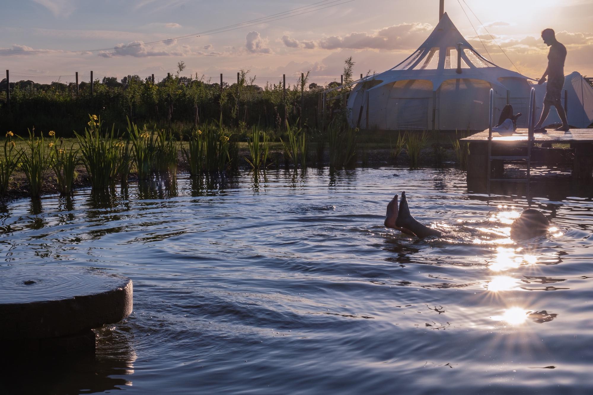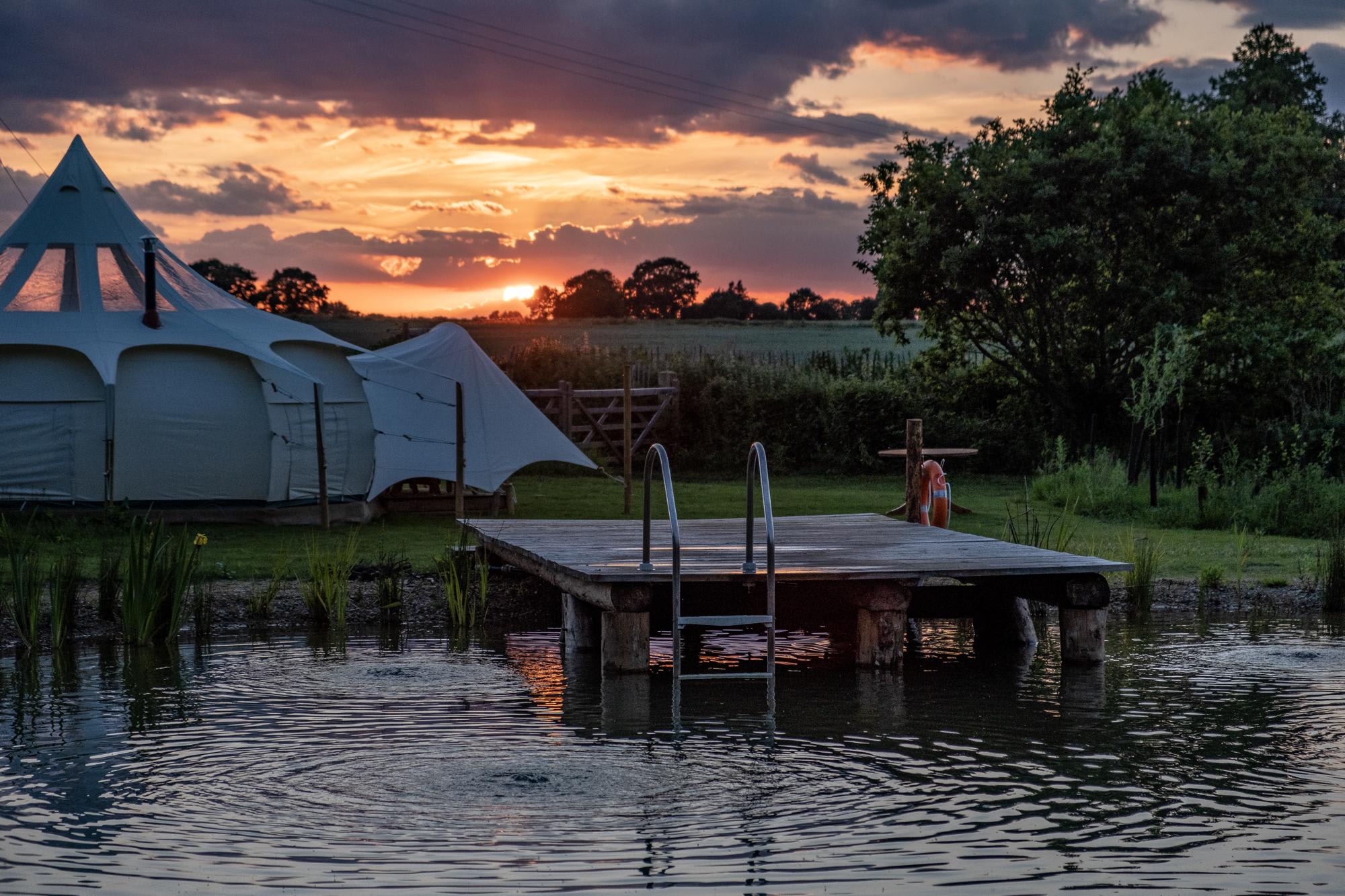 10 miles north of Norwich, Moat Island Glamping is comprised of five Lotus Belle tents, each sleeping up to four people and situated around the old moat. Inside, they’re kitted out with all the comforts you could need – double beds, wood burners and, in the two ‘Stargazer’ tents, clear ceiling panels so you can stargaze from your bed. Outside, meanwhile is Moat Island’s pièce de résistance, a naturally filtering swimming pond with a jetty you can jump in off.