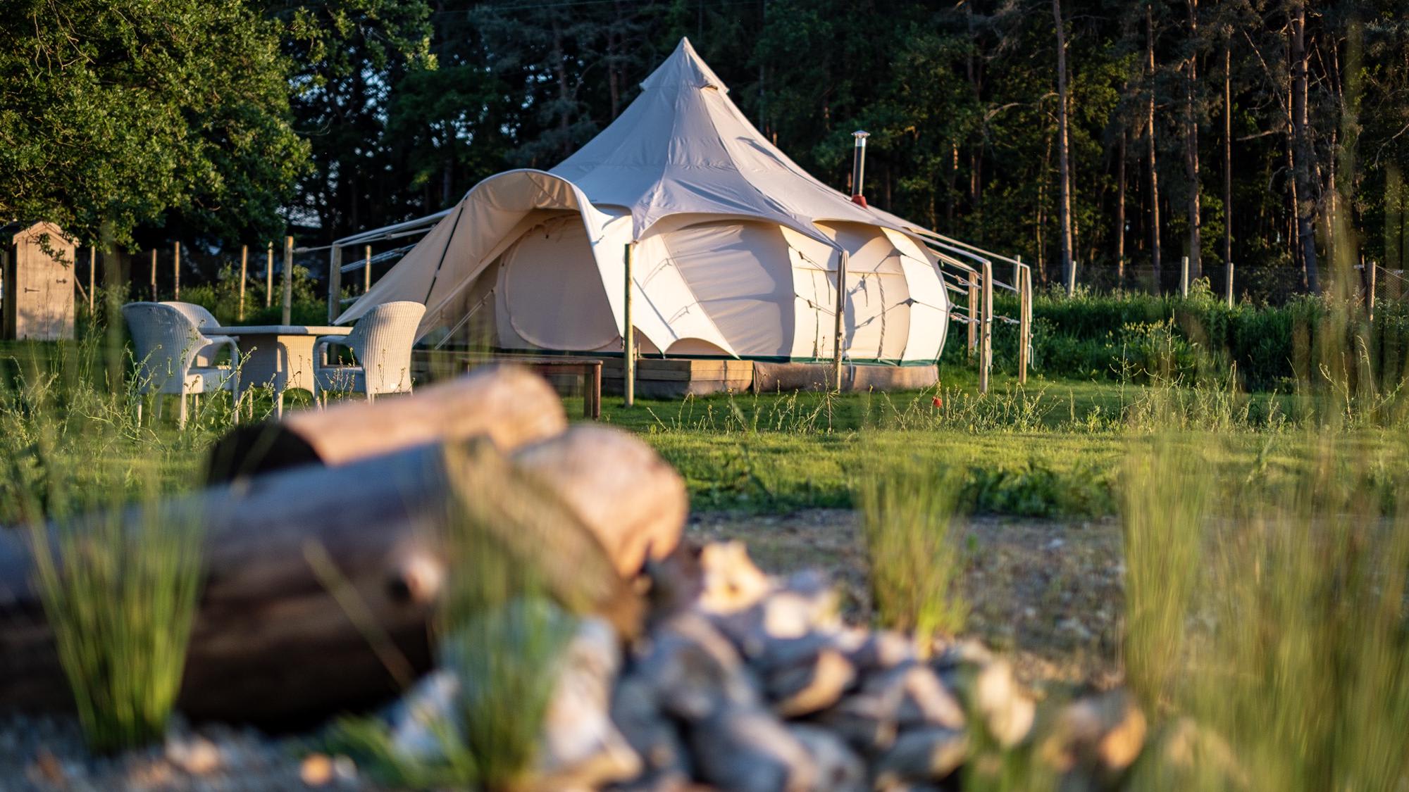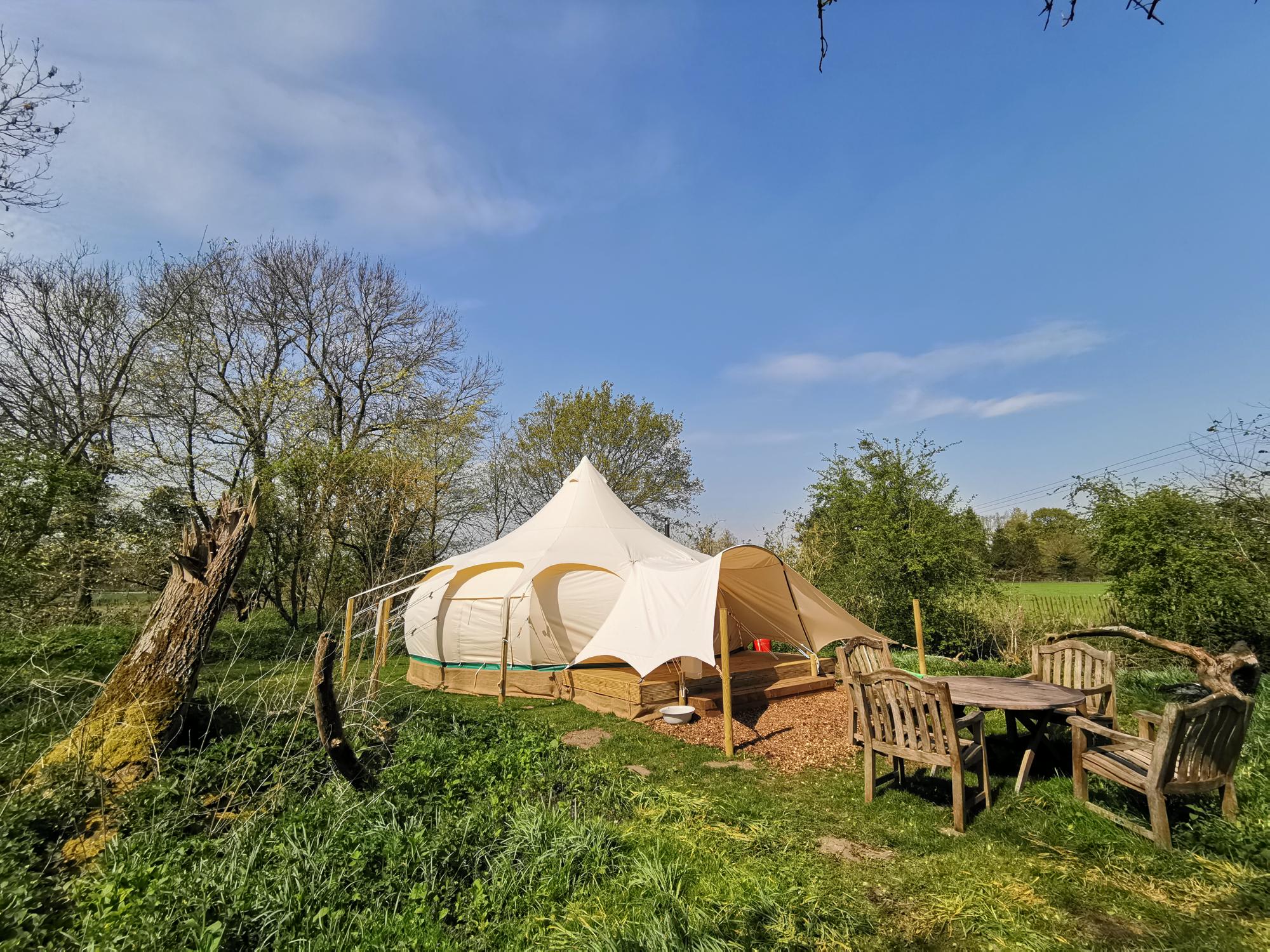 The eco system the pool creates is just one sign of the effort made here to keep things green and nature friendly. Along with a set of super luxurious washrooms, with flushing loos and powerful showers, there are compost toilet options closer to your tent. The overgrown Christmas trees, meanwhile, that once covered the car parking area, have been re-used around the site to build small footbridges and in the top-spec outdoor kitchen, which features a range oven, Smeg fridge-freezer and a pizza oven, the work surfaces have all been made from snooker-table slates. The resulting effect is a setting with history and wildlife but also a glamping site with a real sense of the cutting edge.