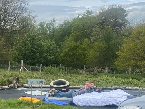 Oak Rock - is a level site (between a rock and an oak tree!) that hosts up to 8 people - there are stunning views to wake up to and comes with its own - Fire pit - located at the top of the field by the woodland. There will only ever be two groups on the field camping, each with their own fire area. The firepit area is perfect for cooking and staying up with a campfire, on a clear night you can see the milky way and zillions of stars. There is always the option of renting the horsebox as a field kitchen/ shelter - also a large 4 x 6 m group tent, as weather back up or simply to hang out or sleep in. Just get in touch with the owner - you can add this last minute if you need it. We are an off grid site so there is a compost toilet and a shower cubical, which can operate with your own shower bag , though there is a camp water pump shower head if preferred. Each fire pit has a woodland compost toilet tent, which is a more sustainable option to use alongside the compost toilet unit and nearer the fire. If you have a larger group you can rent both pitches, the maximum amount of campers in a large group is 20 people. Just rent exclusive use (for 10 people) and then add additional guests, or get in touch with the owner for a group rate, depending on how many nights you stay.....