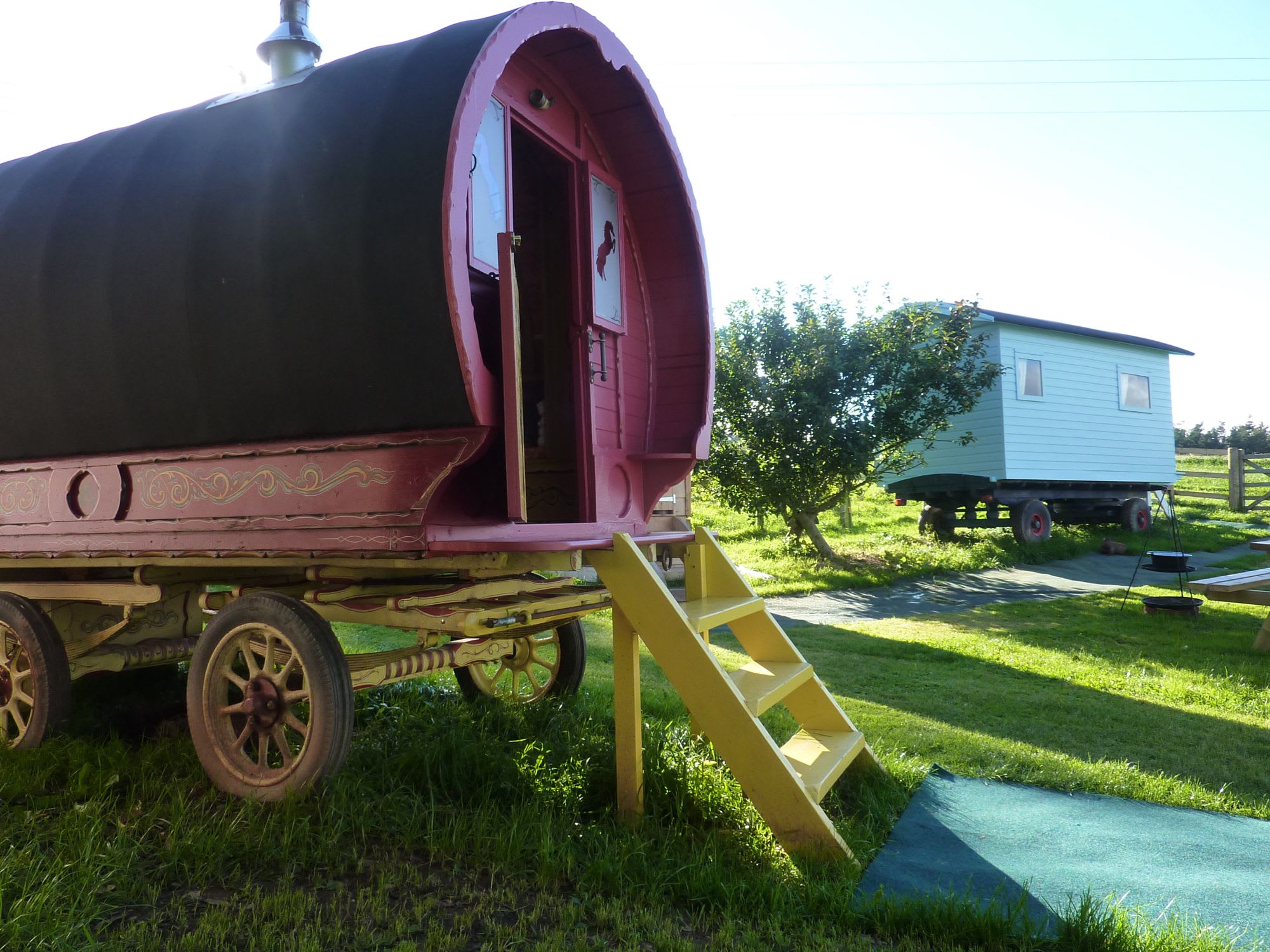 There are technically 25 pitches, located in a separate field just down from the farmhouse, but you’re more or less welcome to hunker down anywhere. If that seems like too much hard work, then cosy up in the beautiful bowtop gypsy caravan, complete with dinky little log burner and double bed – also with an outdoor firepit and cauldron for cooking – or the gorgeous, sky-blue painted shepherd’s hut trailer which, believe it or not, sleeps four, albeit at a squeeze.