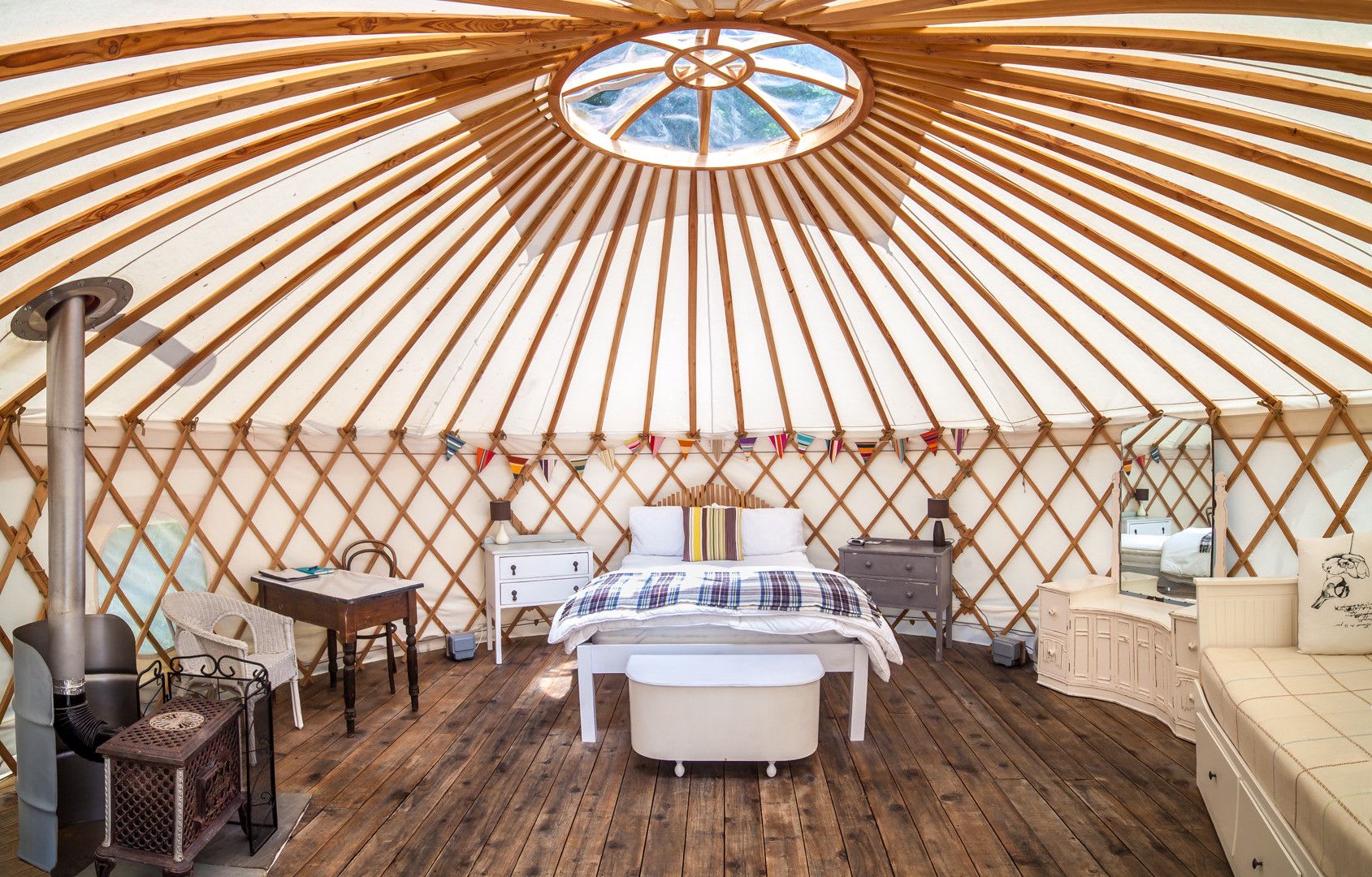 Idyllic setting aside, the facilities at The Yurt Retreat are anything but basic. Spend easy days relaxing by your very own 20 foot yurt, set on a high quality redwood platform. Each yurt has been individually styled (there are 4 onsite) with shabby chic and handmade furniture, comfortable double bed, sofa bed, electricity, tea and coffee making facilities, and private decking with your very own wood burner. Guests also have the added extra of using the large communal firepit, perfect for marshmallow toasting and star gazing on a clear Somerset evening.