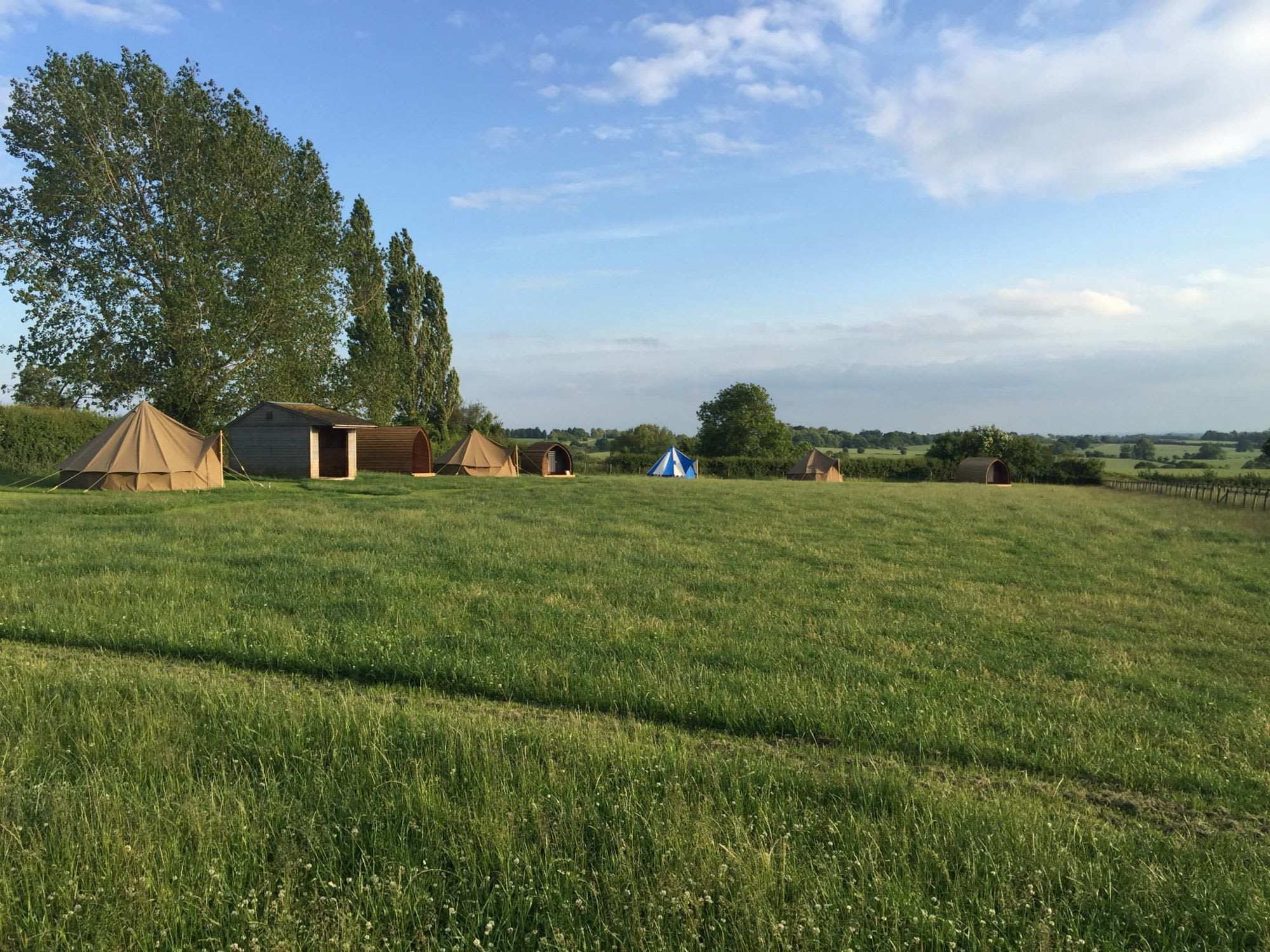 This is all, of course, with the exception of the Hilltop Farm farm shop, a long standing business that brings a hum of local customers eager to sample the finest Warwickshire produce. Edging the meadow where the bell tent and camping cabins lay, the farm shop has a playground and café with outdoor seating and acts as a hub for the site and a reminder of the world beyond the greens and browns of the countryside surroundings.