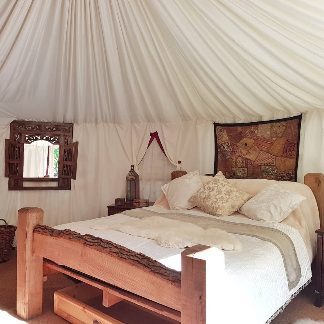 equipped with a coffee table, torch and sheepskin rug. There is also a smaller Friends Bell Tent that sleeps up to three adults.