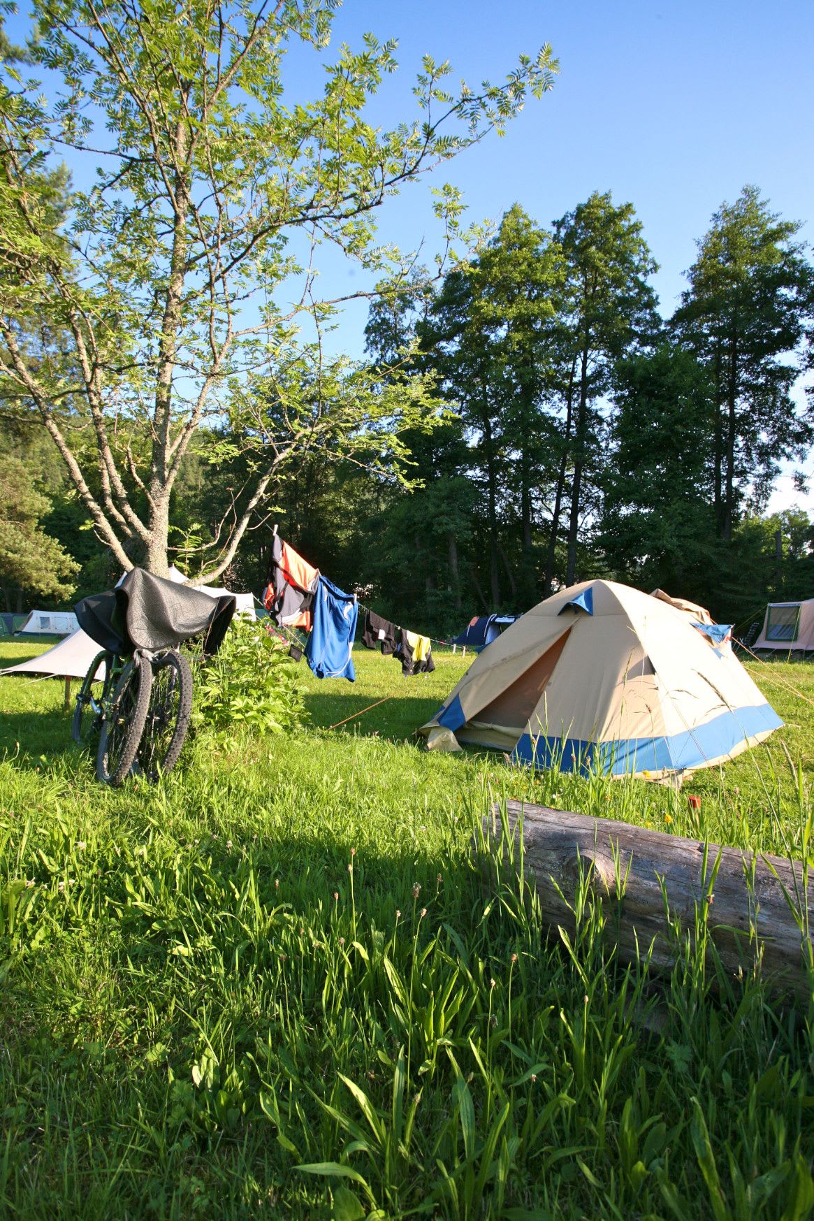 The site can be found at the edge of a picturesque German village called Enzklösterle. Most of the 75 pitches are past the house and beyond the main gate, along the border of a burbling mountain brook (actually the River Enz). This section of Müllerwiese is devoted to caravans and large tents, but campers needn’t go that far. You can just turn left and pitch in a grassy, car-free area that’s purely for tenters. Two small holiday apartments as well as two log cabins are also available nearby.
