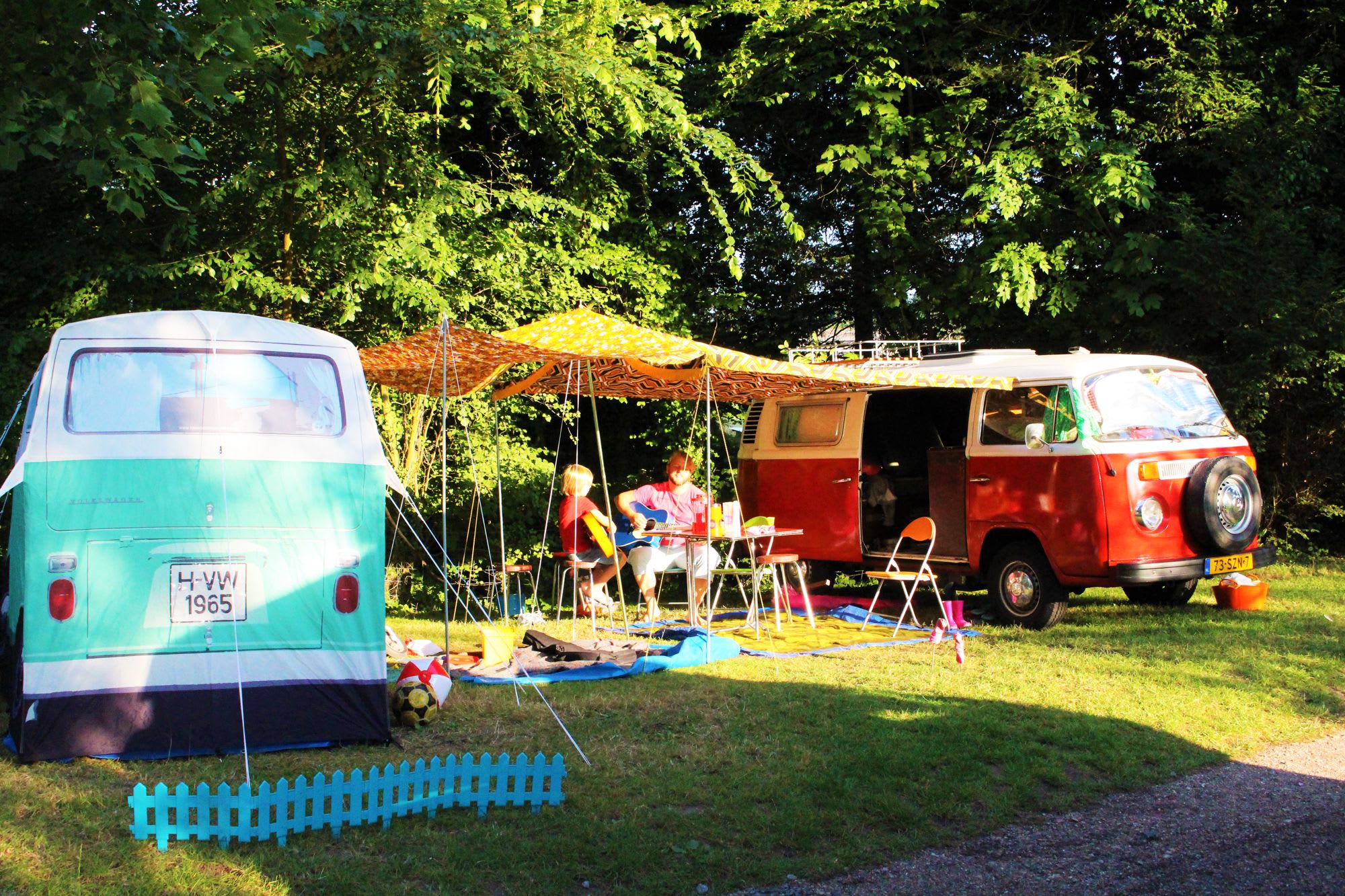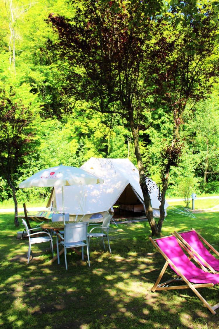 In Hipcamp terms Le Brévedent is a big site, but its canny design results in a beautifully chilled atmosphere. The play areas are handily situated by adult distractions such as the restaurant, café terrace (with free wi-fi), and lake, where huge carp can be caught. The heated swimming pool and paddling pool have been tastefully cut into the slope in front of the main house. From here there’s a spectacular view of the lake, which is where most people choose to camp. Behind the lake is a stream, the banks of which are populated by a community of guinea pigs. Elsewhere ducks and chickens meander about the site among the apple trees and herbaceous borders.