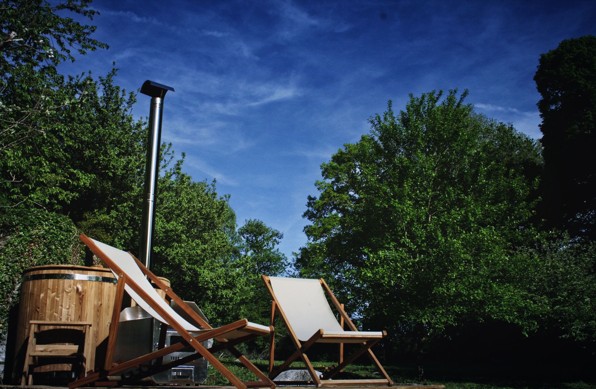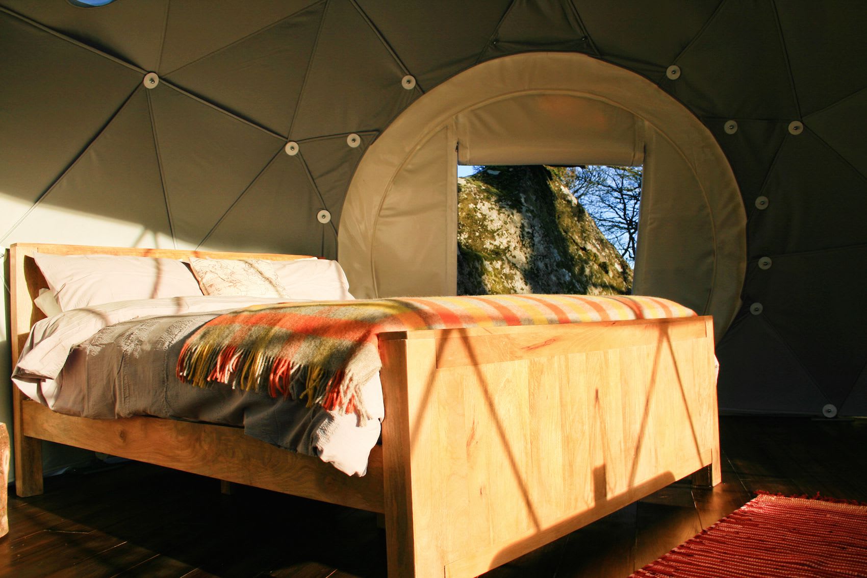 Explore the campsite and you quickly find extra treats. In particular, each dome has a wood-fired hot bath among the trees surrounded by rocks and with a superb view out across the valley (an addition inspired by Charley and Calum's trip to Japan). The hot, clean, chemical-free water is heated by a log stove and you can sit and wallow in the warmth to your hearts content (or at least until your fingers turn to wrinkled prunes). Your hot tub isn't the sole bathing spot though, as the domes also have their own private bathrooms, but it is the spot with the best view. It’s difficult to leave.