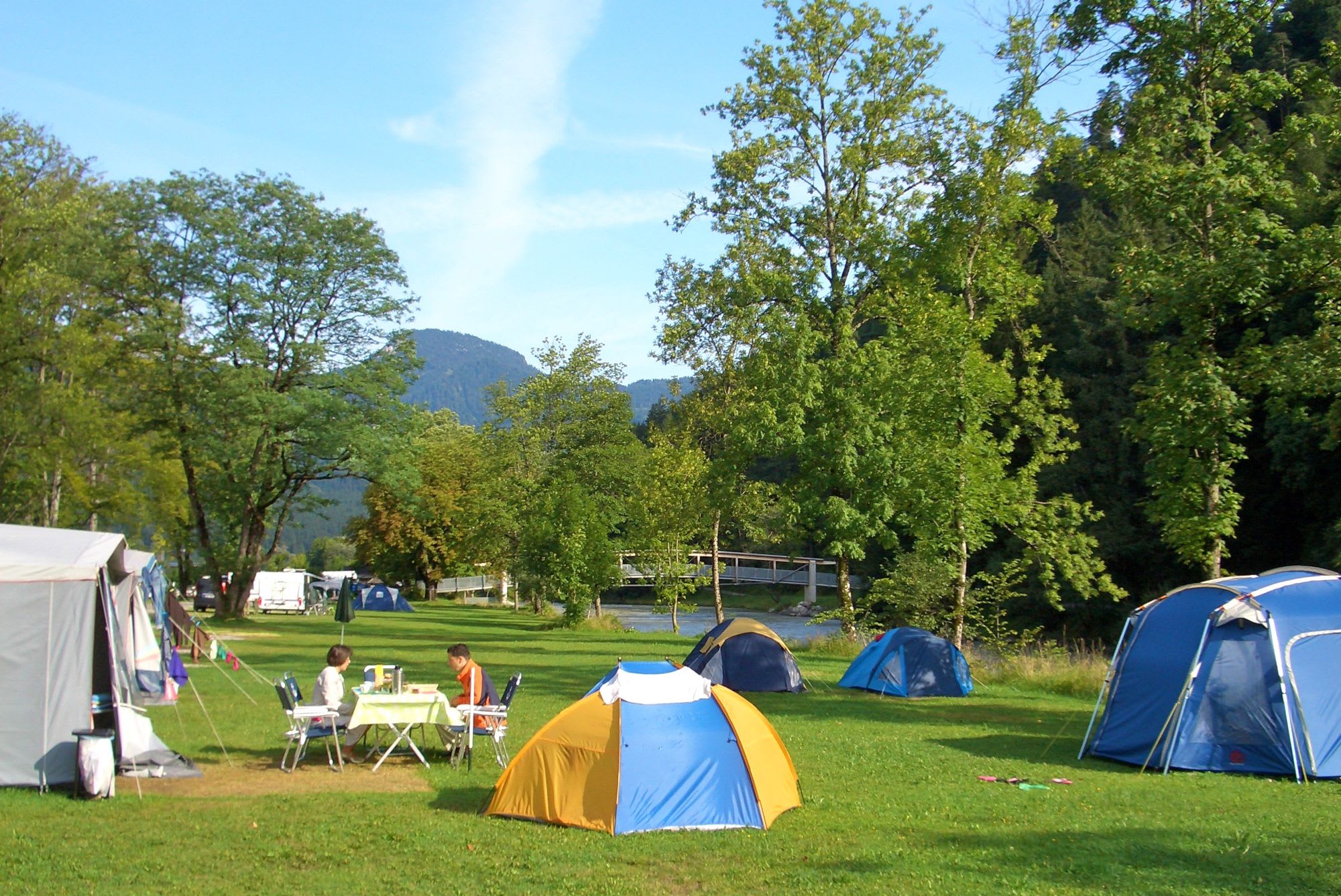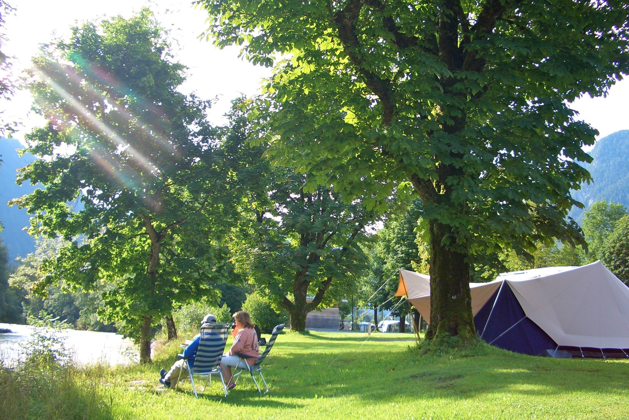 Whilst most campers head for the aforementioned meadow, you can also pitch in most of the site’s other sections. Apart from the main boulevards there are pitches all along the riverside, subtly divided into family- and dog-friendly/-free areas. From these riverside spots you can really get a back-to-nature vibe – especially when you lie back and admire the fantastic mountain scenery surrounding the site.