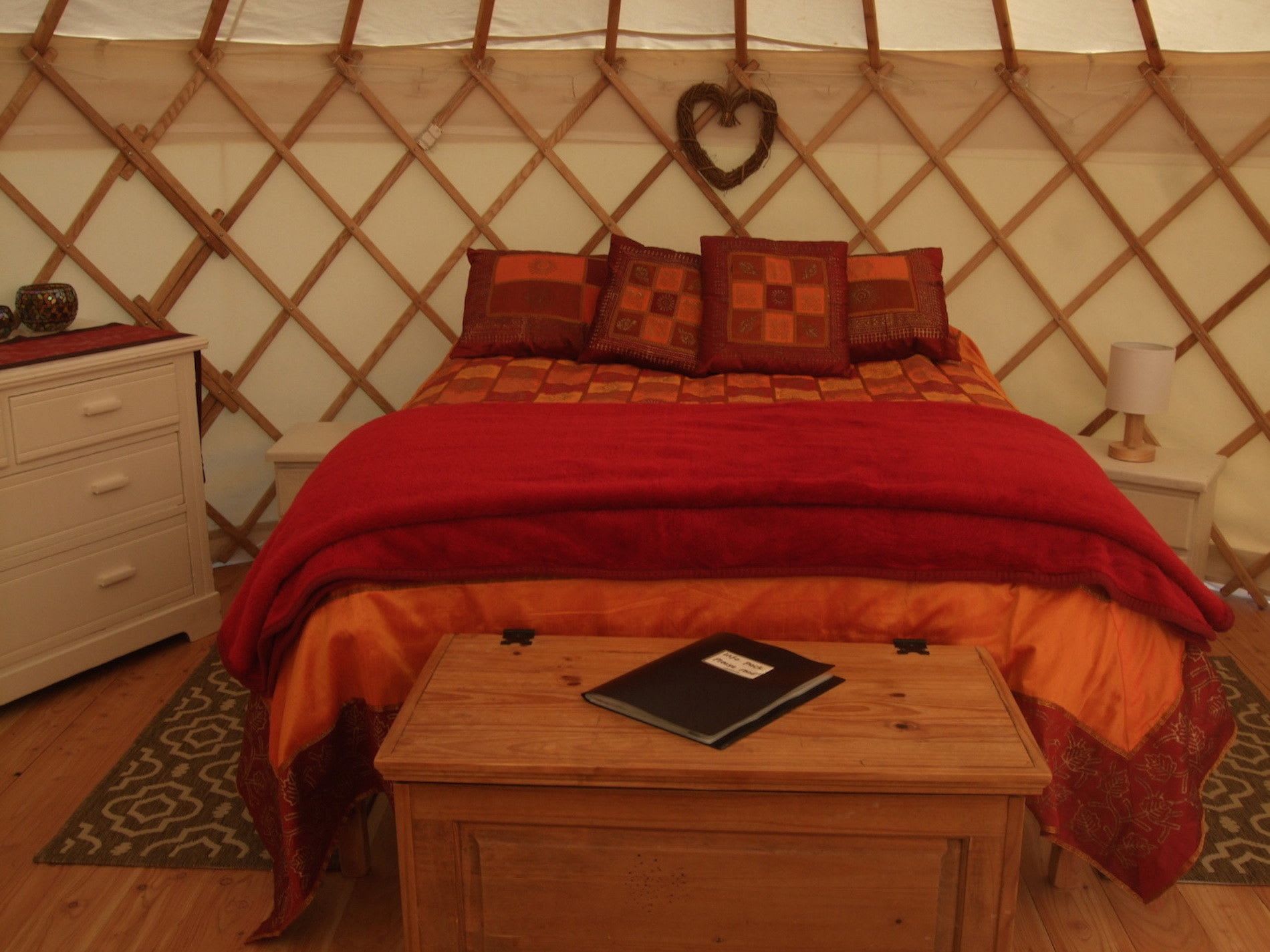 The aforementioned yurtsman (the dexterous Guy Cutler) lovingly crafts his creations from locally-sourced, sustainable wood. Each yurt comes with a double bed and two fold down futons, giving ample room for a family of four... or space to swing a family of cats if there's just the two of you. There's storage for all your stuff and comfy seating, as well as a wood burning stove which comes with a stack of kindling to get the stove started. On a warm summer's evening, there's nothing quite like reclining outside in the glow of the fire pit, admiring the patchwork of twinkling stars this unspoilt part of the world affords.