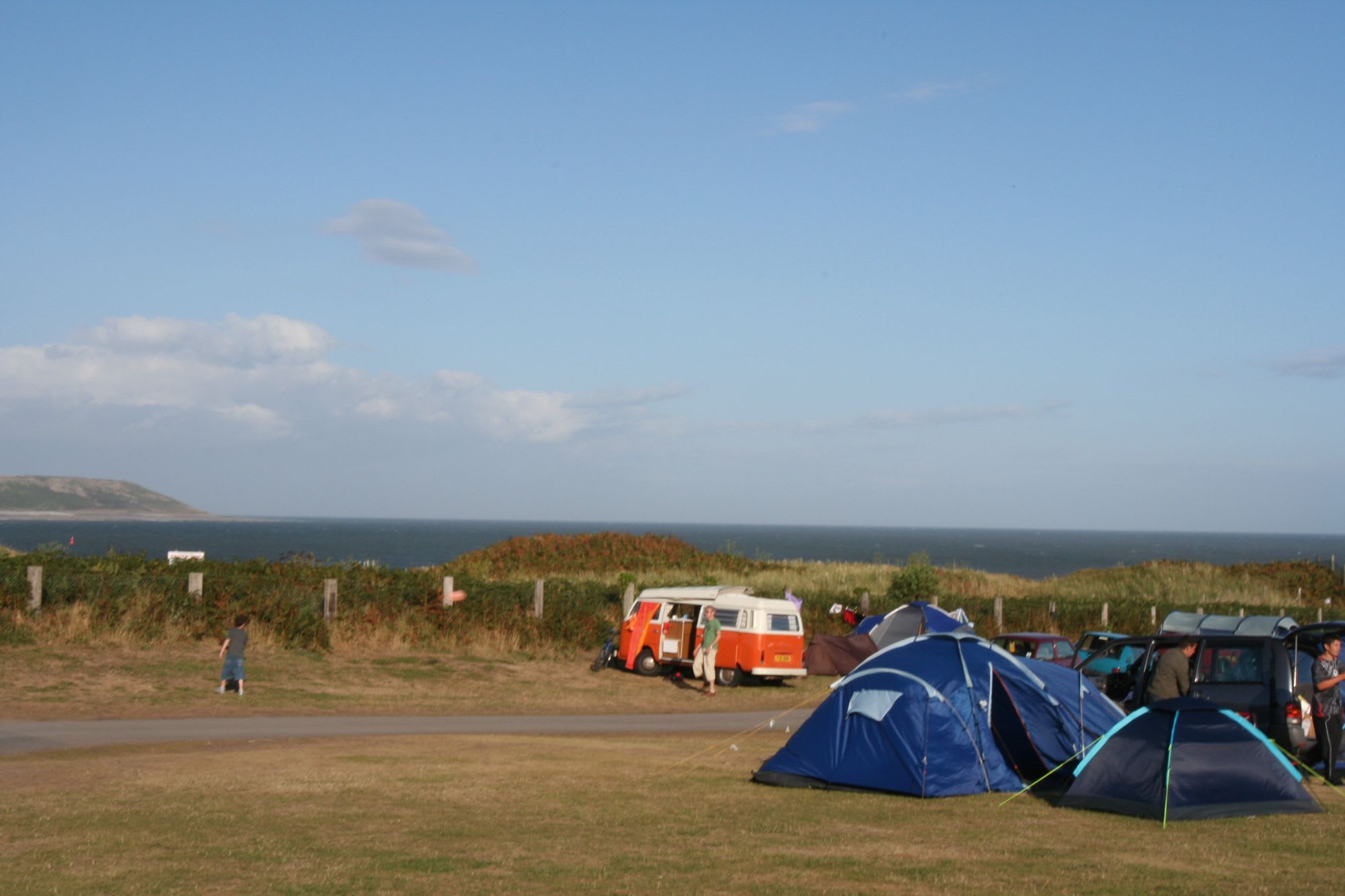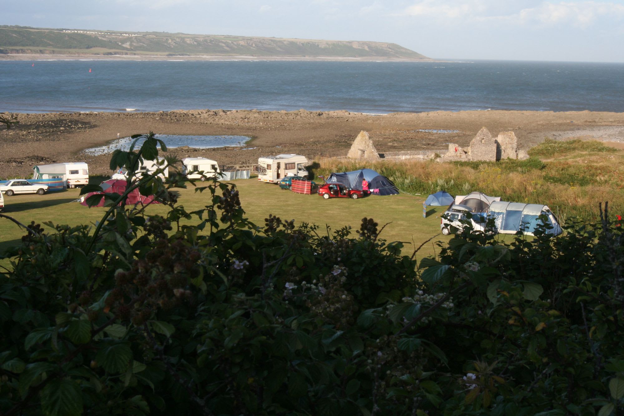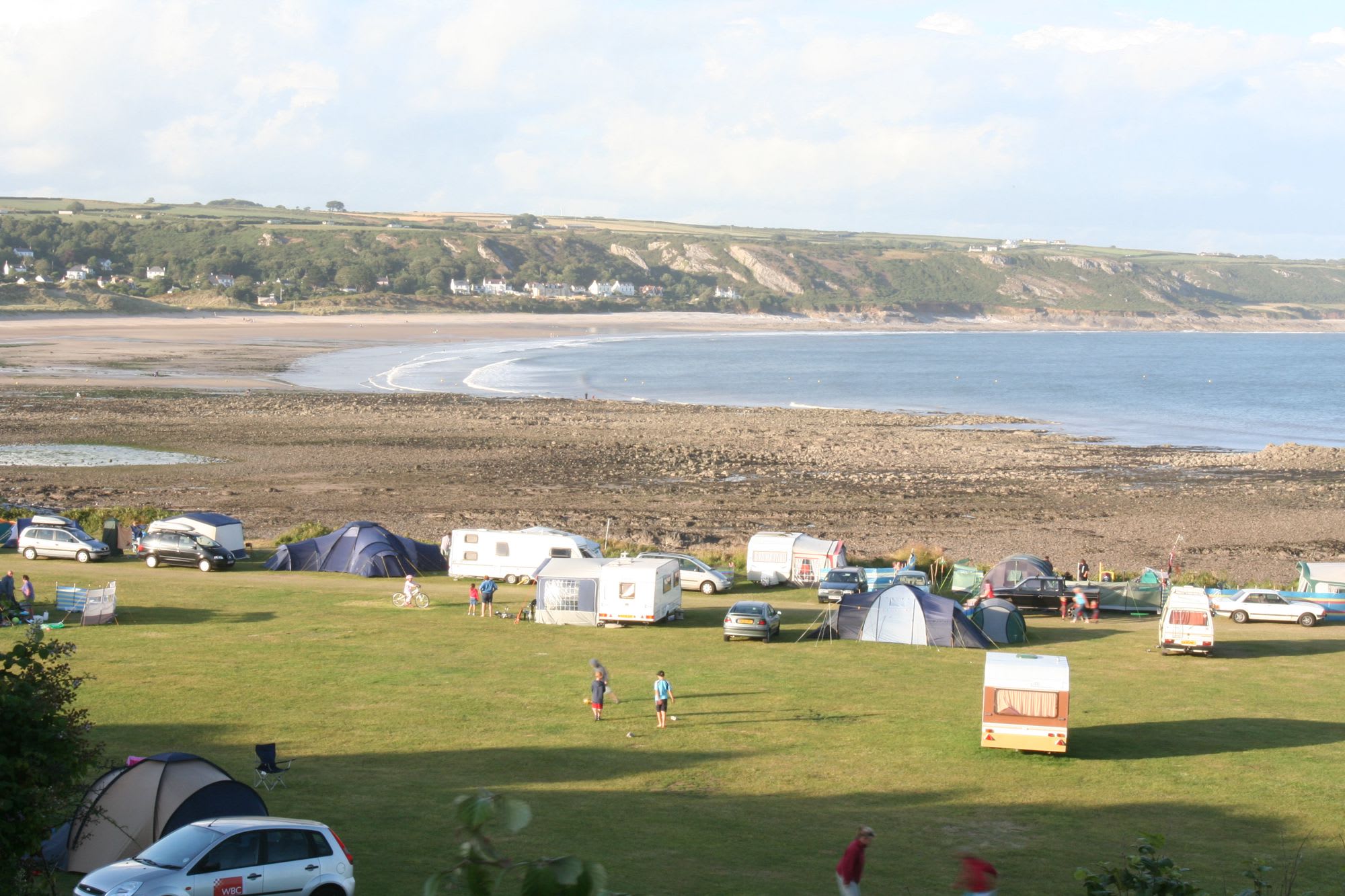 The sleepy village of Port Eynon on the Gower Peninsula is dominated by campsites, and static caravan parks occupy various hillside fields above the town. But help is at hand at Skysea (formerly known as Carreglwyd Camping & Caravanning), which has five camping fields, of which only the two nearest reception are favoured by caravans, with tents having the run of the place beyond. Pitches nearest the beach tuck in under the shelter of thick hedges, affording views of Port Eynon bay from the higher ground.