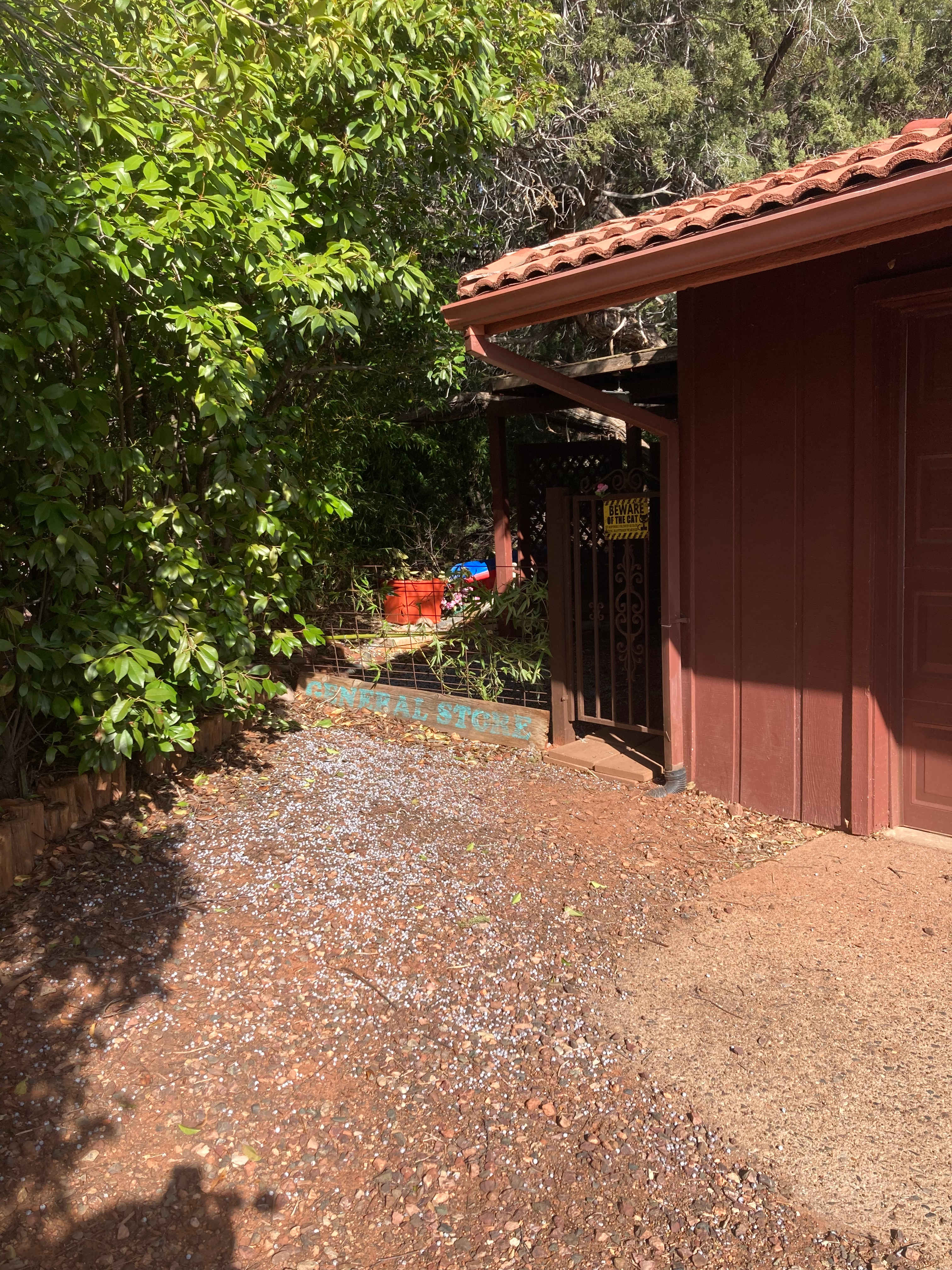 This small cozy rental unit is on the back of a garage on a 1/4 acre proporty under Thunder Mountain in West Sedona. You also have access to a secxtion of the yard with a huge juniper tree with chairs. The property IS in a residential neighborhood and is generally quite quiet although this cannot be guaranteed.