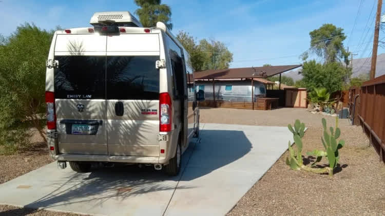 Straightforward workplace for digital nomads or traveling professionals. Clean, well-maintained, and safe environment with lightning-fast Cox internet. On-site caretaker. Mountain views. Free laundry. Close to all amenities, with recreation nearby. Laid-back and very affordable. Storage available. This gated property is accessed by a remote fob provided at check-in. The space is shared with a total of three sites and a courtyard. If you're looking for a safe and secure, weekly or extended stay with full hookups and modern amenities, this is the place for you!