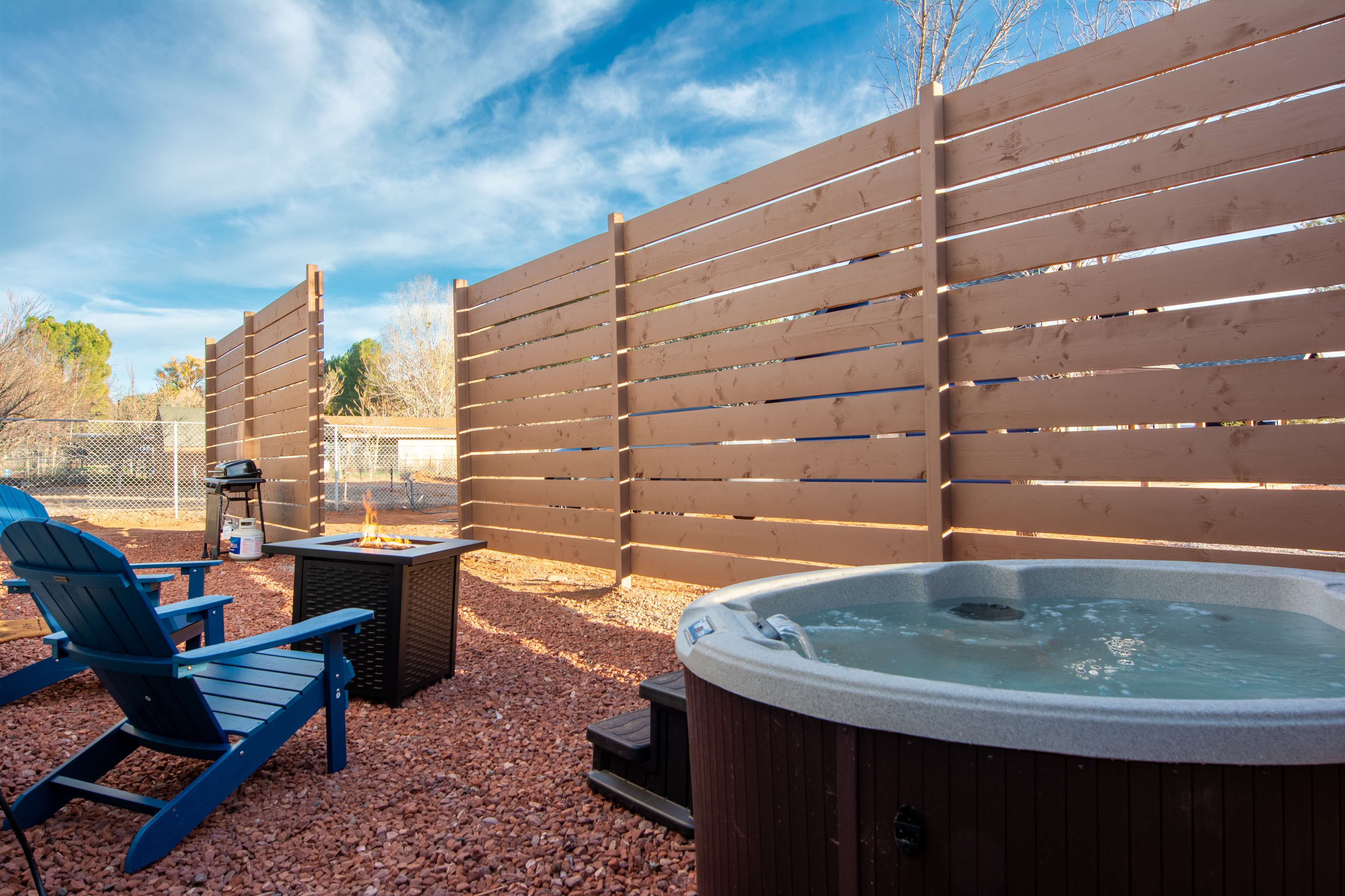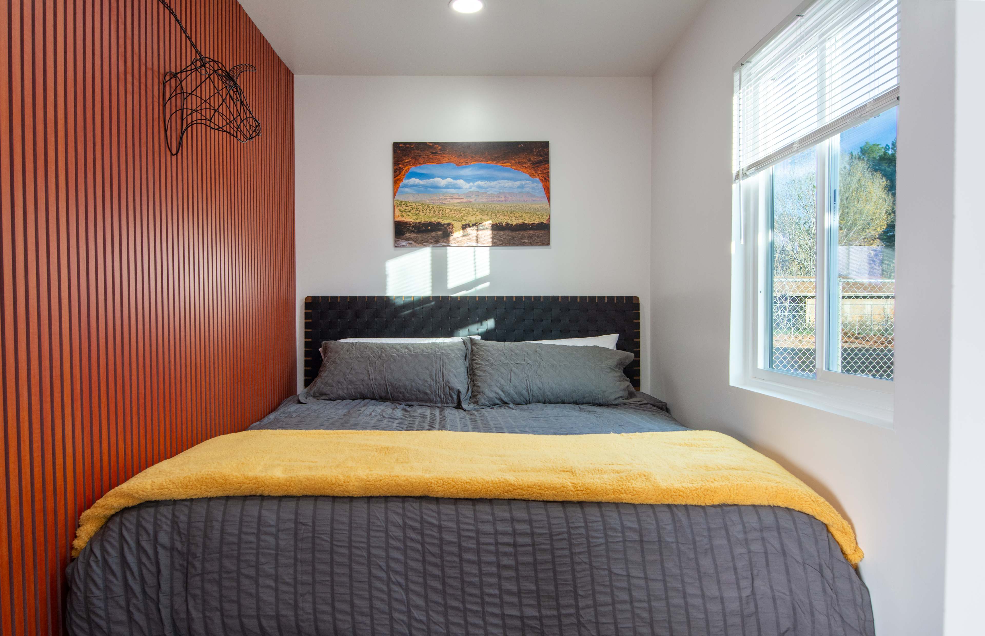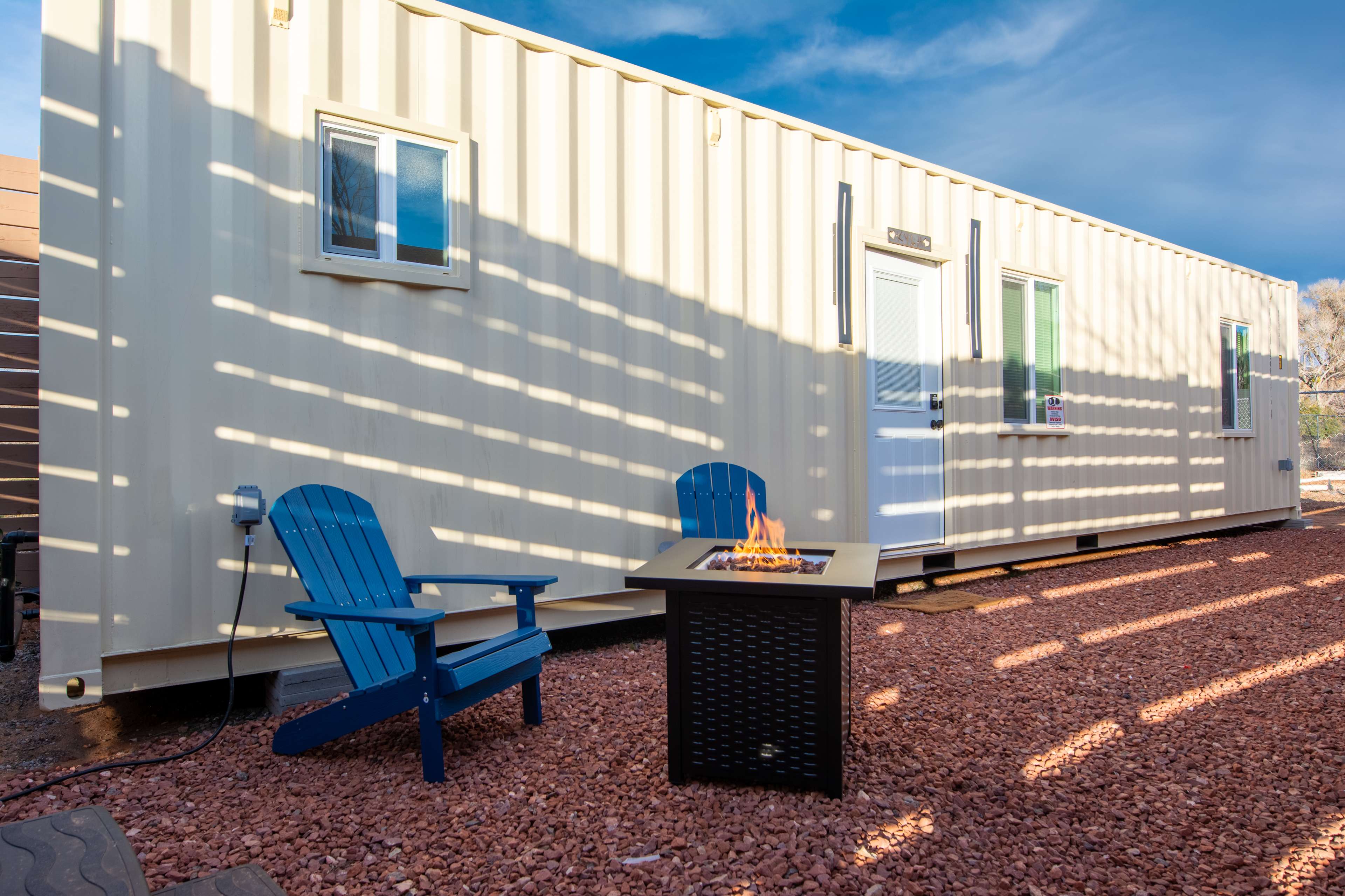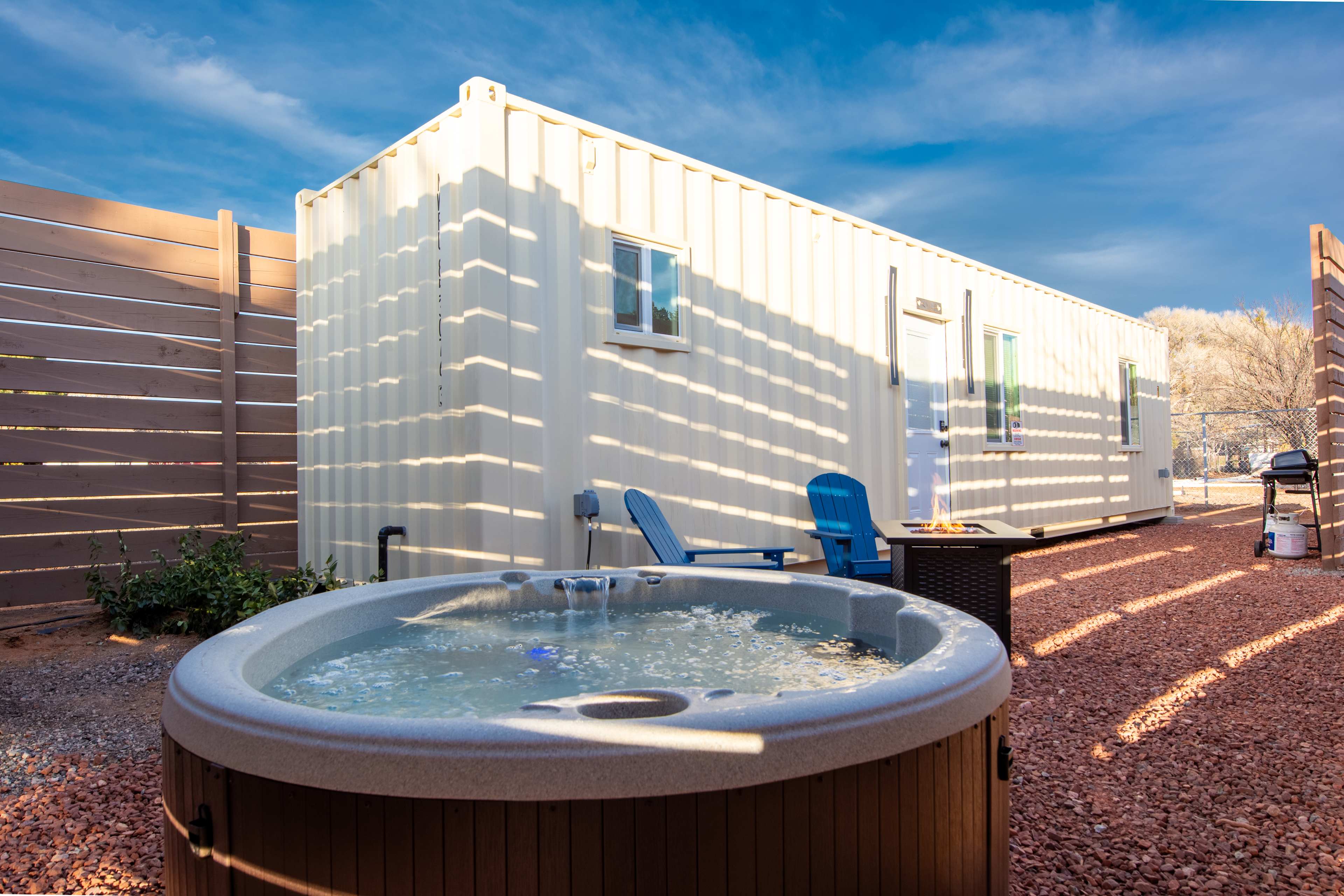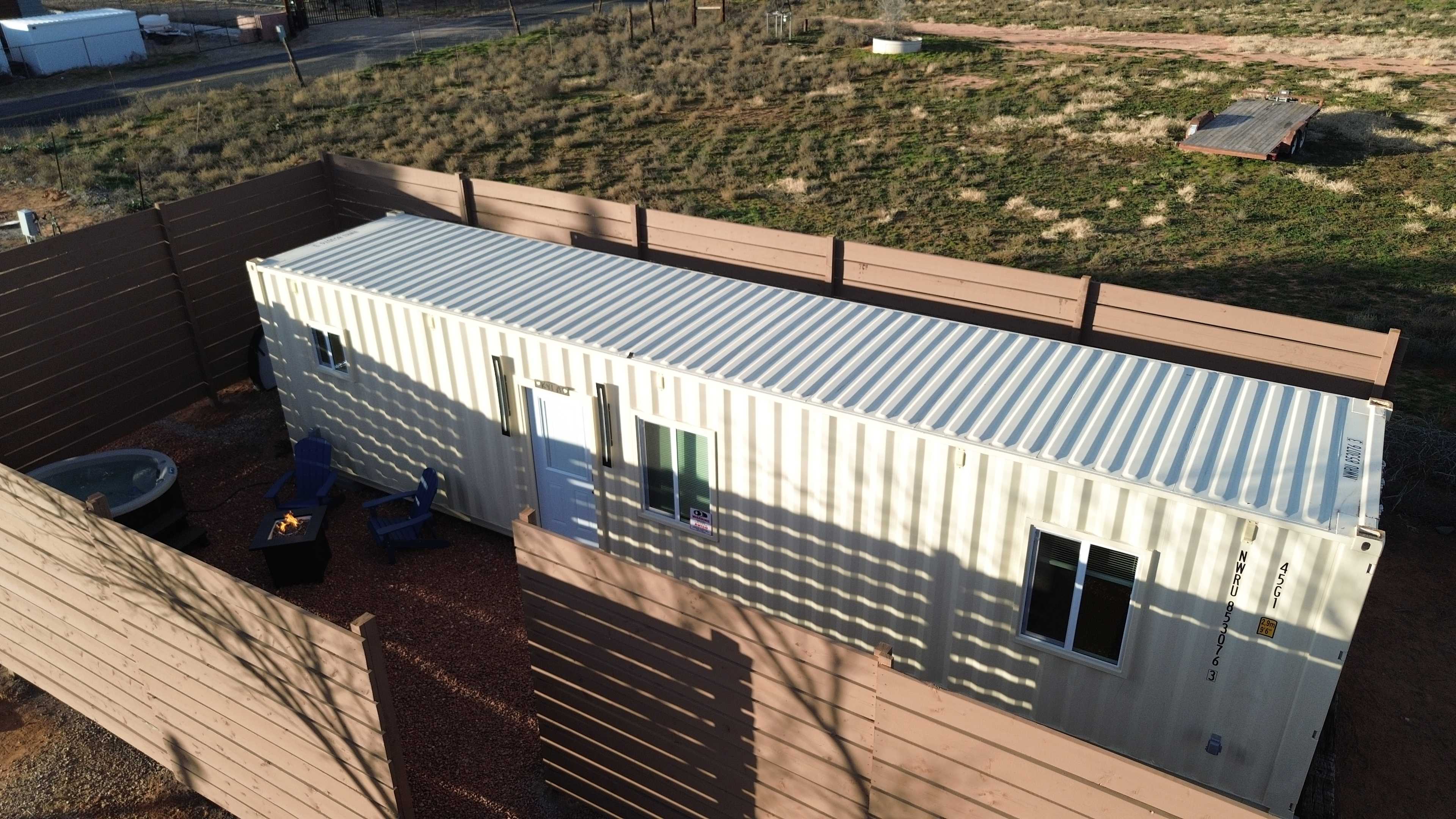 Welcome to the Bunkhouse at Copper Sky Ranch by StargazerSedona Vacation Homes, a modern yet cozy escape designed for couples seeking both adventure and tranquility. Pet Friendly! This thoughtfully crafted one-bedroom container home offers comfortable luxury in a peaceful desert setting. Located just across the street from Oak Creek, guests can enjoy easy access to the water for a morning walk, quiet reflection, or a refreshing dip on a warm afternoon. Inside, you’ll find a bright, open living area, a king-size bed with premium linens, and a well-equipped kitchenette—perfect for light meals, morning coffee, or enjoying local wine after a day of exploring. The minimalist design and soft lighting create a calming space to unwind. Step outside to your private hot tub, BBQ grill, and patio seating, surrounded by desert views and wide-open skies. Whether you’re soaking under the stars or savoring a peaceful breakfast outdoors, this space invites you to slow down and reconnect. Just a short drive from Sedona, Cottonwood, and Jerome, the Bunkhouse offers easy access to local wineries, scenic drives, and small-town charm—all while keeping you close to nature. Location Highlights: Oak Creek access is right across the street. You’re just 10 minutes from Cottonwood for dining and wine tasting, 15 minutes from Sedona to explore trails and art galleries, and 20 minutes from Jerome, a historic mining town. Featured Amenities: Enjoy a private hot tub, king-size bed, Oak Creek access, BBQ grill with outdoor seating, a modern kitchenette, universal level 2 EV charger, and a cozy living space for two. The quiet desert surroundings and easy access to Sedona, Cottonwood, and Jerome make this the perfect base for your getaway. Whether you’re here to explore, relax, or simply enjoy the peaceful rhythm of the desert, the Bunkhouse at Copper Sky Ranch is the perfect landing for your next Sedona-area getaway.Welcome to the Bunkhouse at Copper Sky Ranch by StargazerSedona Vacation Homes, a modern yet cozy escape designed for couples seeking both adventure and tranquility. Pet Friendly! This thoughtfully crafted one-bedroom container home offers comfortable luxury in a peaceful desert setting. Located just across the street from Oak Creek, guests can enjoy easy access to the water for a morning walk, quiet reflection, or a refreshing dip on a warm afternoon. Inside, you’ll find a bright, open living area, a king-size bed with premium linens, and a well-equipped kitchenette—perfect for light meals, morning coffee, or enjoying local wine after a day of exploring. The minimalist design and soft lighting create a calming space to unwind. Step outside to your private hot tub, BBQ grill, and patio seating, surrounded by desert views and wide-open skies. Whether you’re soaking under the stars or savoring a peaceful breakfast outdoors, this space invites you to slow down and reconnect. Just a short drive from Sedona, Cottonwood, and Jerome, the Bunkhouse offers easy access to local wineries, scenic drives, and small-town charm—all while keeping you close to nature. 🌄 Location Highlights Oak Creek access across the street 10 minutes to Cottonwood – dining & wine tasting 15 minutes to Sedona – trails & art galleries 20 minutes to Jerome – historic mining town ✨ Featured Amenities - Private hot tub - King-size bed - Oak Creek access (across the street) - BBQ grill + outdoor seating - Modern kitchenette - Cozy living space for two - Quiet desert surroundings - Easy access to Sedona, Cottonwood, & Jerome Whether you’re here to explore, relax, or simply enjoy the peaceful rhythm of the desert, the Bunkhouse at Copper Sky Ranch is the perfect landing for your next Sedona-area getaway.