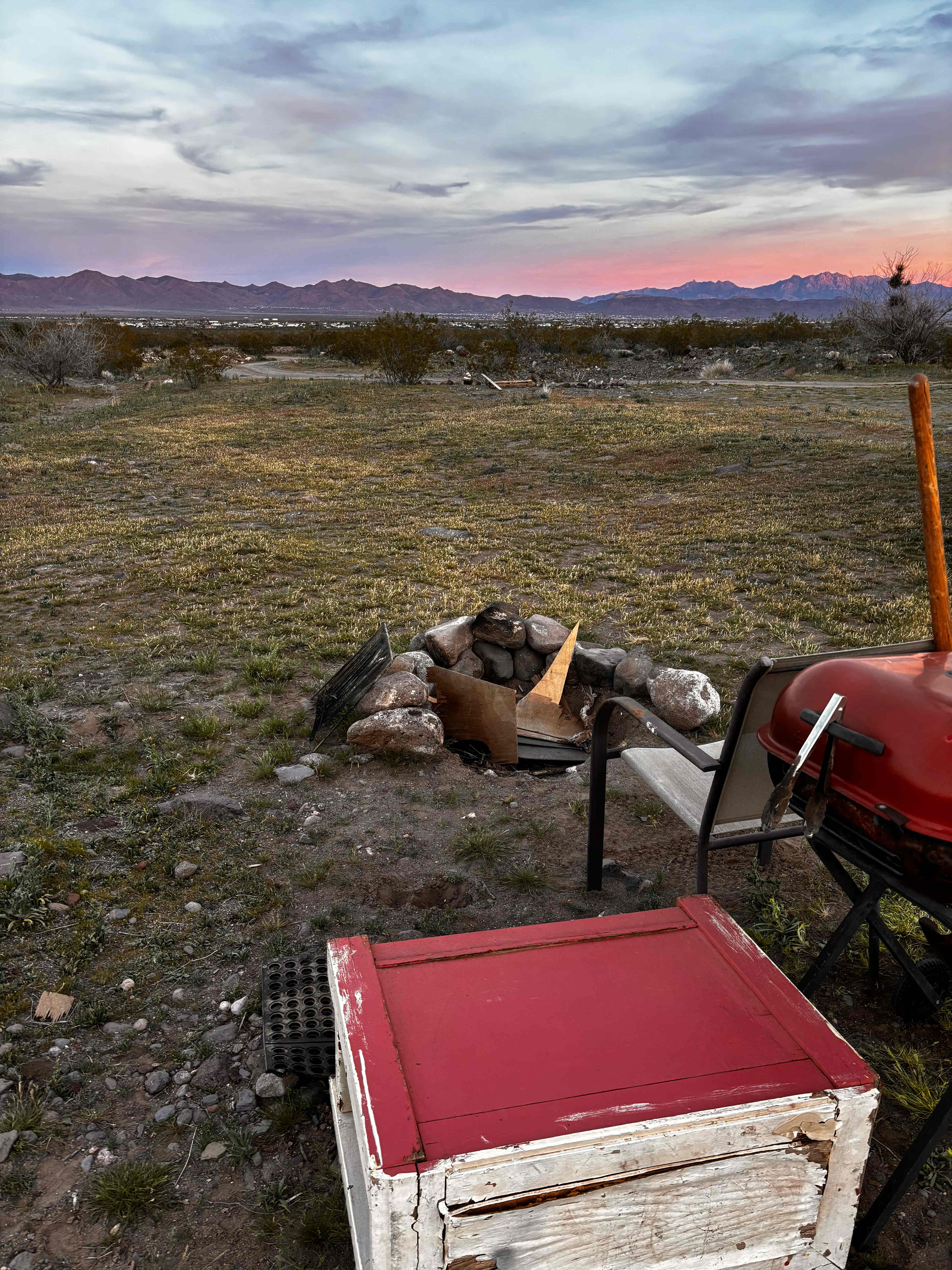 2 acres tucked away with the last bit of the drive down an easy dirt road. Winding driveway into peace and quiet of the Arizona desert. Multiple dry camping sites and water available for refilling your tank. Vanlifers welcome. Not set up for rigs over 20ft length yet. Communal area with firepit, water, dog pen, charcoal bbq, and acres of untouched land to explore and have a picnic. Chickens which means fresh eggs, an outdoor handmade stone shower, and more stars that you can count with the milkyway going right over the property. And a baby horse. Peaceful. Happy. Beautiful and scenic hiking trails within 10 miles, wild donkeys, and a town 40 minutes away that is even full of wild donkeys you can pet and feed, along with an old ghost town in mining town to explore! Delicious Mexican restaurants in town, coffee, sonic, Subway, laundromat, gas stations with the most delicious homemade cookies you’ve ever had. Lots to see and do here! Or just relax and have a bonfire, I’ve got multiple fire pits available!Right off the main driveway with a burm separating myself and you for maximum privacy. Follow the rock pathway into the main camp for fresh eggs or a shower in the outdoor stone shower! Outdoor kitchen available for everyone’s use as well: table, cutting boards, blackstone propane grill, charcoal grill, fire pit.