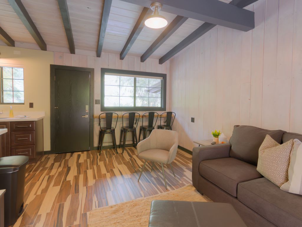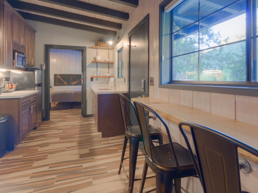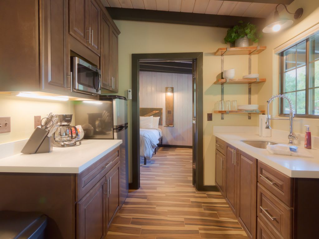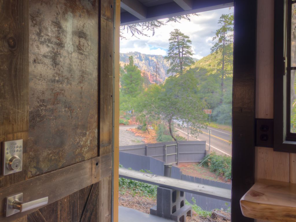 Our absolutely Gorgeous 2.5 acre property consists of 10 luxury cabins that sit right up on the Red Rocks of Oak Creek Canyon, Sedona, AZ with Breathtaking views in every direction! Our Luxurious Cabins have a rich history since 1952 with a modern rustic remodel in 2016. Cabin 9 has a living area with Queen Memory Foam Sleeper Sofa and TV as well as a Dining Bar that seats 4, a well equipped Kitchenette stocked with everything you need to make a wonderful meal or just store your leftovers from one of Sedona's fine restaurants!